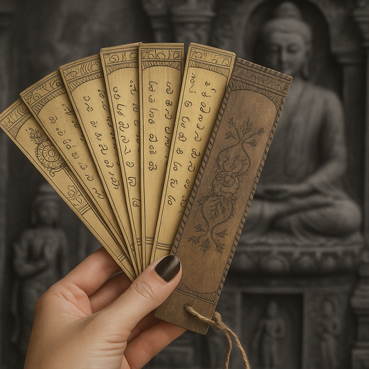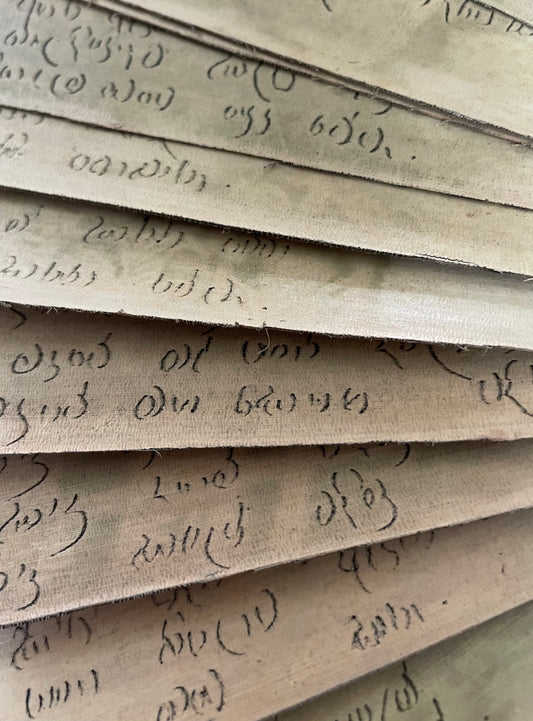 Manoscritto a ventaglio su lamelle di bambù, preghiere buddismo Theravada