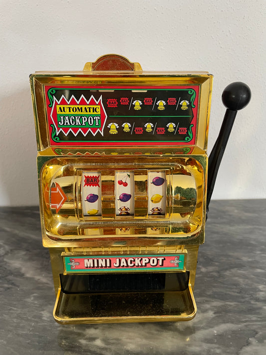 Antico registratore di cassa giocattolo metallo vintage, funzionante, anni ‘50