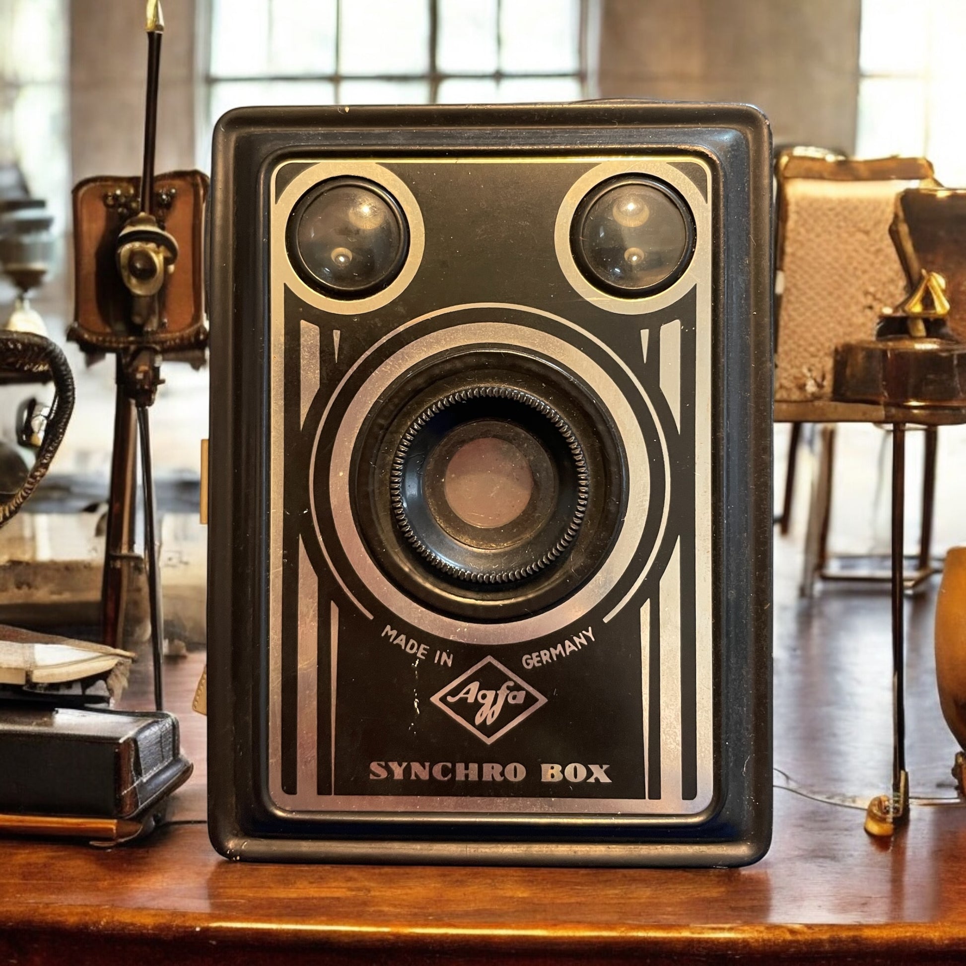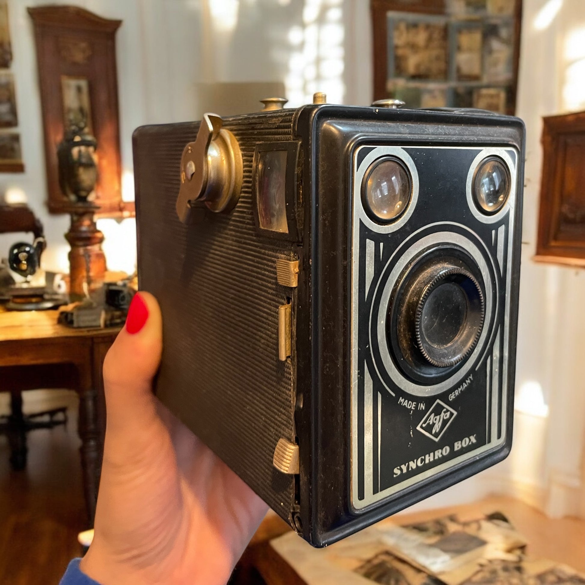 Immagina la scena: una domenica mattina del 1953, la luce calda entra delicatamente nella stanza. Una giovane donna, con le mani ancora delicate di sogni, solleva questa Agfa Synchro Box e, con un clic lieve, ferma il tempo per sempre. È la magia semplice di un’epoca che non rincorreva la perfezione, ma l’emozione. Questa piccola scatola, custode di sguardi rubati e sorrisi timidi, aspetta solo qualcuno che le racconti nuove storie, nuove nostalgie. Chi sarà il prossimo a catturare istanti che resistono allo scorrere del tempo?