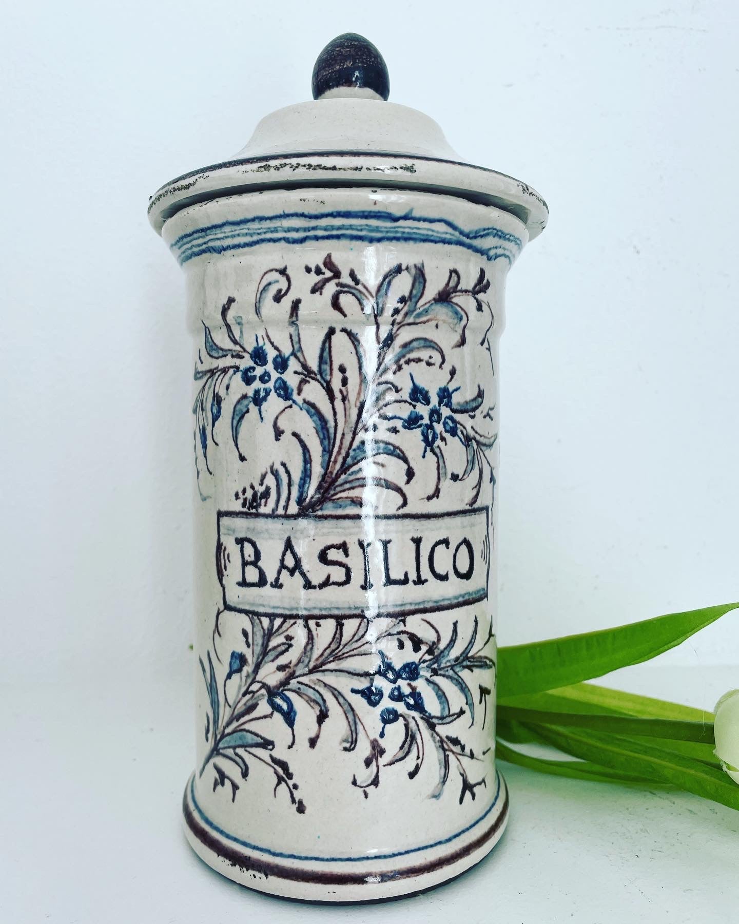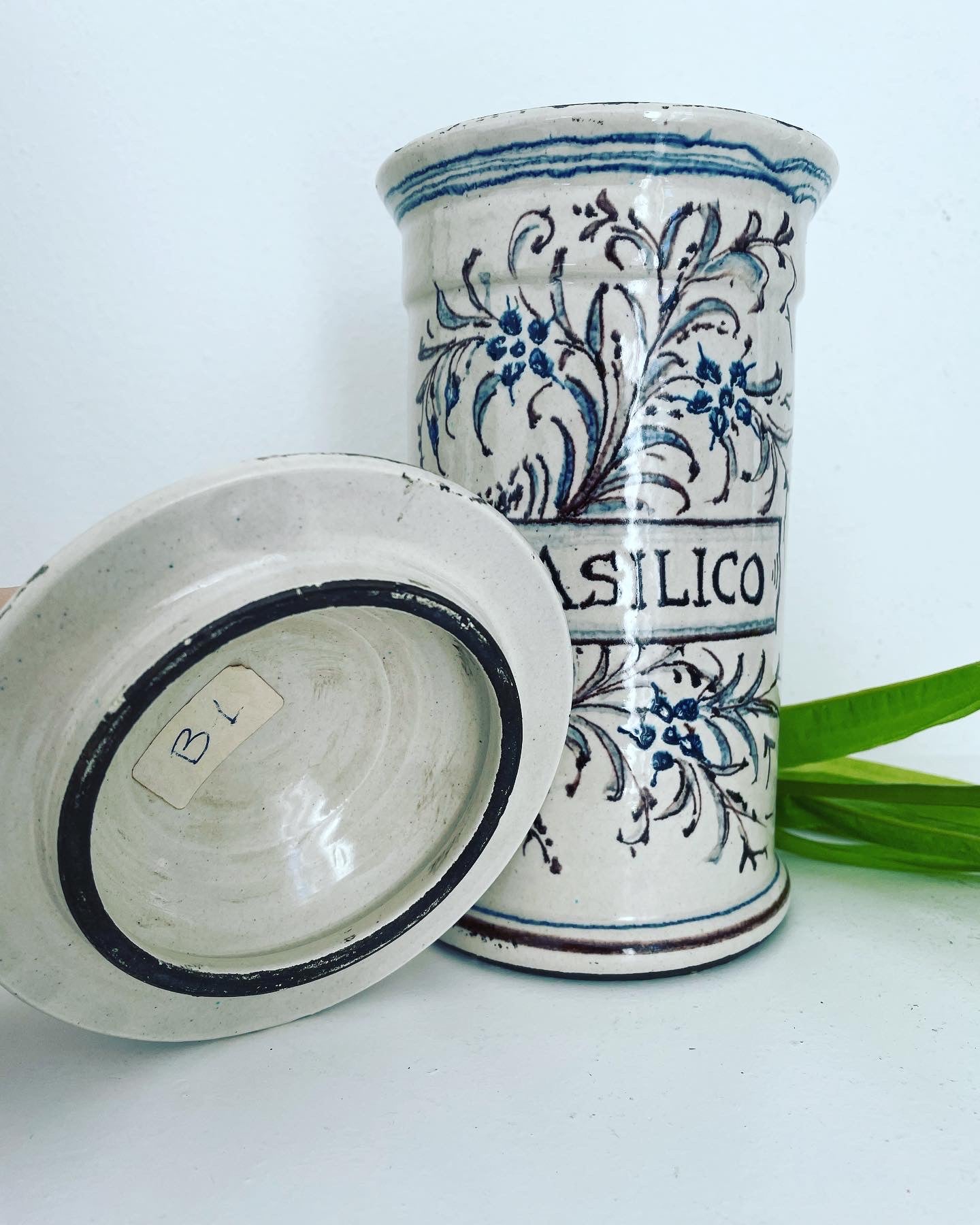 ancient beautiful #albarello #herbalist's #vase for #basil; painted ceramic height 25 cm.