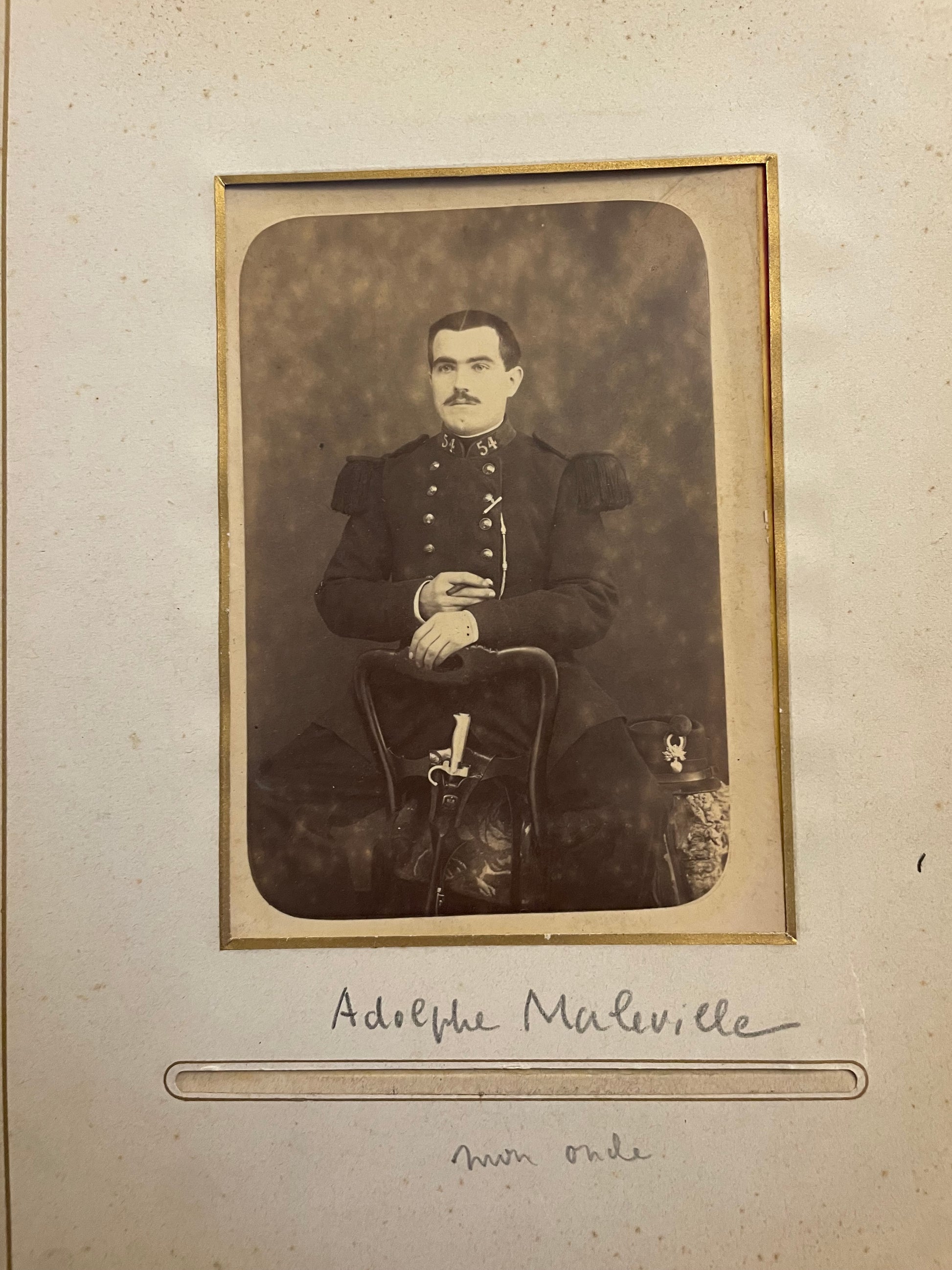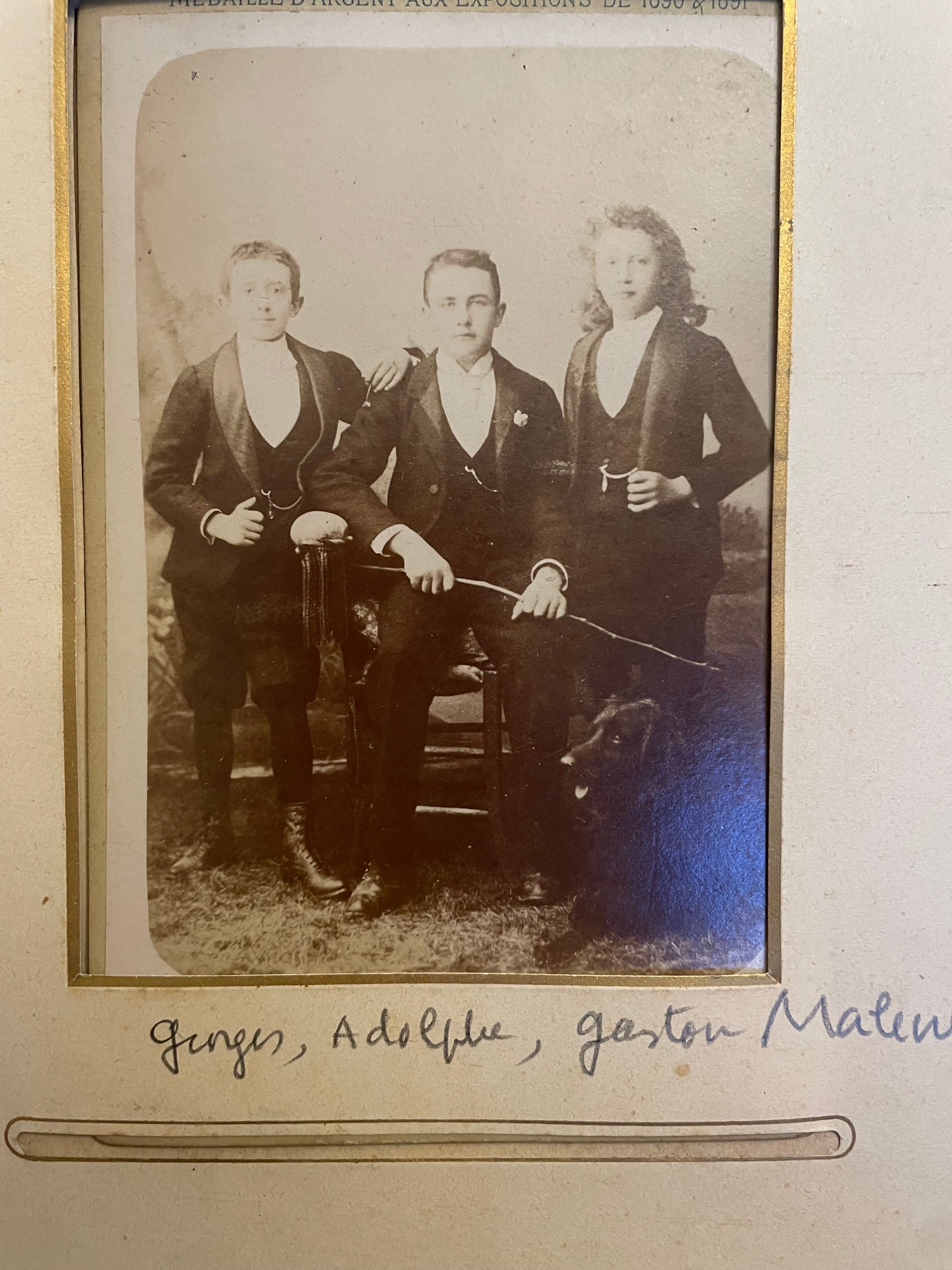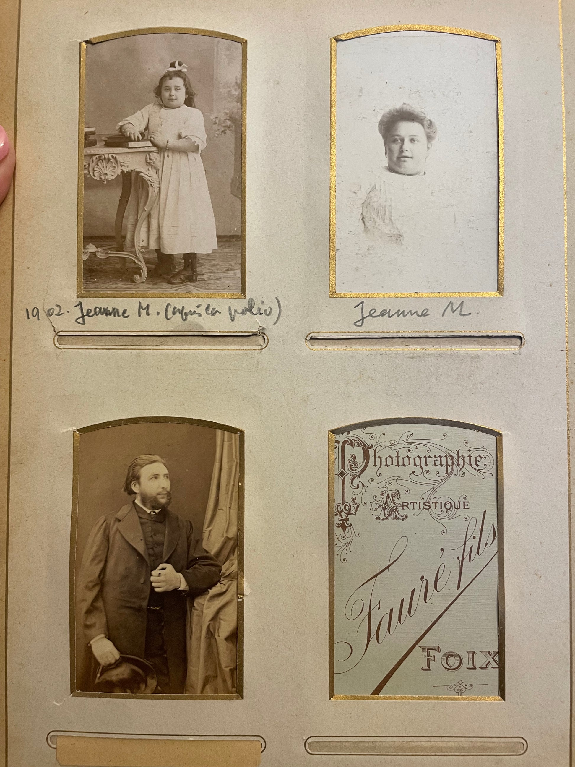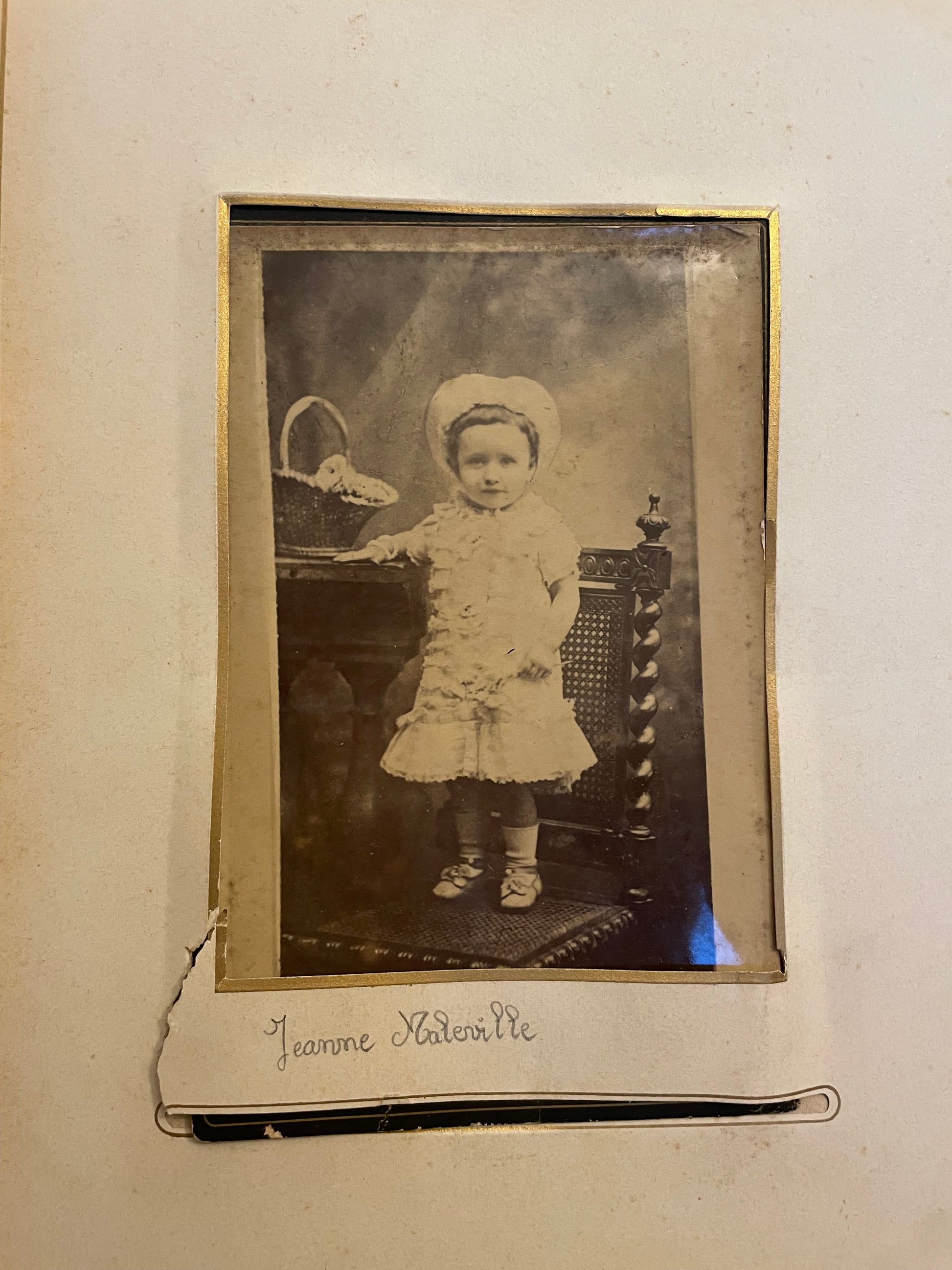 Un album chiuso con cura. Una famiglia intera custodita tra le pagine. Un silenzioso archivio di sguardi e parentele, tracciato con eleganza a matita in una legatura in pelle che conserva ancora la sua chiusura in metallo lavorato perfettamente funzionante. Gli angoli, decorati e solidi, proteggono 19 fotografie originali che ritraggono i membri di una stessa famiglia francese: i Malleville. Ogni immagine è una finestra sulla vita che fu: uomini in divisa, giovani con baffi arricciati, bambini in posa tra drappi e tappeti, nomi scritti con mano decisa. Gaston, Georges, Jeanne, Adolphe… Le date scolpite a matita e le firme d’epoca rendono ogni pagina un frammento autentico di biografia. Un pezzo adatto a collezionisti, appassionati di genealogia o semplicemente a chi ama l’intimità delle storie familiari dimenticate.