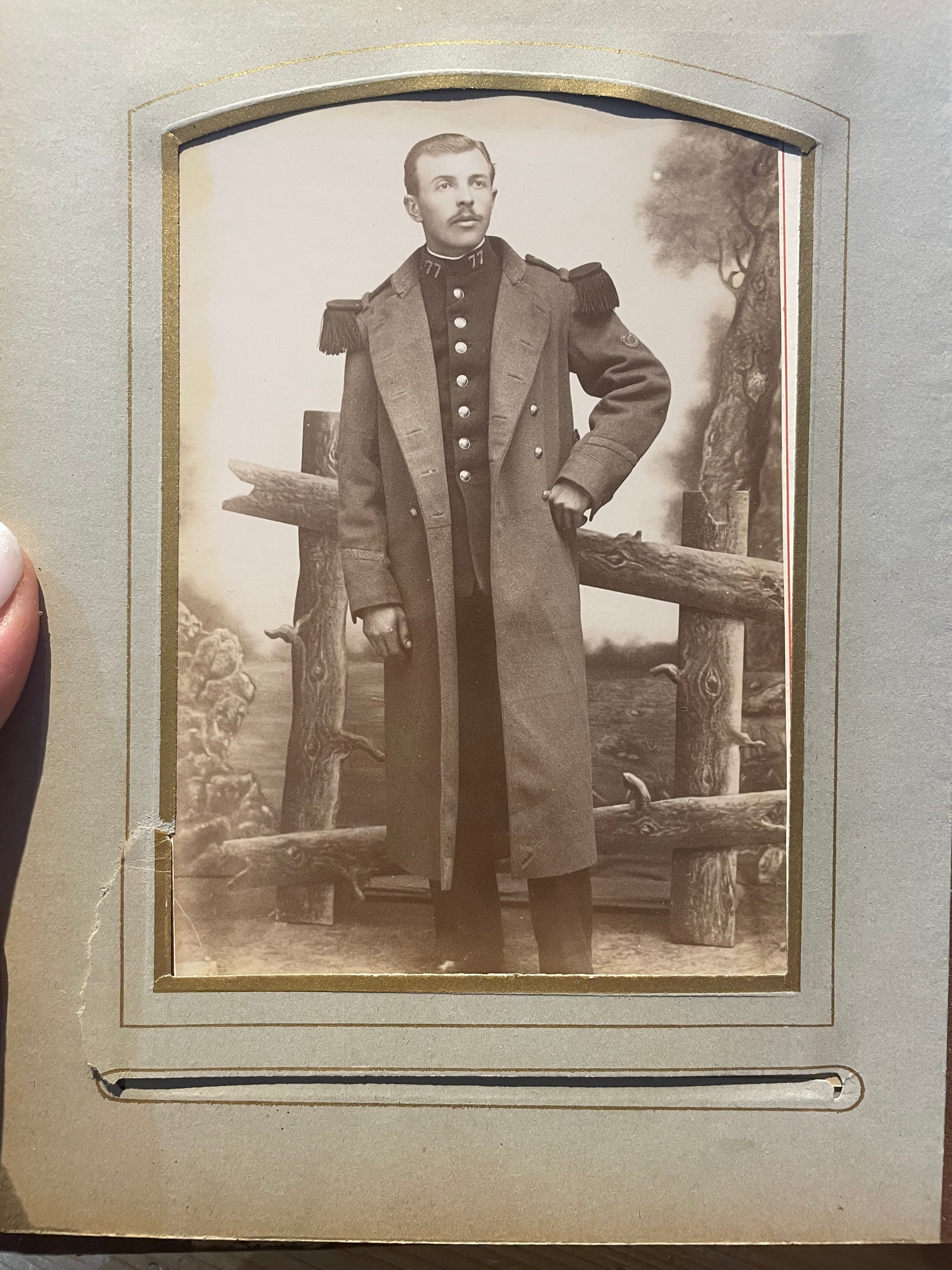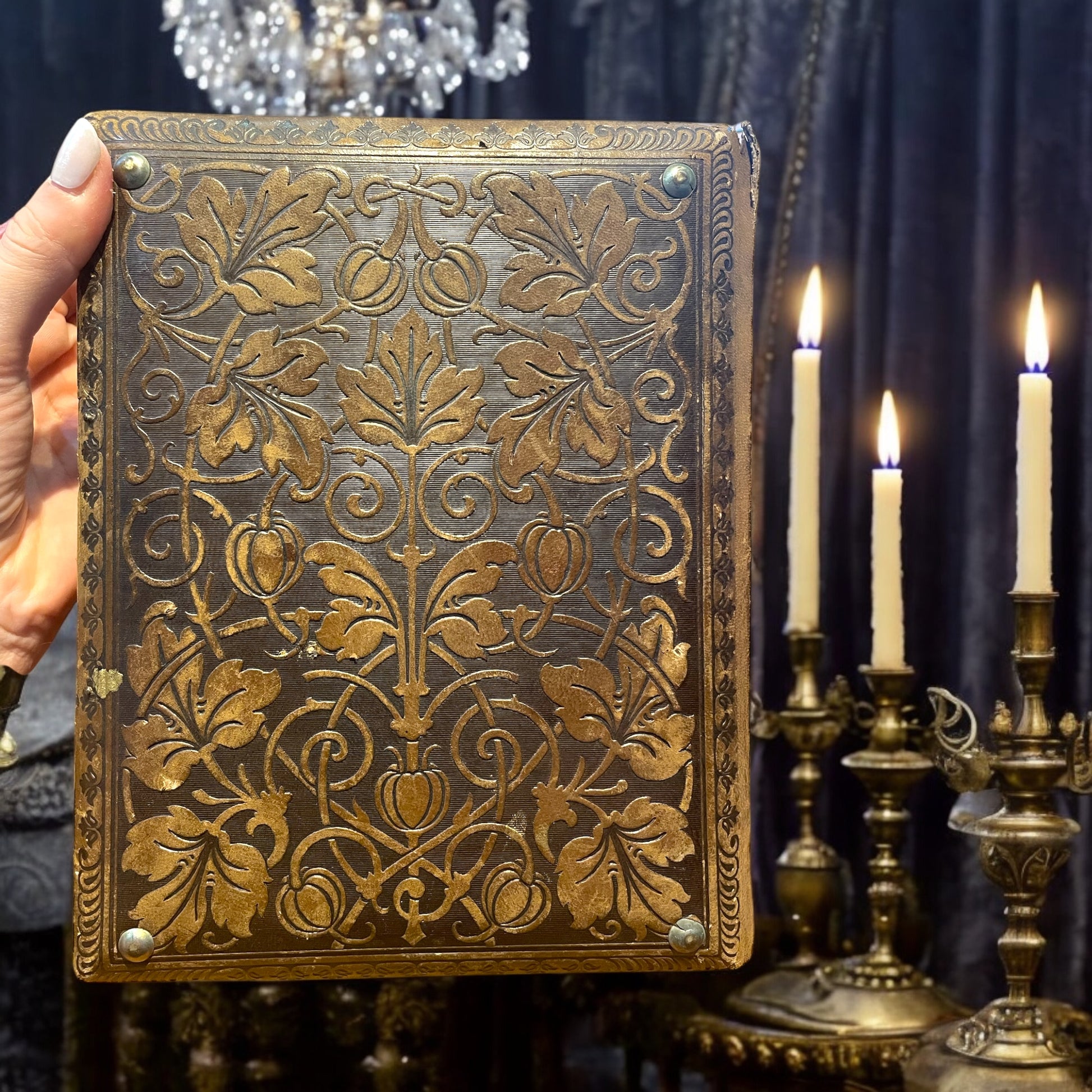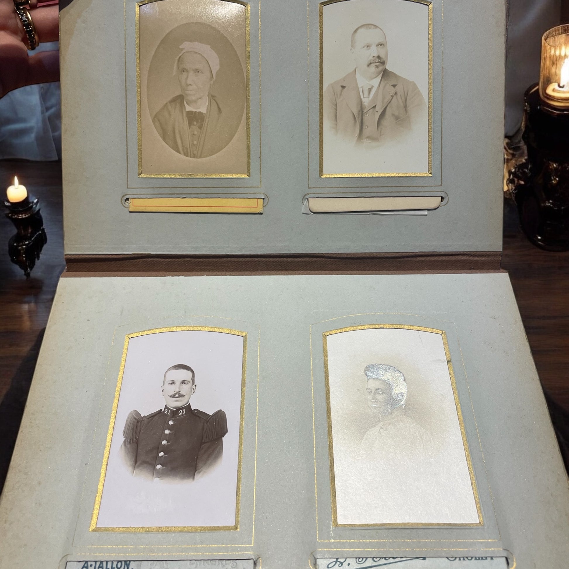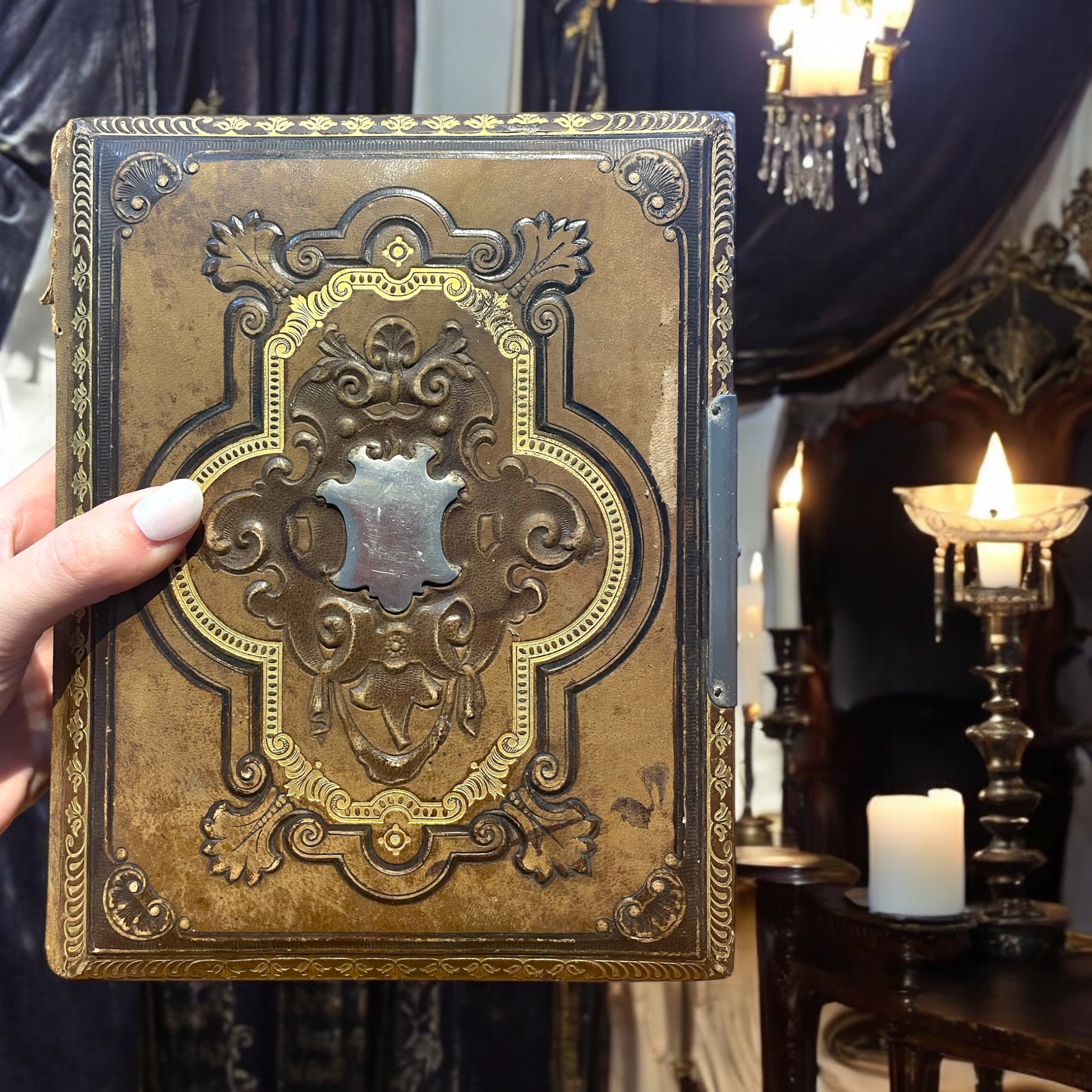 Ci sono oggetti che, più di altri, sanno raccontare storie, custodire memorie e trasportarci in epoche lontane. Questo album fotografico della fine dell’Ottocento non è solo un contenitore di immagini, ma un vero e proprio custode del tempo, uno scrigno di ricordi. La copertina, in pelle decorata con eleganti rilievi dorati, rivela l’attenzione al dettaglio tipica dei manufatti di pregio di quel periodo. Lo stile barocco dei motivi, con volute, foglie e fregi, si sposa perfettamente con la raffinata placca centrale argentata. Quest’ultima, probabilmente destinata a ospitare il monogramma della famiglia, resta una testimonianza silenziosa dell’importanza attribuita a questo album come simbolo di identità e appartenenza. Mancante di chiusura, è altrimenti ben conservato anche all’interno, con pochi difetti. Custodisce n.25 fotografie d’epoca, tra cui tre ritratti di militari: ci restituisce volti e vite del passato, come se volessero sussurrare le storie di chi ci ha preceduto. Oggetti come questo, oltre a essere molto ricercati dai collezionisti, sono anche tra quelli che più amiamo proporre: veri e propri testimoni della memoria, capaci di riportare alla luce epoche intere con la loro sola presenza. È impossibile non immaginare il fascino che questo piccolo tesoro aggiungerà a una libreria, un salotto o una collezione personale. Dimensioni (chiusi): cm 22 x 18.