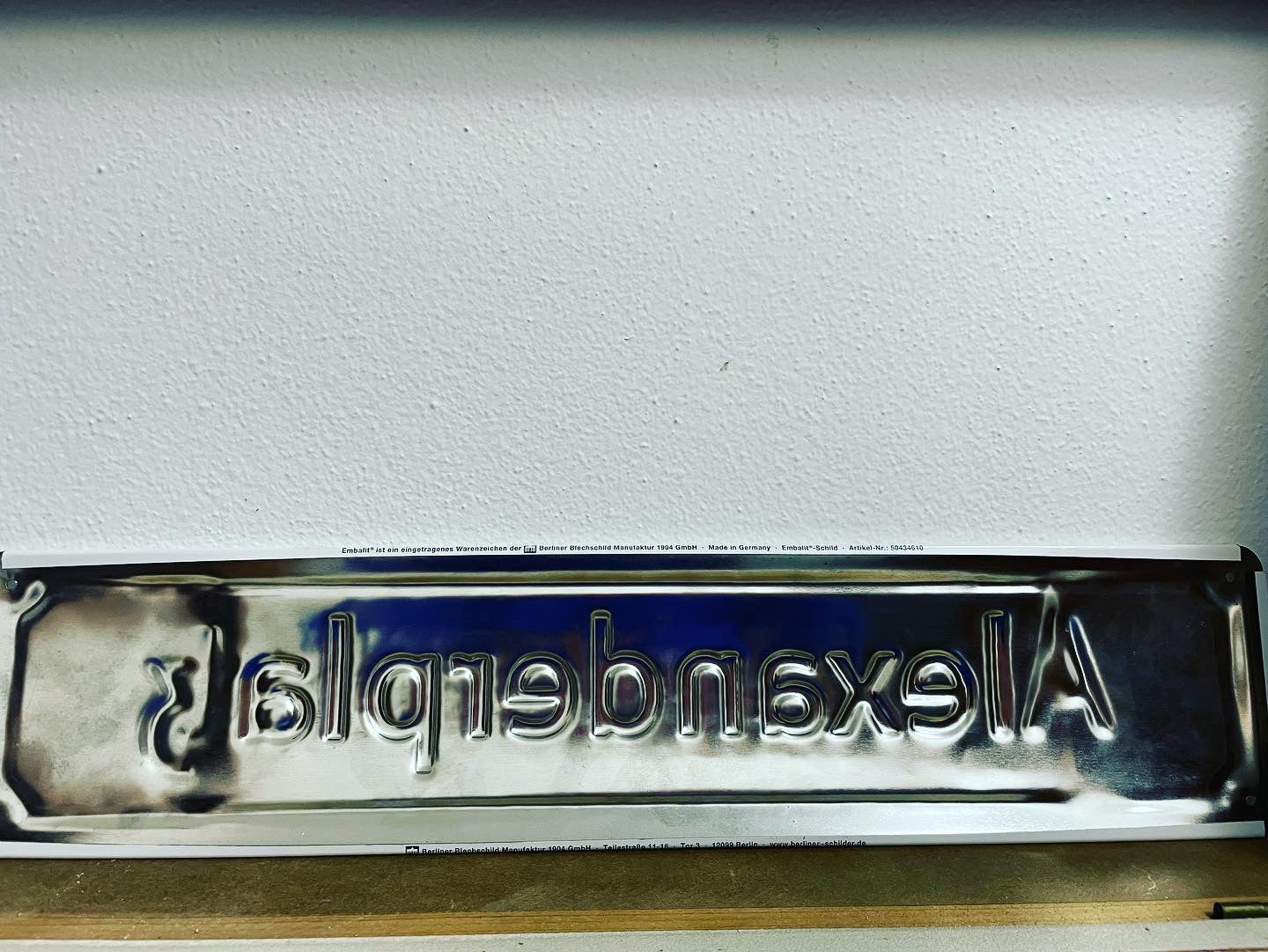 German #sign #in #tin #curved #and #embossed #of #the #famous #alexanderplatz #in #berlin. Dimensions 47 x 10 cm made in #vintage #style according to the 1905 nomenclature.