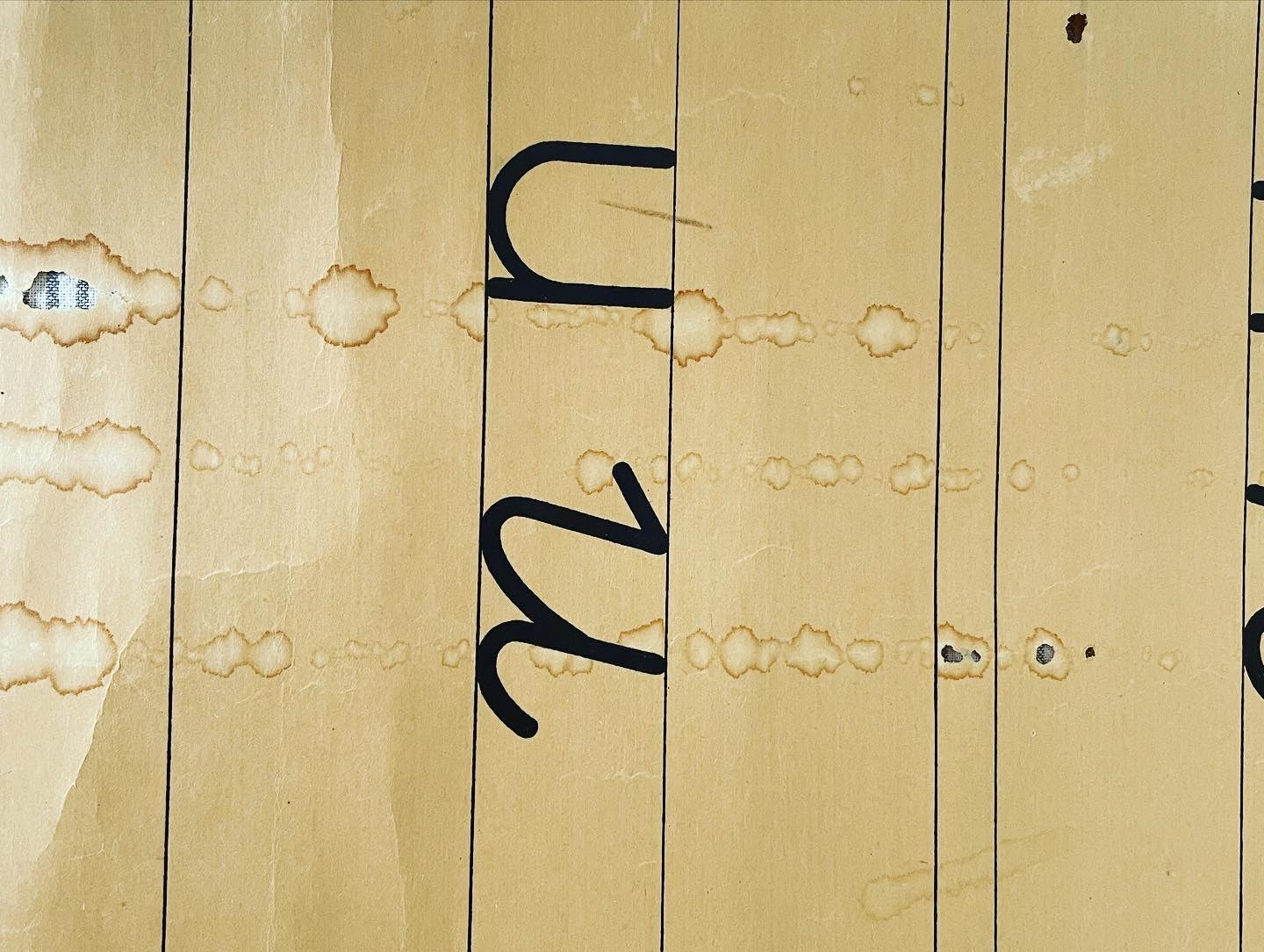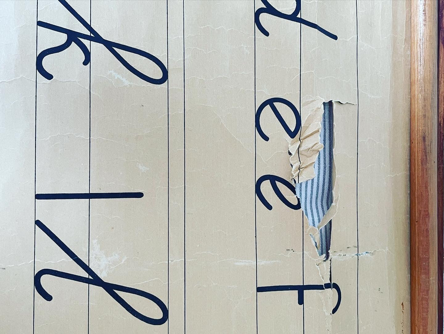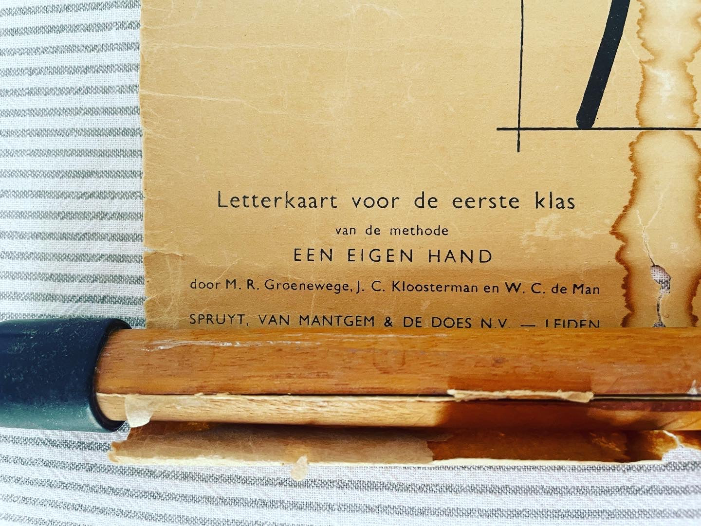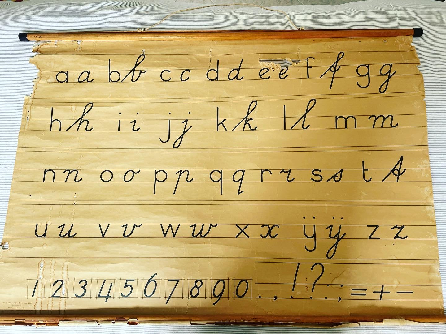 ancient very large #alphabet 1 meter wide, many #signsoftime because it dates back to the first half of the #900 and comes from Holland. It can be repaired with paper tape on the back. Beautiful with its original wooden rods; coming from a disused school!