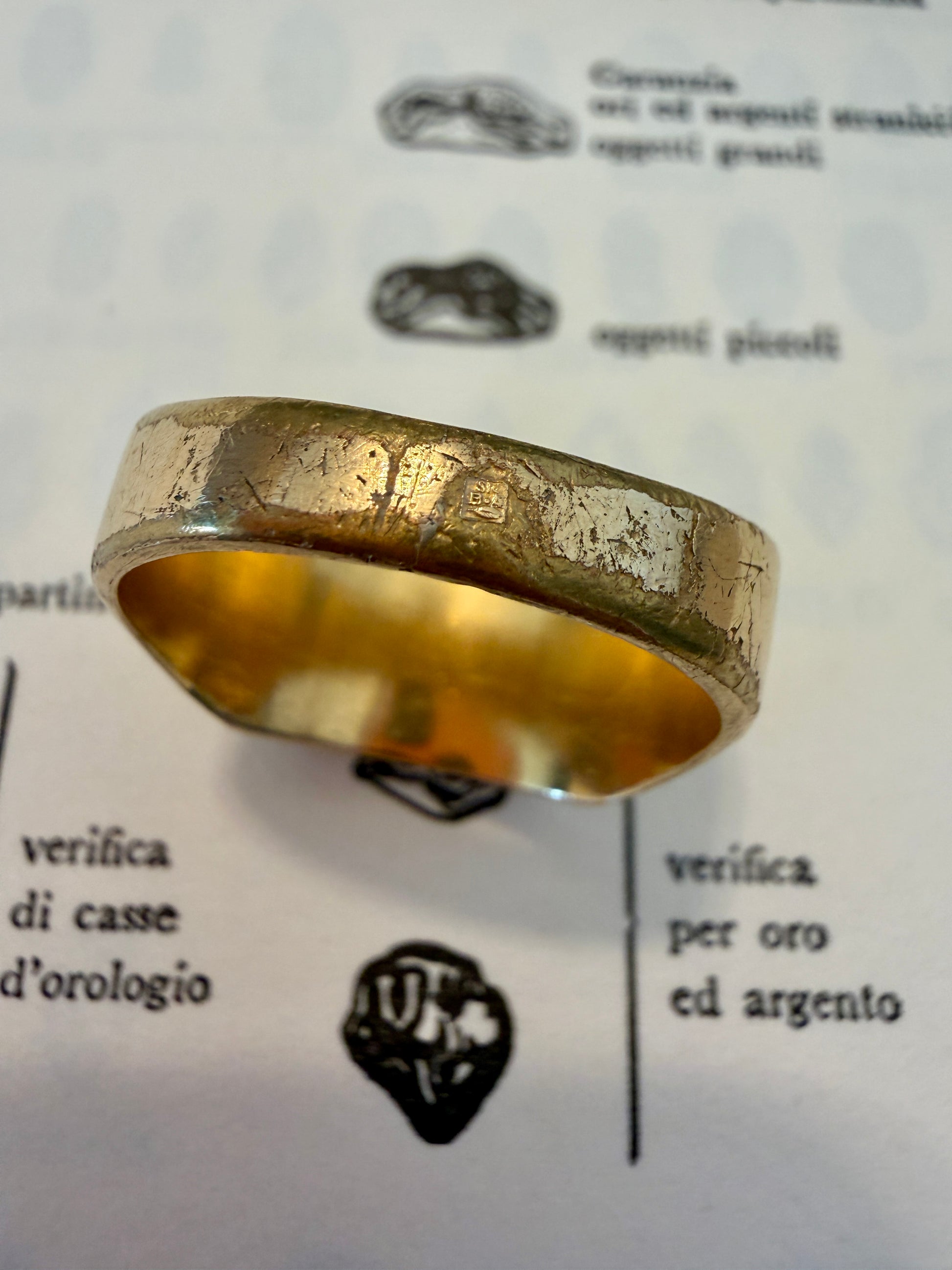 C’è un tipo di oggetto che non si limita a esistere: racconta. Questo anello è un chevalière francese degli anni ’50, pensato per dire chi sei prima ancora che tu apra bocca. Negli anni del dopoguerra le chevalières tornarono di moda tra gli uomini che volevano riaffermare radici, dignità e identità. Non erano semplici anelli: erano sigilli. Piccoli stemmi familiari, simboli di mestiere, iniziali che raccontavano una storia intima e allo stesso tempo pubblica. La placca frontale, incisa a pantografo con le iniziali J G, non era solo una decorazione: era una firma discreta. Jean la sfiorava spesso con il pollice quando rifletteva, un gesto abituale per chi vive immerso nelle parole degli altri e deve, ogni giorno, trovare equilibrio e giudizio. I motivi a raggiera ai lati dell’anello, tipici dei modelli popolari francesi degli anni ’50, evocano una forza silenziosa: come raggi di luce che indicano che ogni decisione può aprire una strada. Chi lo indossava era un uomo preciso, riservato, affidabile. Il tipo che prende appunti con una stilografica anche quando potrebbe farne a meno. Il tipo che sistema la giacca prima di parlare. Il tipo che osserva e pensa, molto più di quanto dica. Ma il bello di questo anello è che, pur essendo profondamente personale, non parla solo di lui. Parla di chiunque abbia un carattere simile: di chi ama la calma, la coerenza, l’intelligenza silenziosa. Parla a chi sente di avere un lato antico, solido, discreto — e vuole che si veda, anche solo in un dettaglio. Oggi questo anello non chiede di essere guardato: chiede di essere riconosciuto. Da chi sente di avere, come Jean Giraud, una storia da portare sulla mano.
