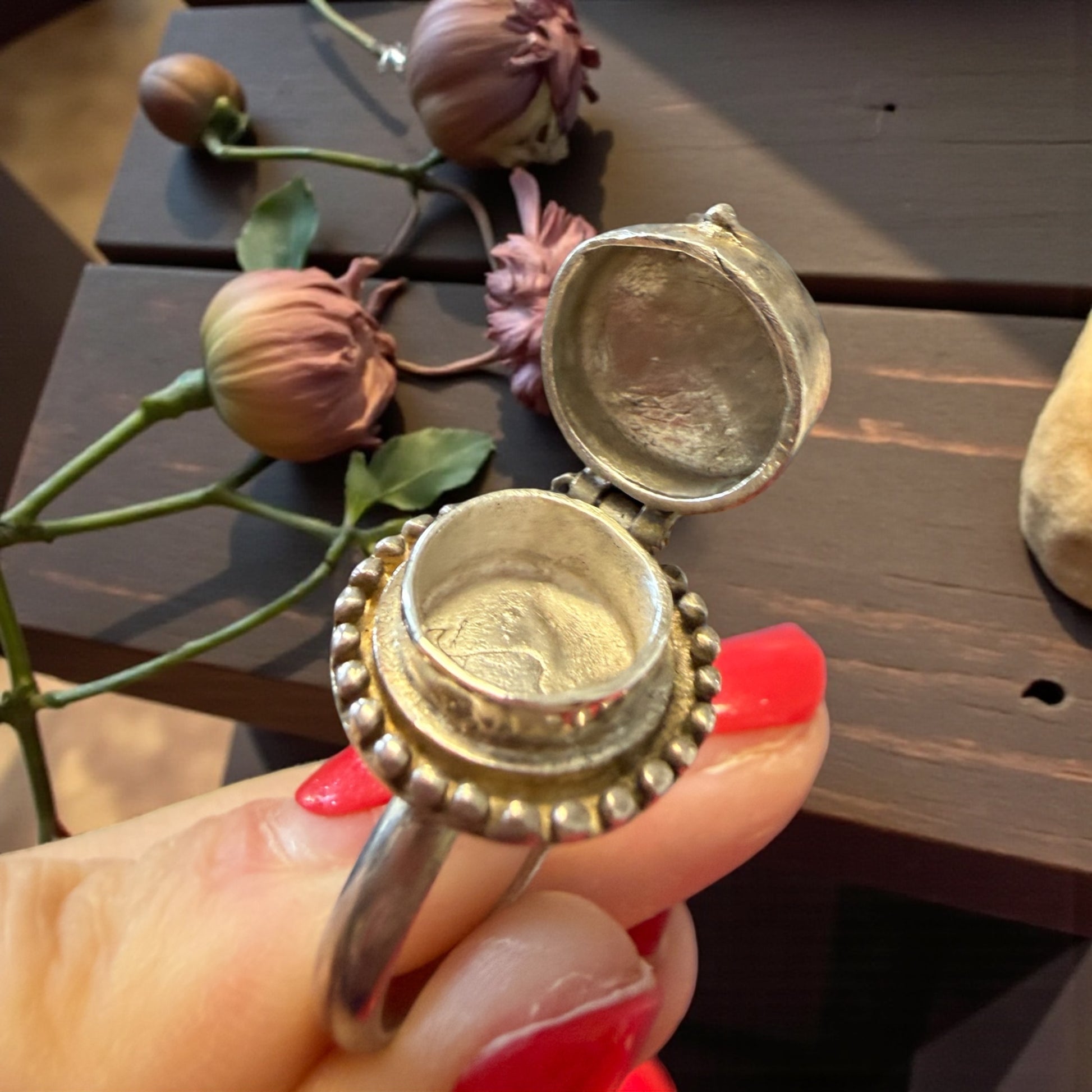 Anello devozionale con scomparto segreto da reliquia, primo ‘900 in argento 825