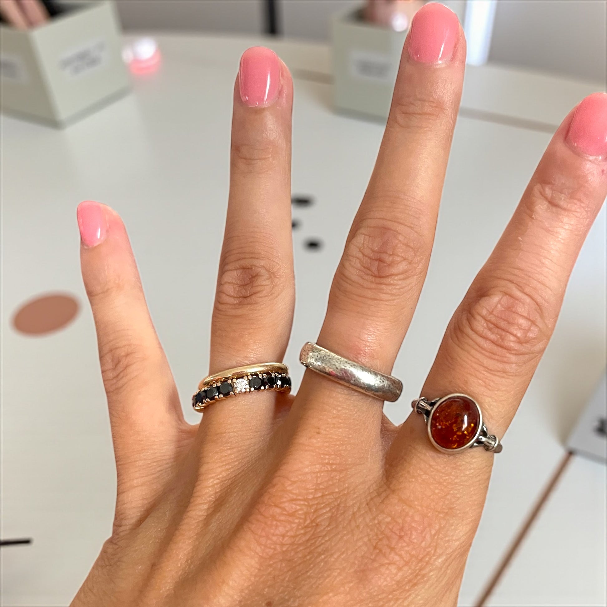 Anello francese in argento ed ambra baltica, punzonato, ca anni ‘40