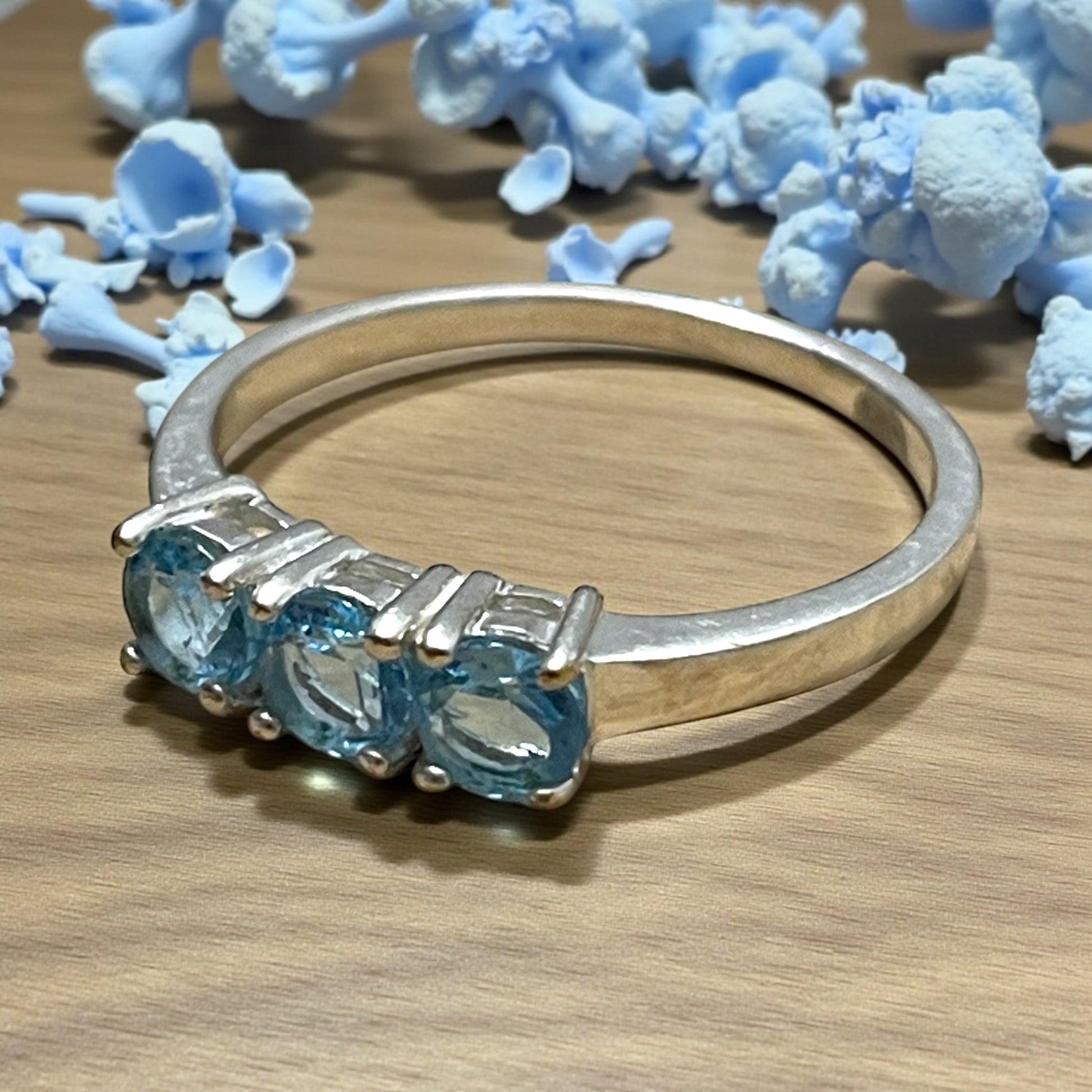 Anello in argento trilogy anni ‘90 con topazi azzurri sintetici 18 mm