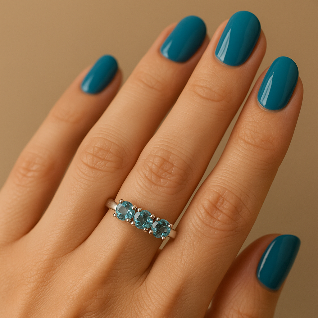 Ci sono simboli che attraversano il tempo senza perdere significato. Il trilogy è uno di questi: tre gemme allineate, tre punti fermi che raccontano una storia senza bisogno di parole. Ieri, Oggi e Domani: ciò che è stato, ciò che vive adesso, ciò che deve ancora accadere. Questo anello custodisce quell’idea semplice e potente: un legame che continua. La luce azzurra dei topazi sintetici richiama il colore dei pensieri limpidi e delle promesse sincere, mentre l’argento lo avvolge con la sua sobria eleganza. È un anello che non nasce per apparire, ma per significare. Indossarlo è un gesto intimo: è scegliere di portare con sé un percorso, una memoria o una direzione. Che sia un dono o una scelta personale, questo trilogy non è un semplice gioiello. È un promemoria che brilla al dito: le cose importanti restano.