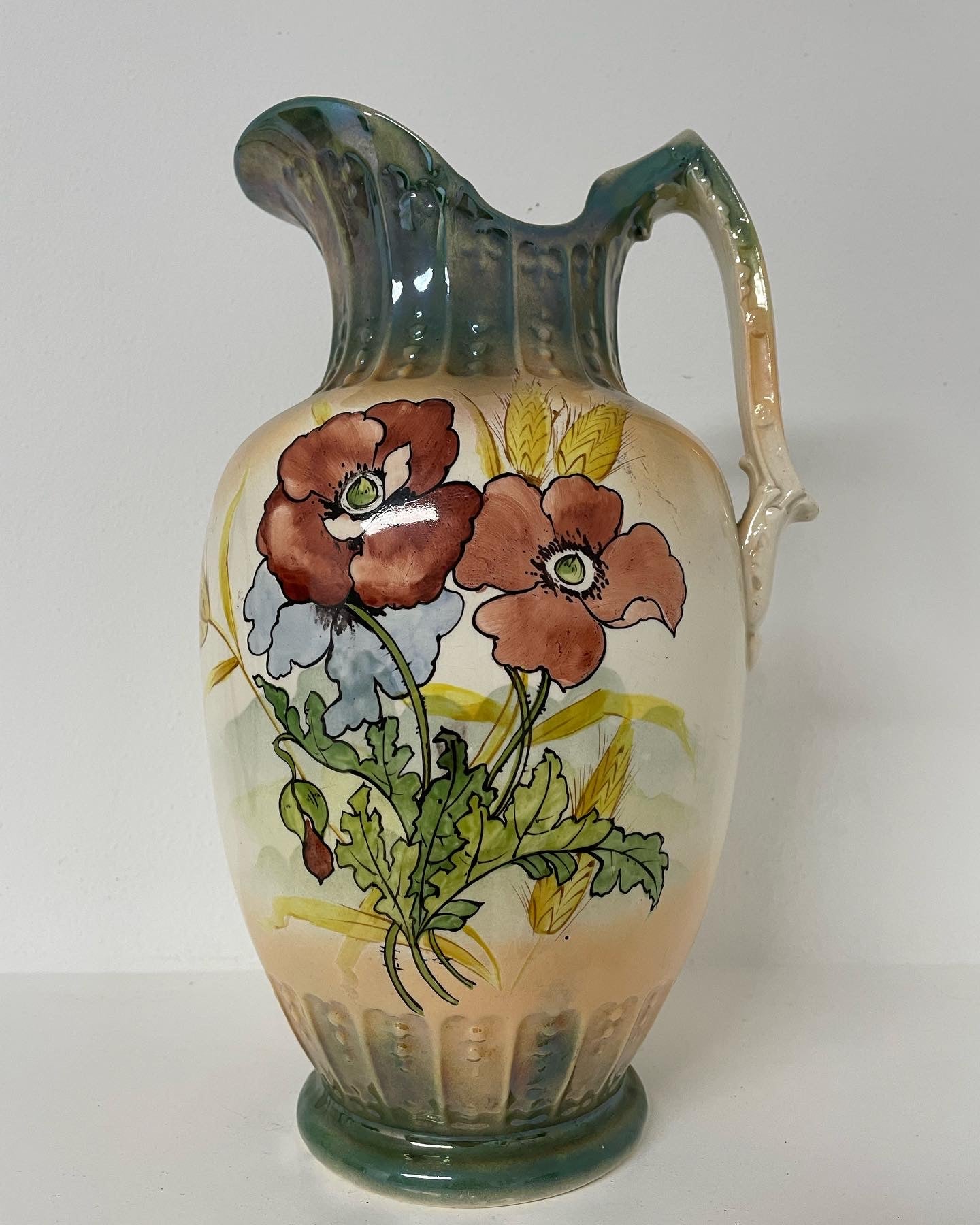 Large and splendid #antique #artnouveau #jug from the prestigious #royalbonn #ceramics, numbered and stamped. Perfect condition, #painted with a #poppy motif on the front and back. Height 35 cm.