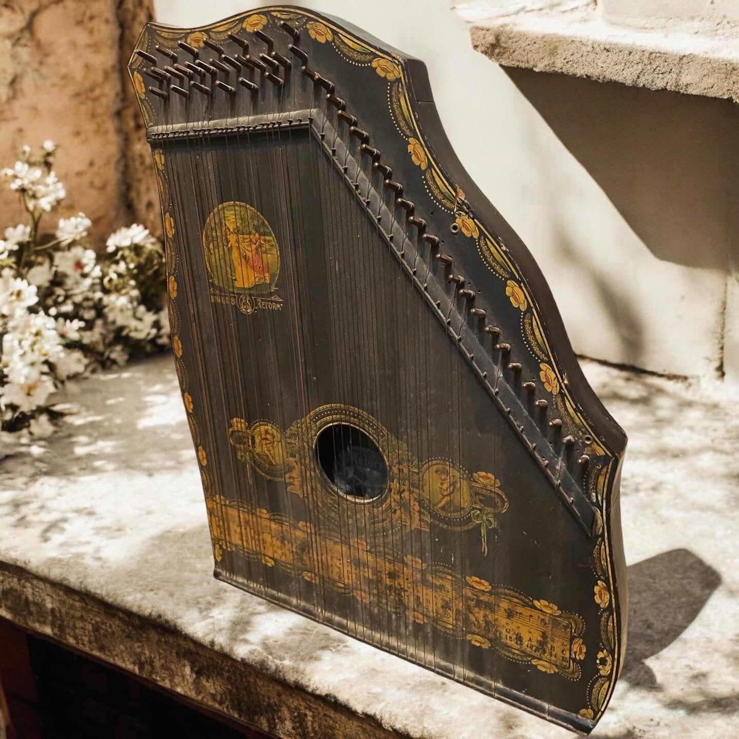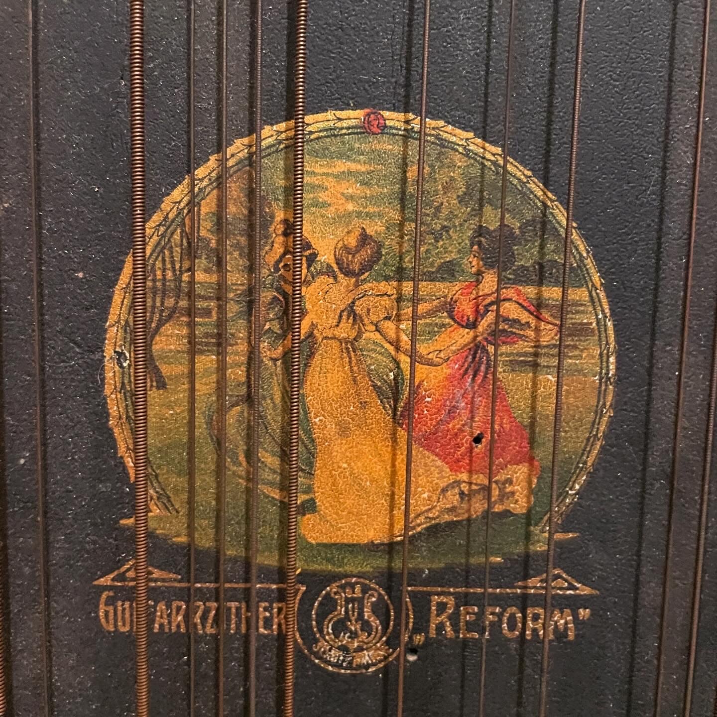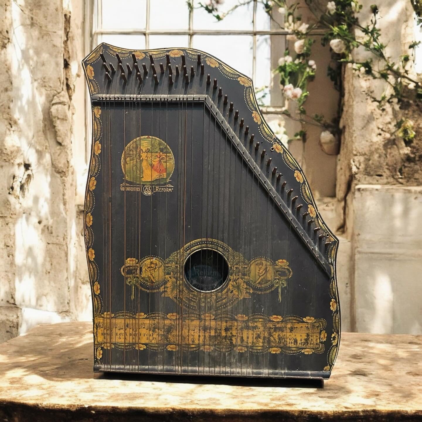 Dallo studio di musicista tedesco proponiamo questo recupero dal valore storico importante ma soprattutto un pezzo da collezione immancabile per un appassionato. Si tratta di un’antica cetra, o citara, modello Reform prodotta in Germania nel 1920 da Heinrich Reinhold. Finemente decorata nello spirito liberty, è un oggetto meraviglioso da tutti i punti di vista - musicale, storico, estetico. Naturalmente le corde sono da sistemare nel caso lo strumento voglia essere utilizzato. noi l’abbiamo ritirato come elemento d’arredo, era appeso ed è ancora provvisto di gancio posteriore. La sua presenza estetica e la finezza ed eleganza dei decori sono indescrivibili se non avendolo in mano. Le dimensioni: 54 x 41.4 cm. Facilmente sul web ne troverete pochissimi altri esemplari ad un prezzo praticamente doppio.