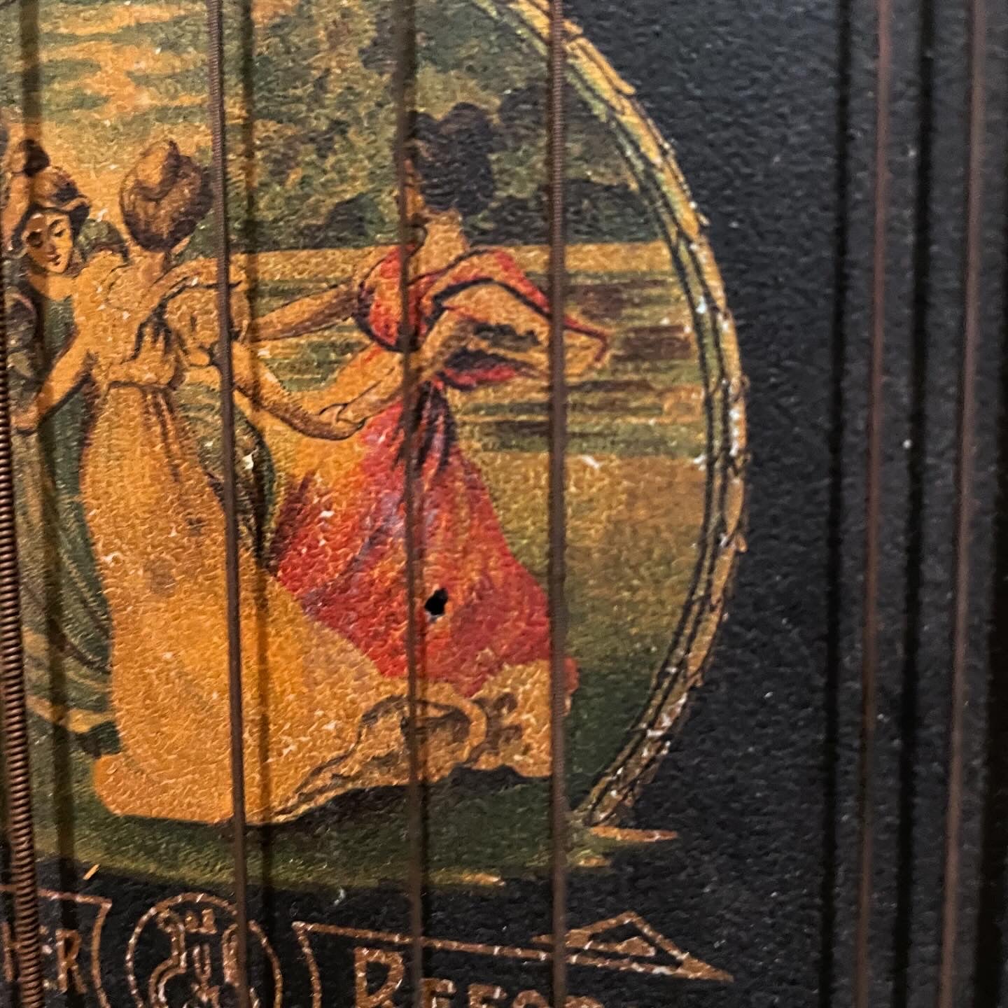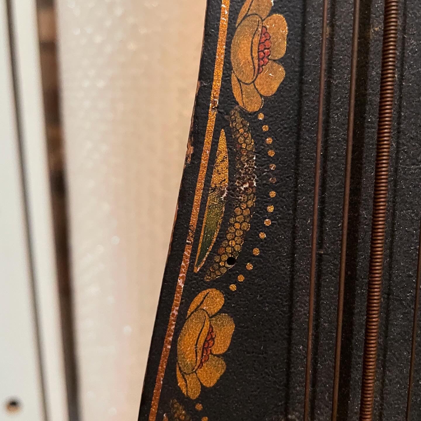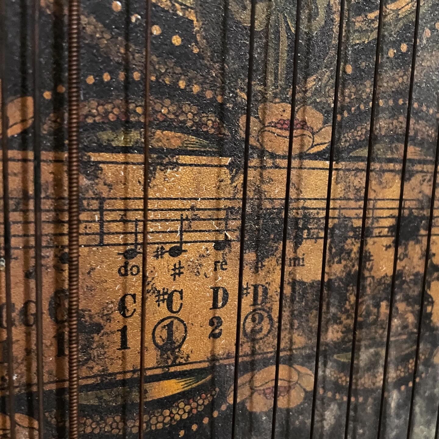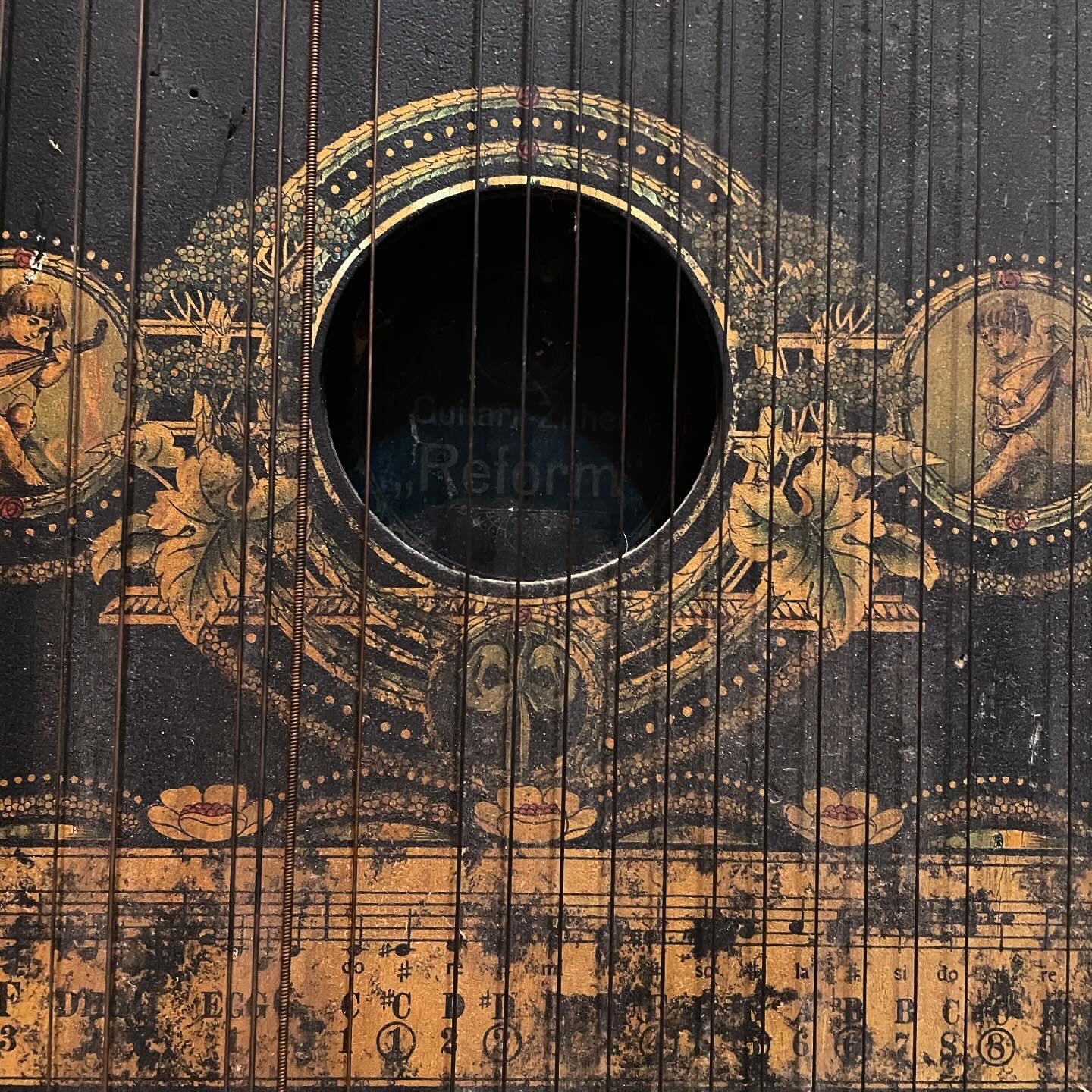Dallo studio di musicista tedesco proponiamo questo recupero dal valore storico importante ma soprattutto un pezzo da collezione immancabile per un appassionato. Si tratta di un’antica cetra, o citara, modello Reform prodotta in Germania nel 1920 da Heinrich Reinhold. Finemente decorata nello spirito liberty, è un oggetto meraviglioso da tutti i punti di vista - musicale, storico, estetico. Naturalmente le corde sono da sistemare nel caso lo strumento voglia essere utilizzato. noi l’abbiamo ritirato come elemento d’arredo, era appeso ed è ancora provvisto di gancio posteriore. La sua presenza estetica e la finezza ed eleganza dei decori sono indescrivibili se non avendolo in mano. Le dimensioni: 54 x 41.4 cm. Facilmente sul web ne troverete pochissimi altri esemplari ad un prezzo praticamente doppio.