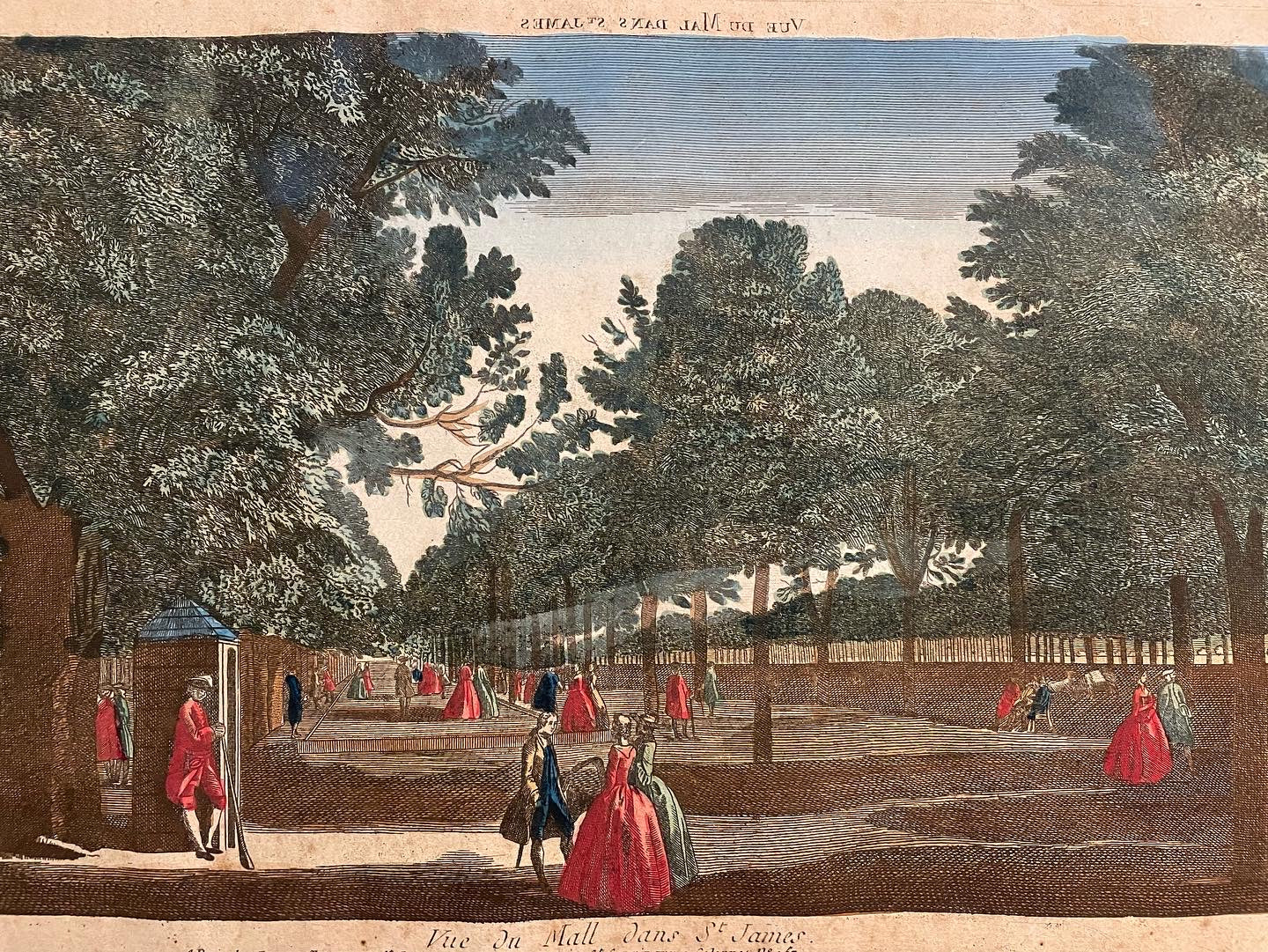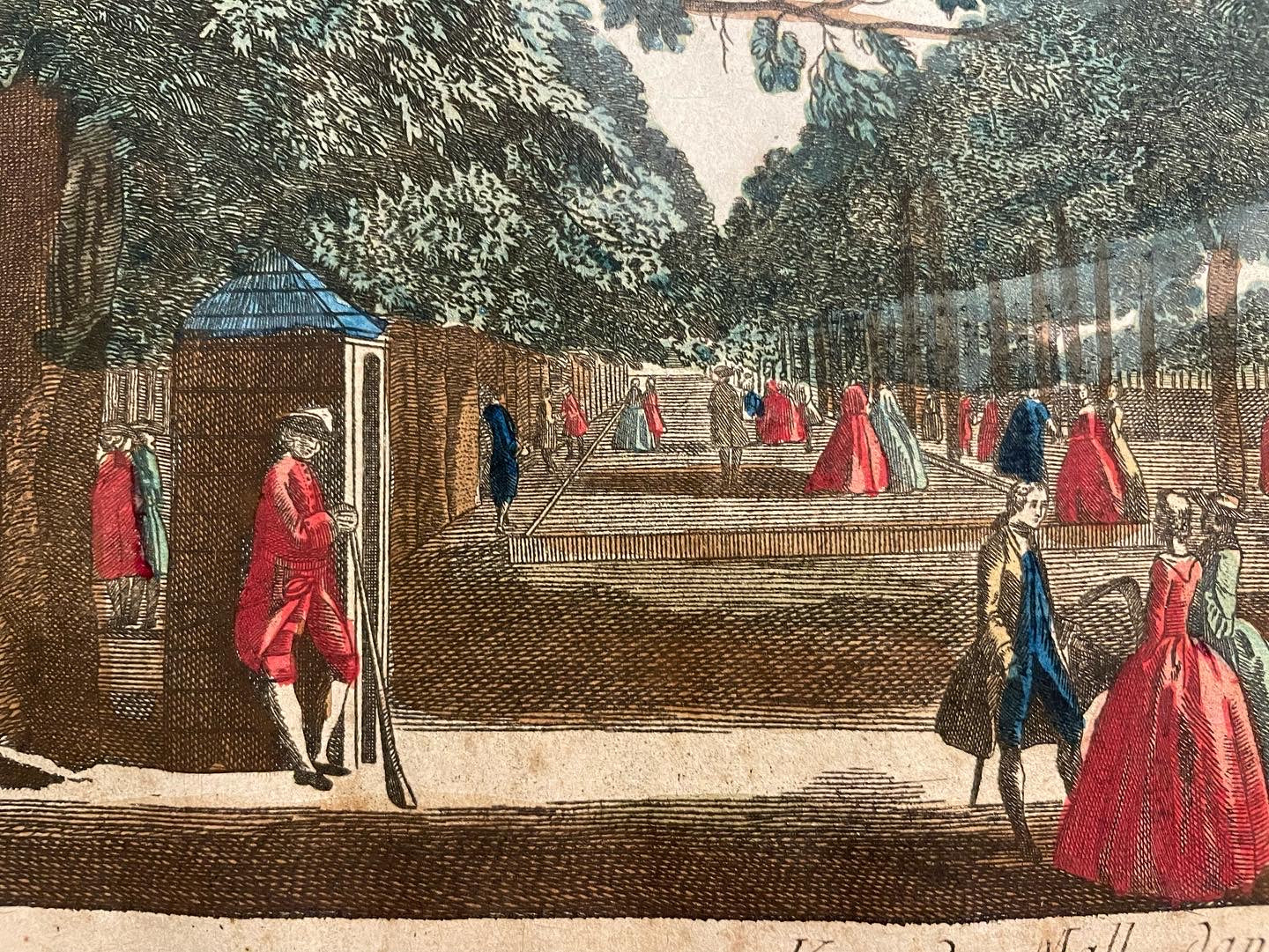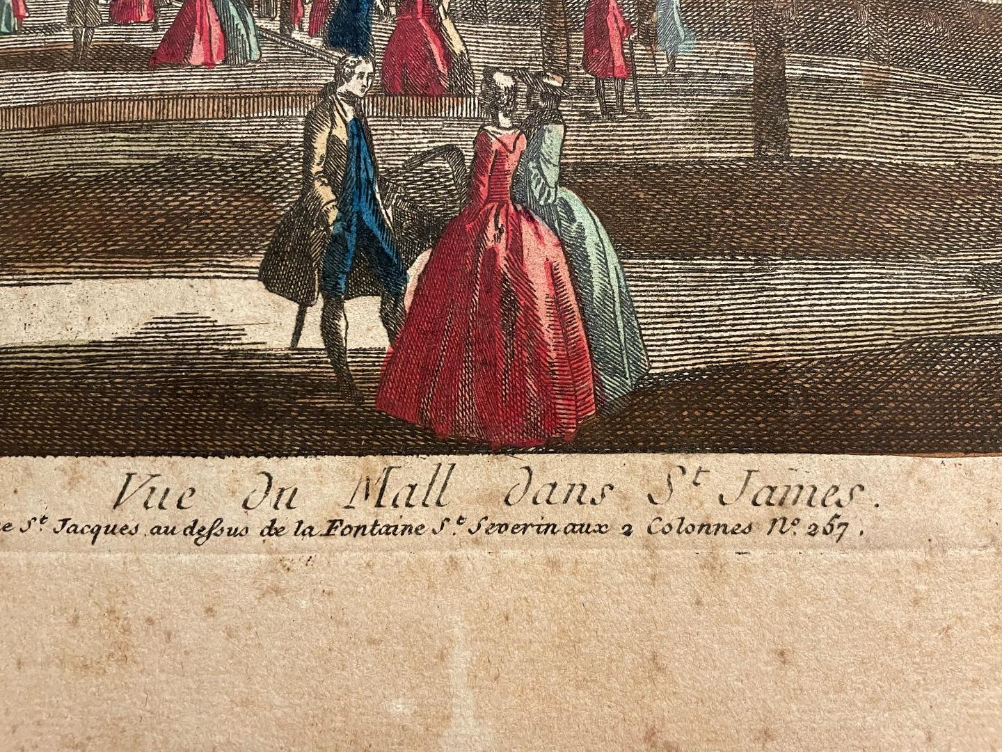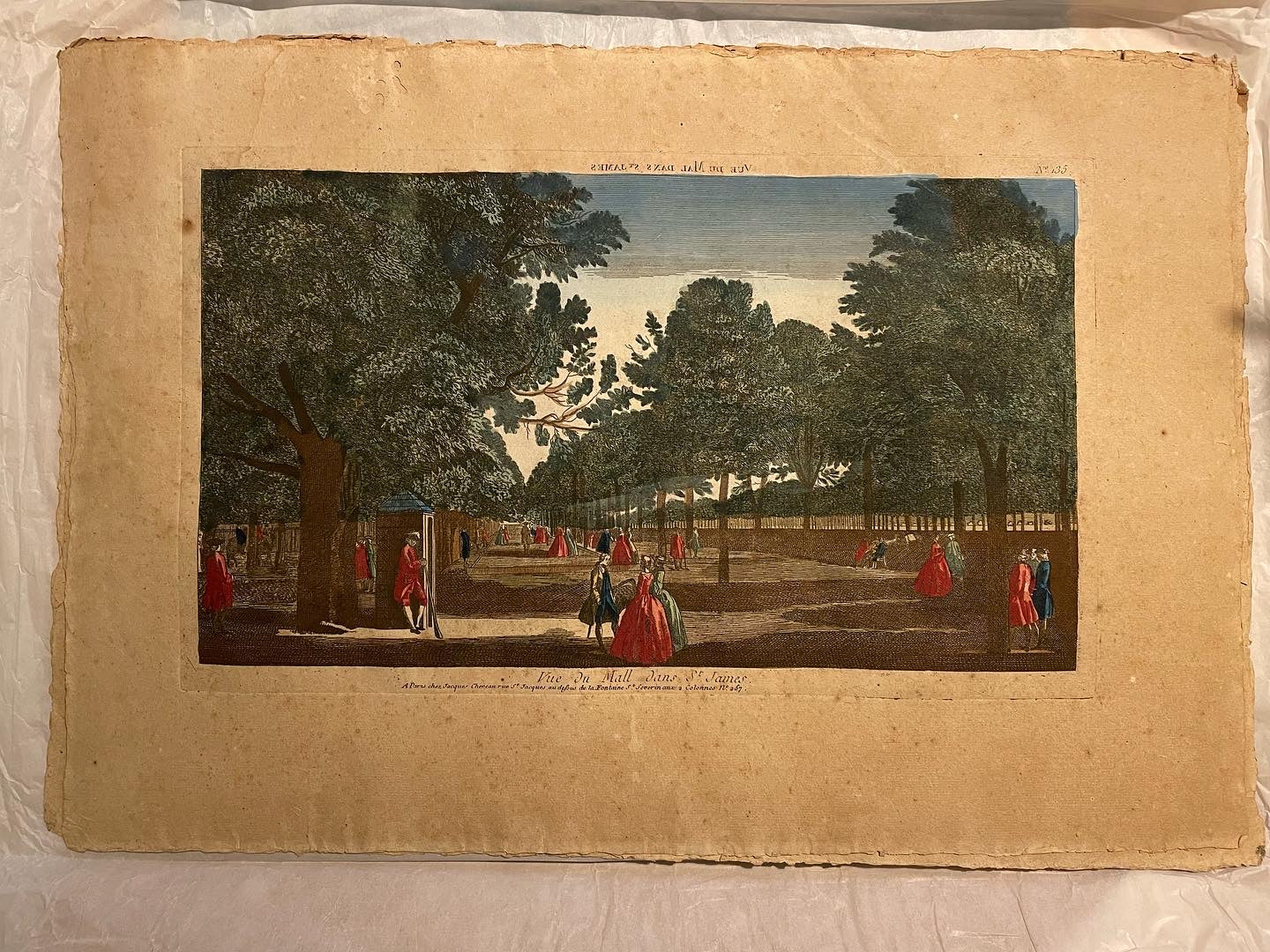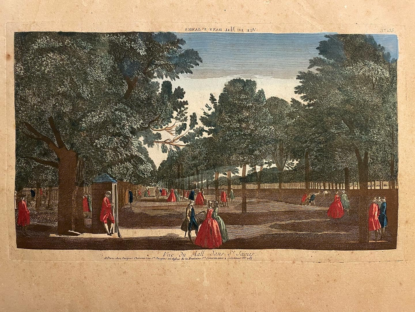 Large #eighteenth-century French #engraving with #perspective view of the #vuedumall with its side gardens. Stunning colors and wonderfully preserved. Beautiful to frame, a #uniquepiece for #antique lovers. Dimensions 52 x 37 cm.