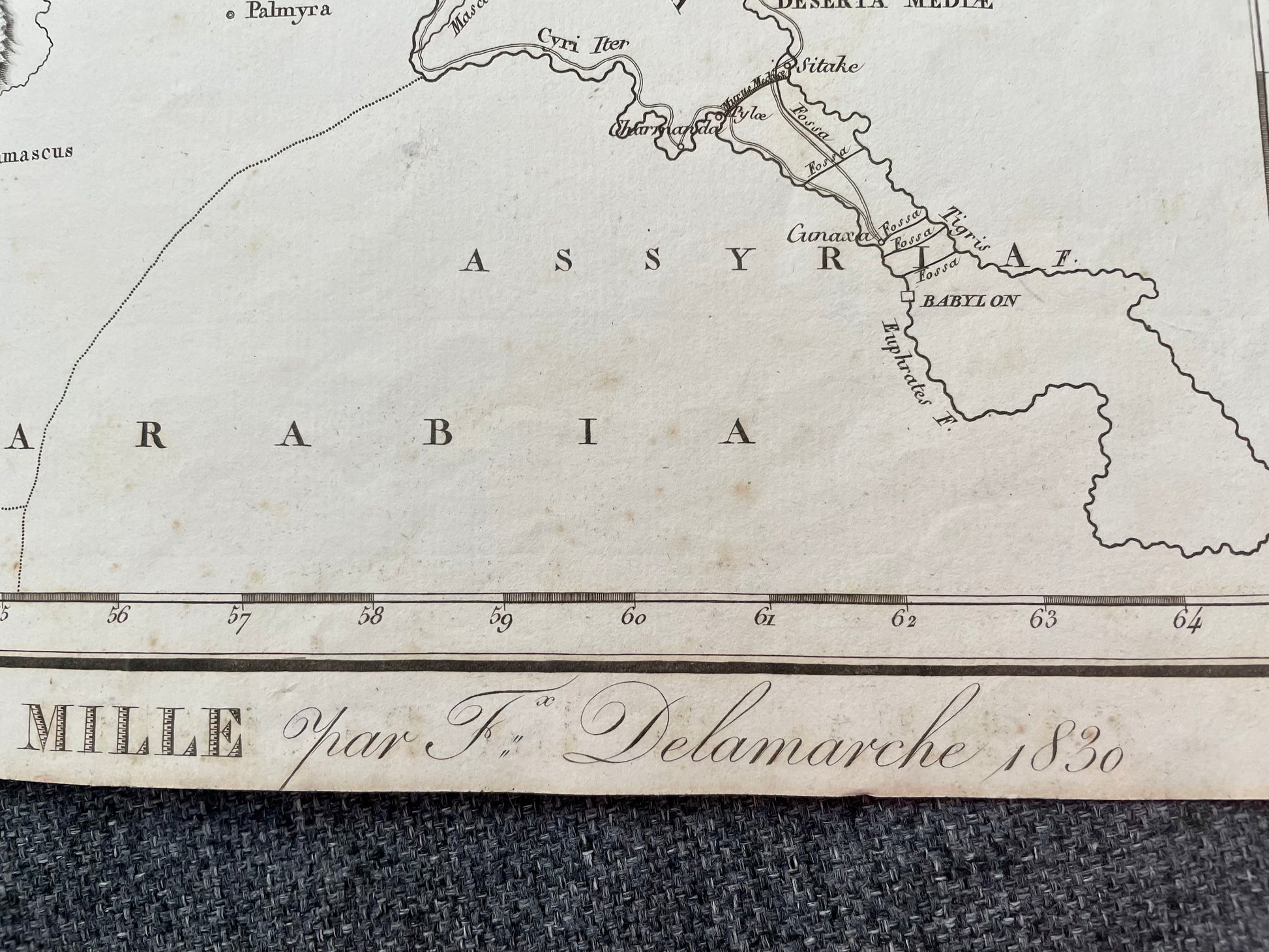 Antica mappa incisione rame Delamarche 1830, ritirata dei 10.000 (Anabasi Senofonte)