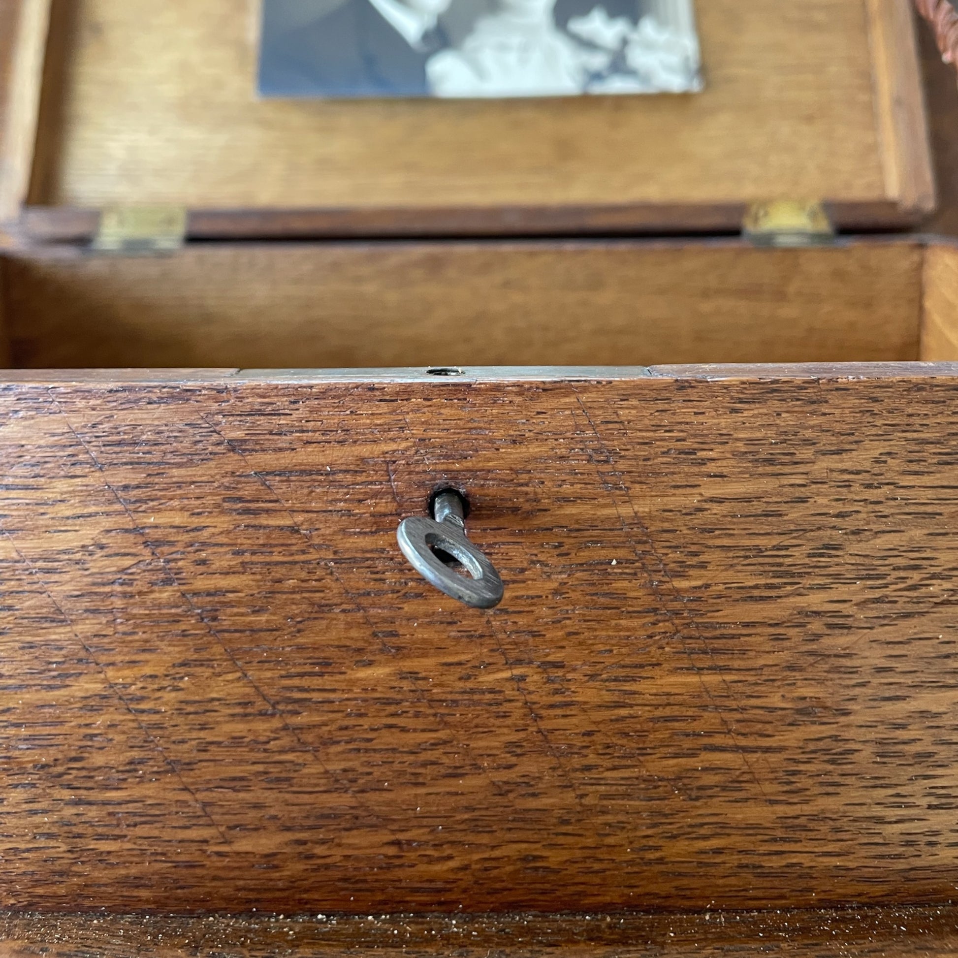 Antica scatola di nozze, primissimo ‘900, intagliata, Arts & Crafts con chiave