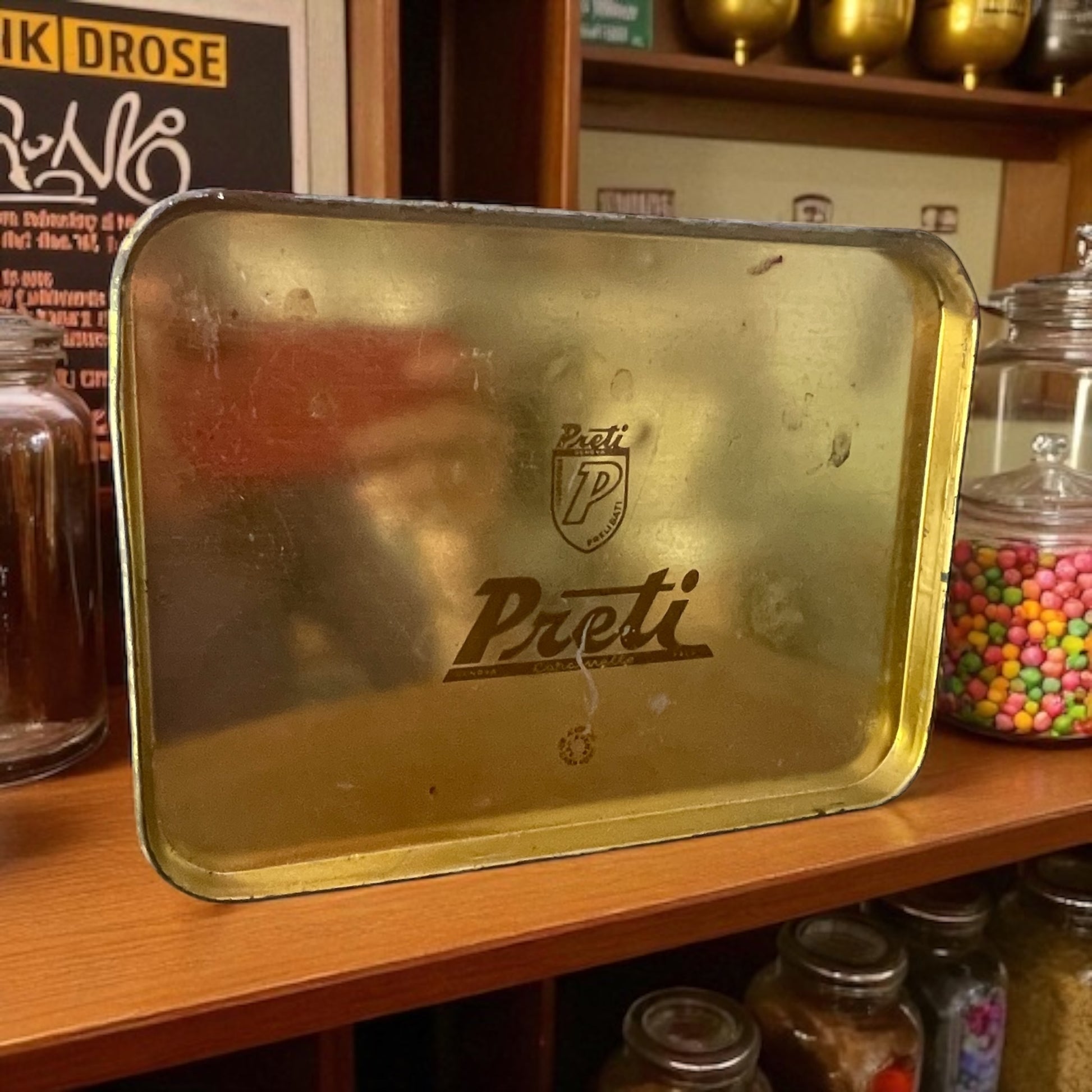 Antica scatola latta caramelle Preti primi anni ‘50