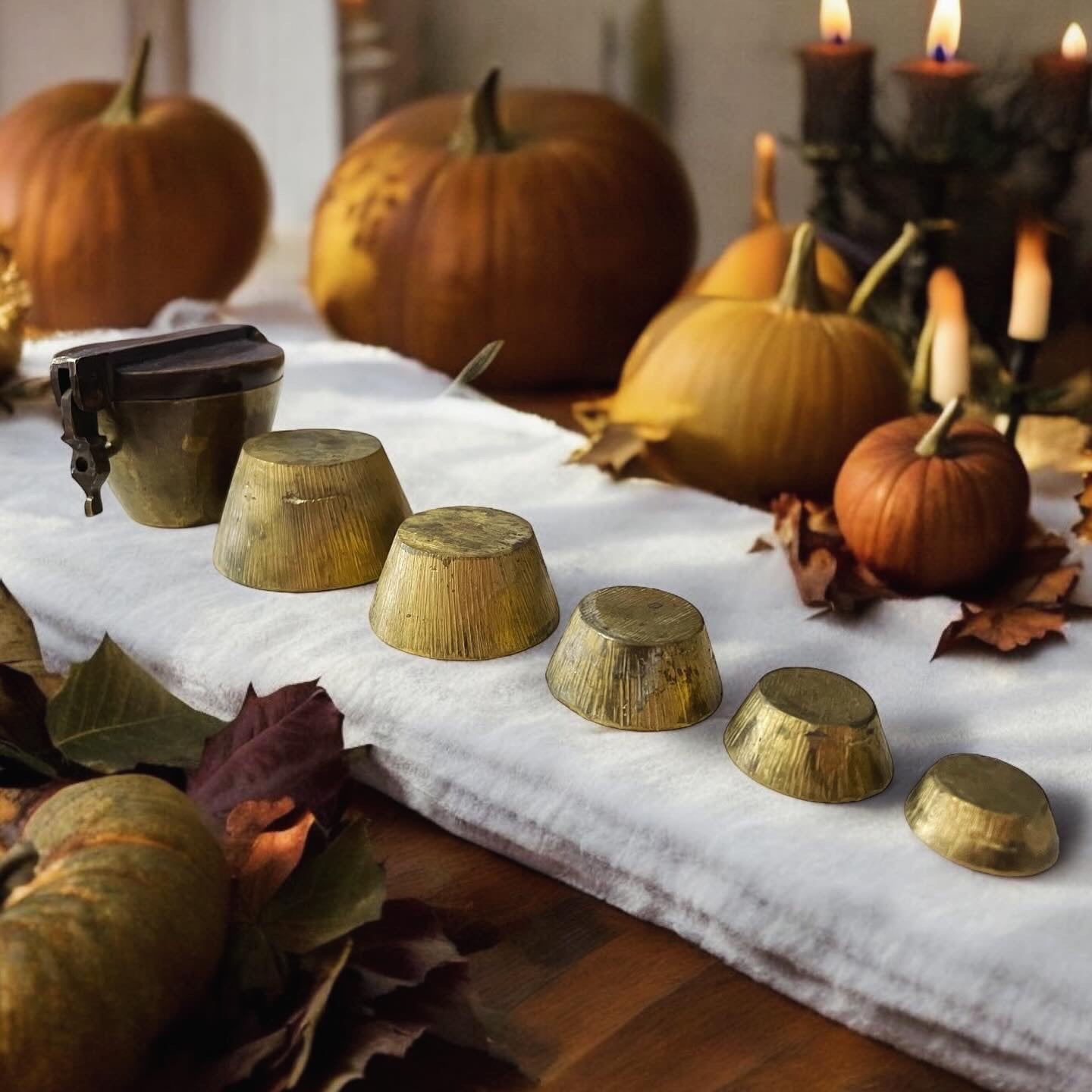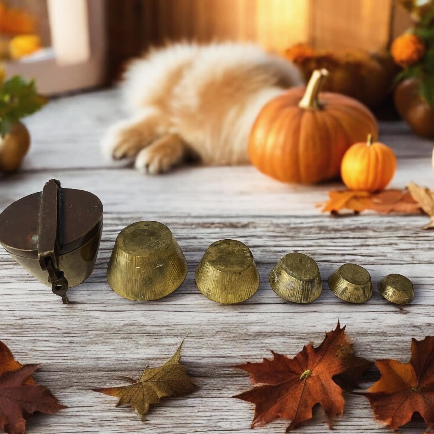 Antico set di pesi detti di Carlo Magno; si tratta di pesiere molto ricercate e antiche che si basano sull’unità di misura della libbra carolingia, corrispondente a circa 404 - 409 g. Queste pesiere erano strutturate in modo da essere facilmente impilate e trasportate con sicurezza data la chiusura, in modo che non fosse perduto nemmeno un piccolo piccolo peso. Epoca fine ottocento. Difficile trovarli a questo prezzo.