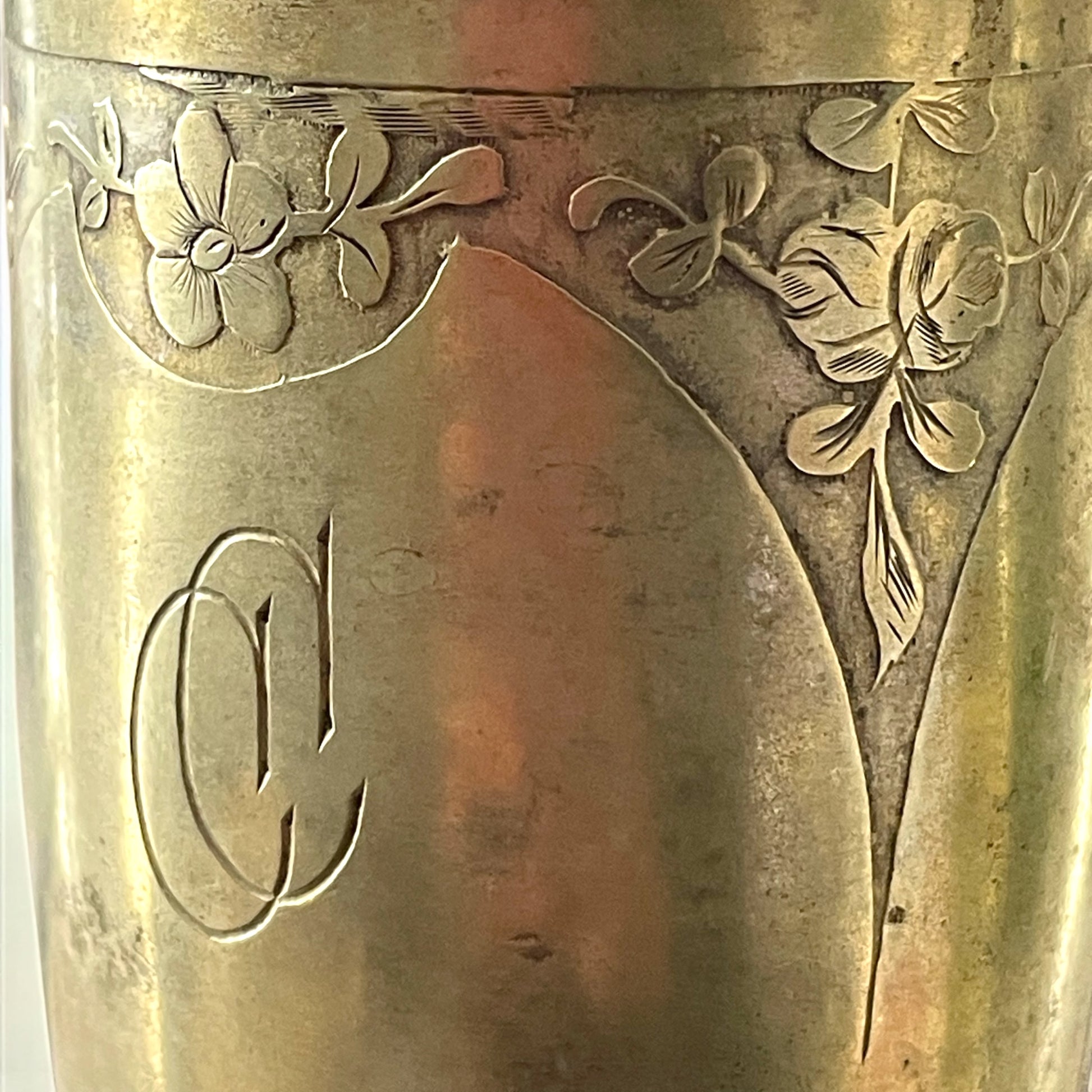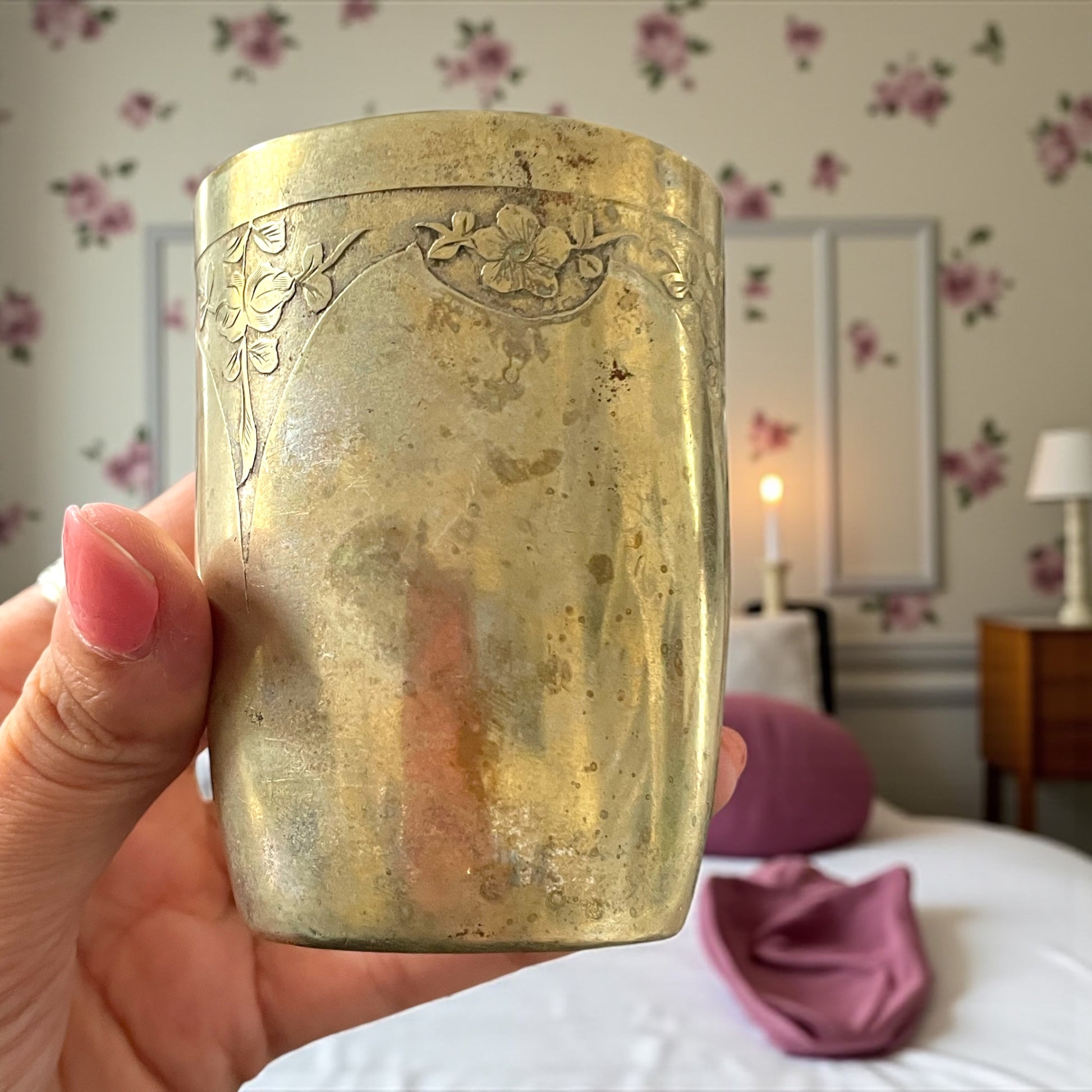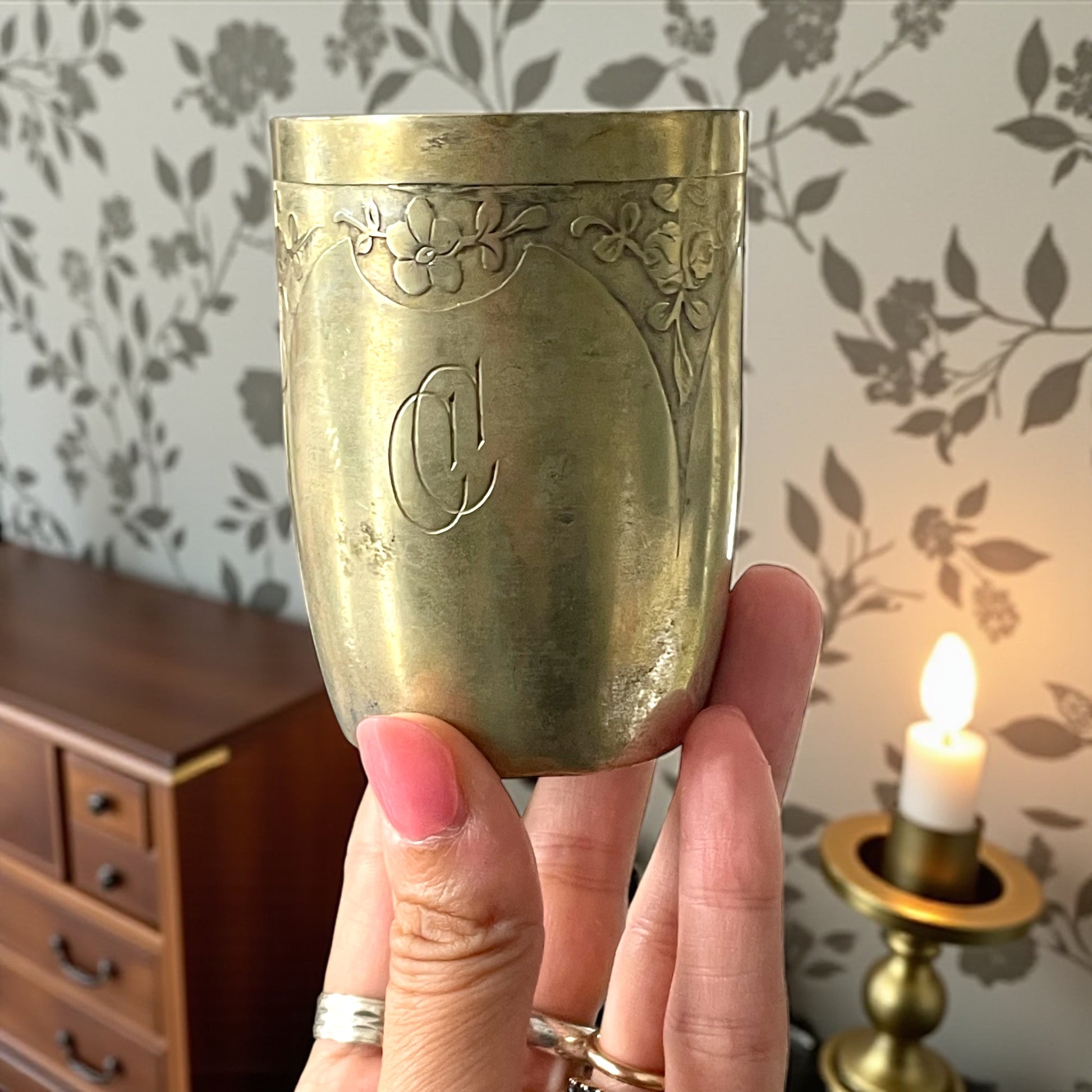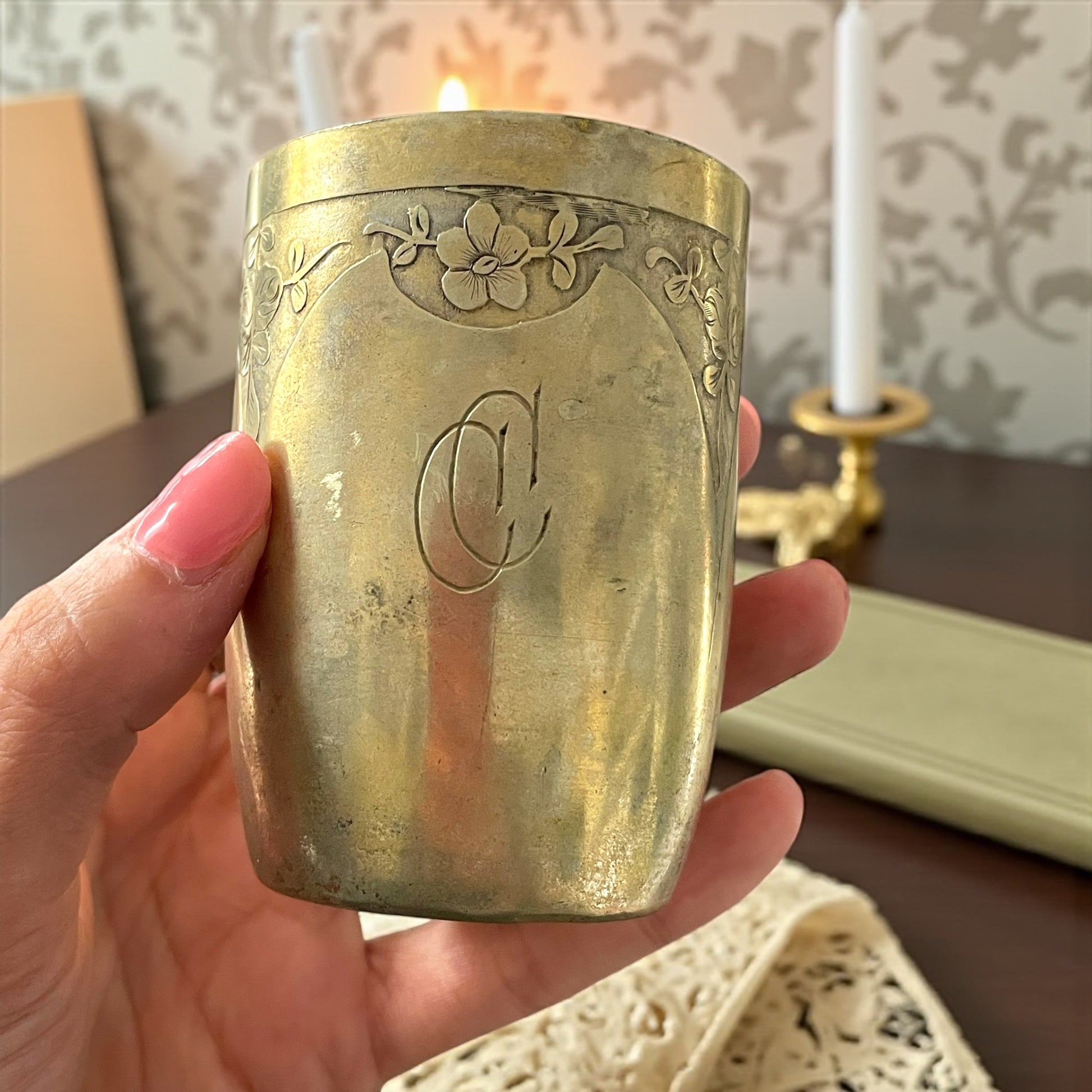 Antico bicchiere da camera argentato con monogramma CC, belle époque