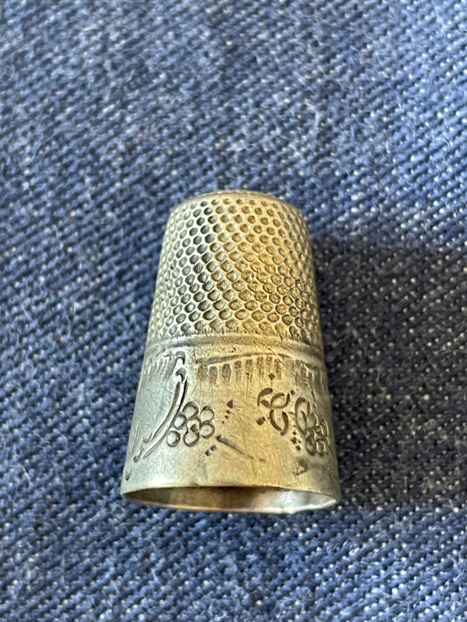 • Ditale in argento finemente inciso, con decori floreali.