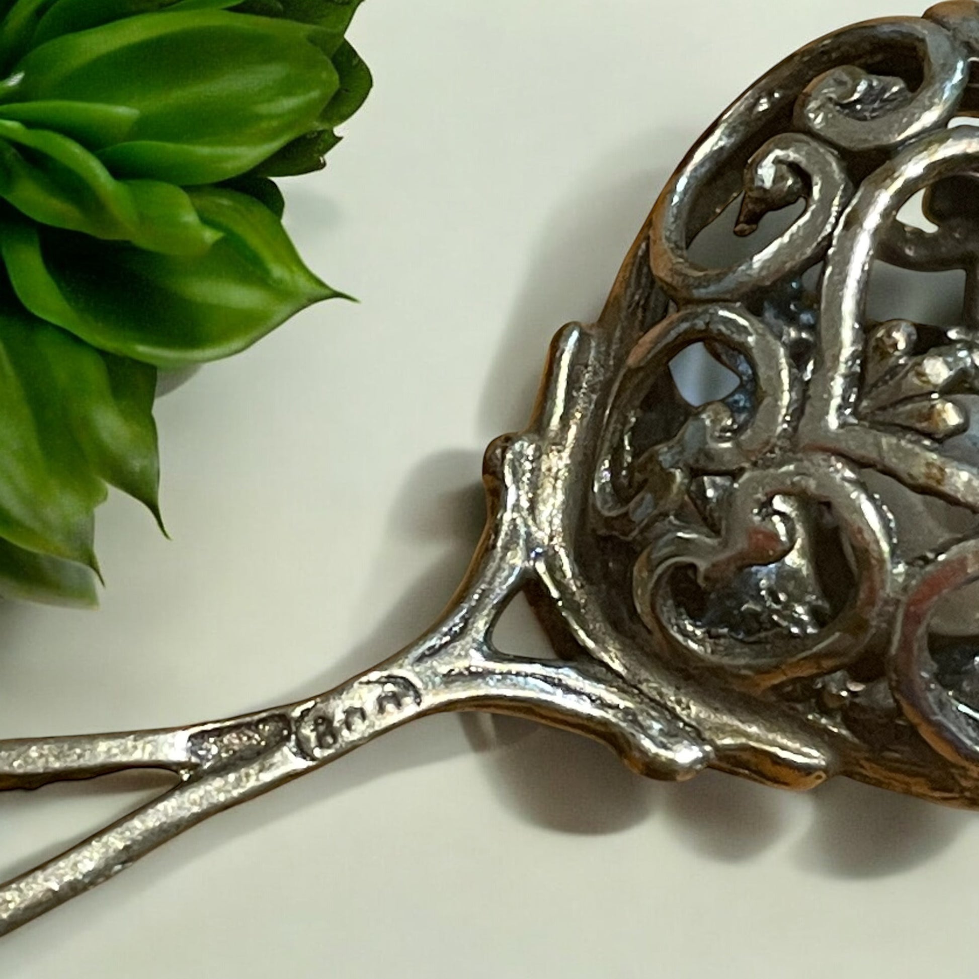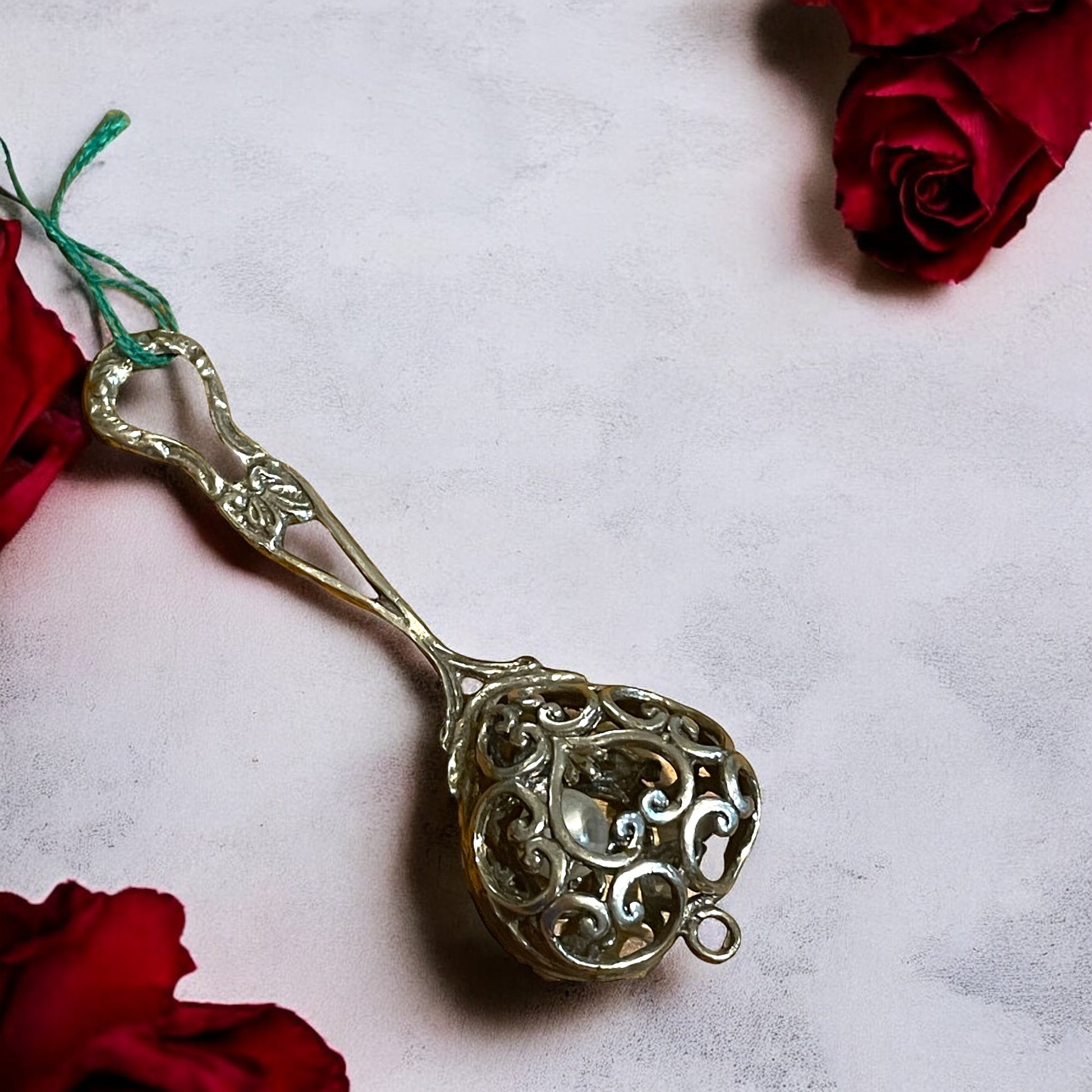 Immagina una stanza illuminata dalla luce morbida di un pomeriggio degli anni ’40, il tintinnio di questo sonaglio in argento 800 che rompe il silenzio con una melodia delicata. Le sue volute scolpite sembrano ispirate a un giardino segreto, mentre la perla nascosta al suo interno custodisce il suono di un’epoca passata, quasi fosse il battito d’ali di un ricordo. Questo sonaglio non è solo un oggetto, ma un simbolo d’amore e di cura, creato per le mani piccole di un bimbo fortunato. Ogni dettaglio parla di artigianalità e poesia, rendendolo un dono prezioso per chi desidera conservare un frammento di storia nella propria vita. Condizioni ottime, ideale anche come pendente.