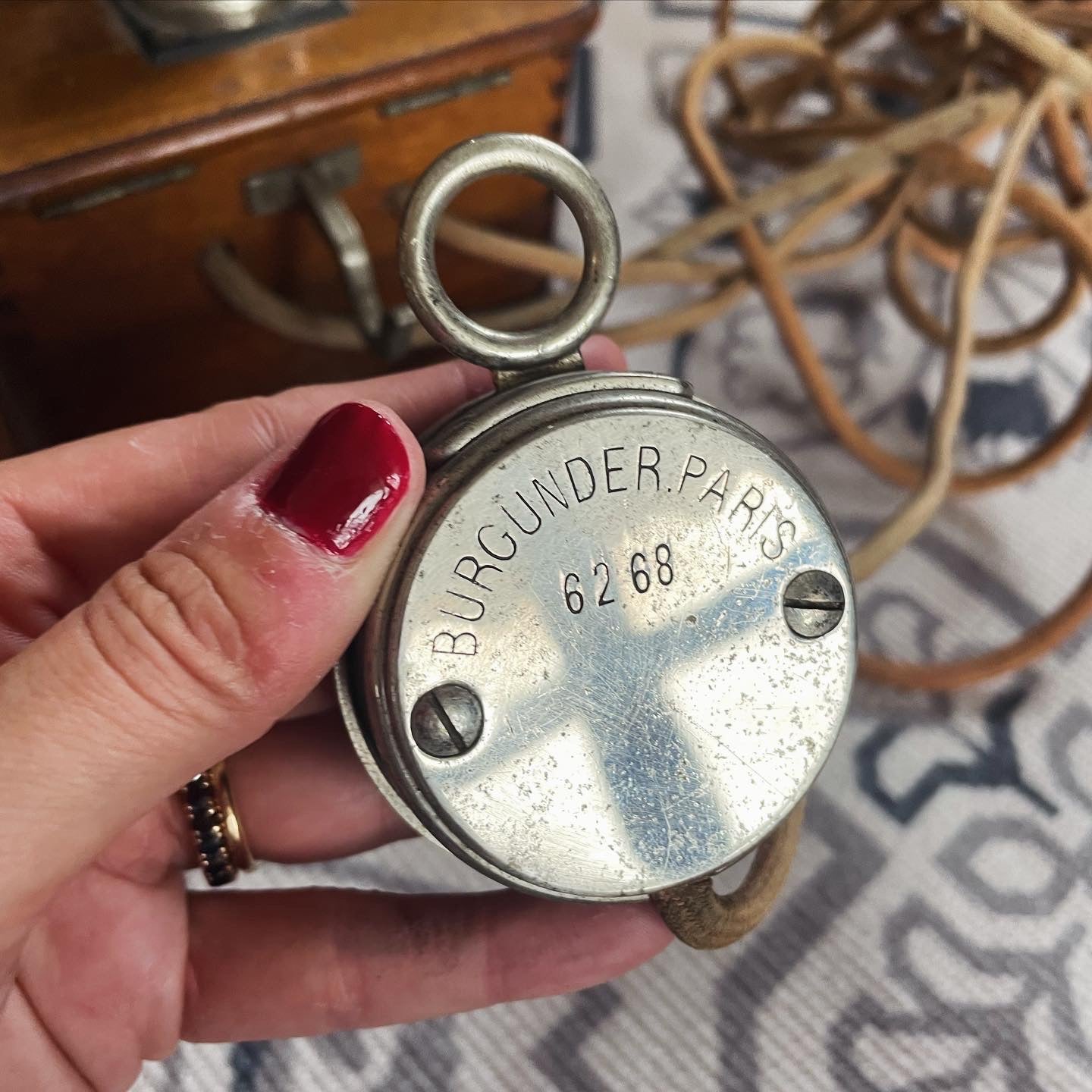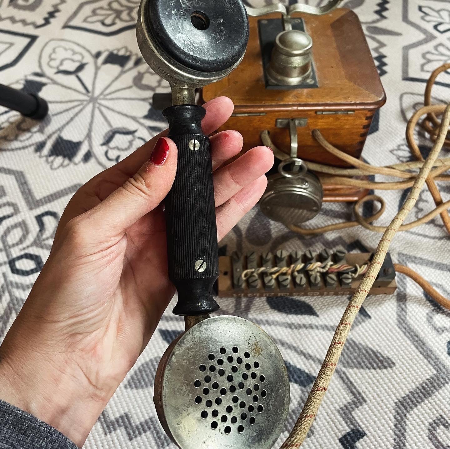 You ask us and we will get them for you ... here is the original antique telephone from the 1920s of French production, complete with handset and listener. In wood, iron and Bakelite; very good condition, intact crank. The listener and the handset are marked with the code and with the words "proprieté de l'Etat Paris". Splendid piece for collectors.