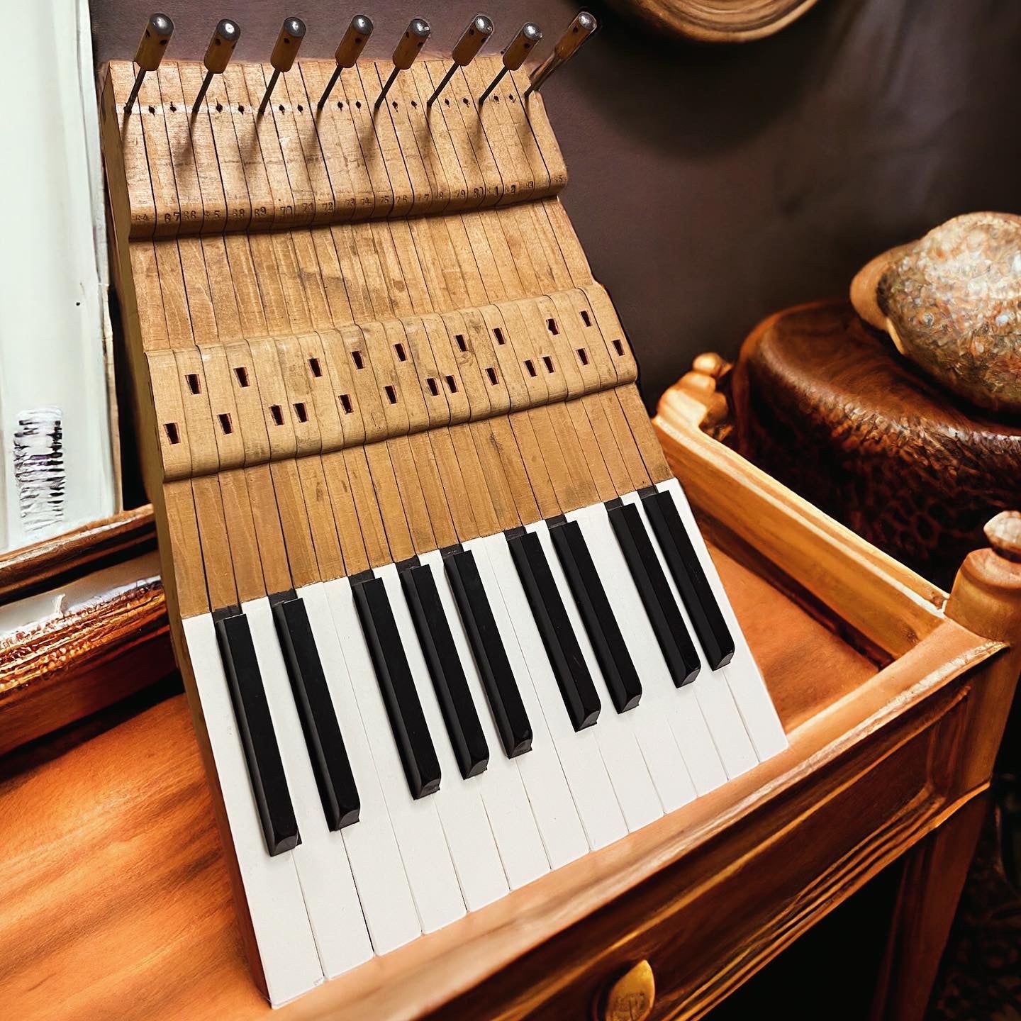 Furnishing is a passion ... as passion is music! And if you love it too, this absolutely exclusive coat hanger, a unique piece, made with the keys of an old piano, cannot be missing from your home. It is in excellent condition except for a small chip on the right corner (last photo); a wonderful gift for a musician and a surprising solution for a client if you are an Interior designer. Dimensions: 42 × 29 cm.