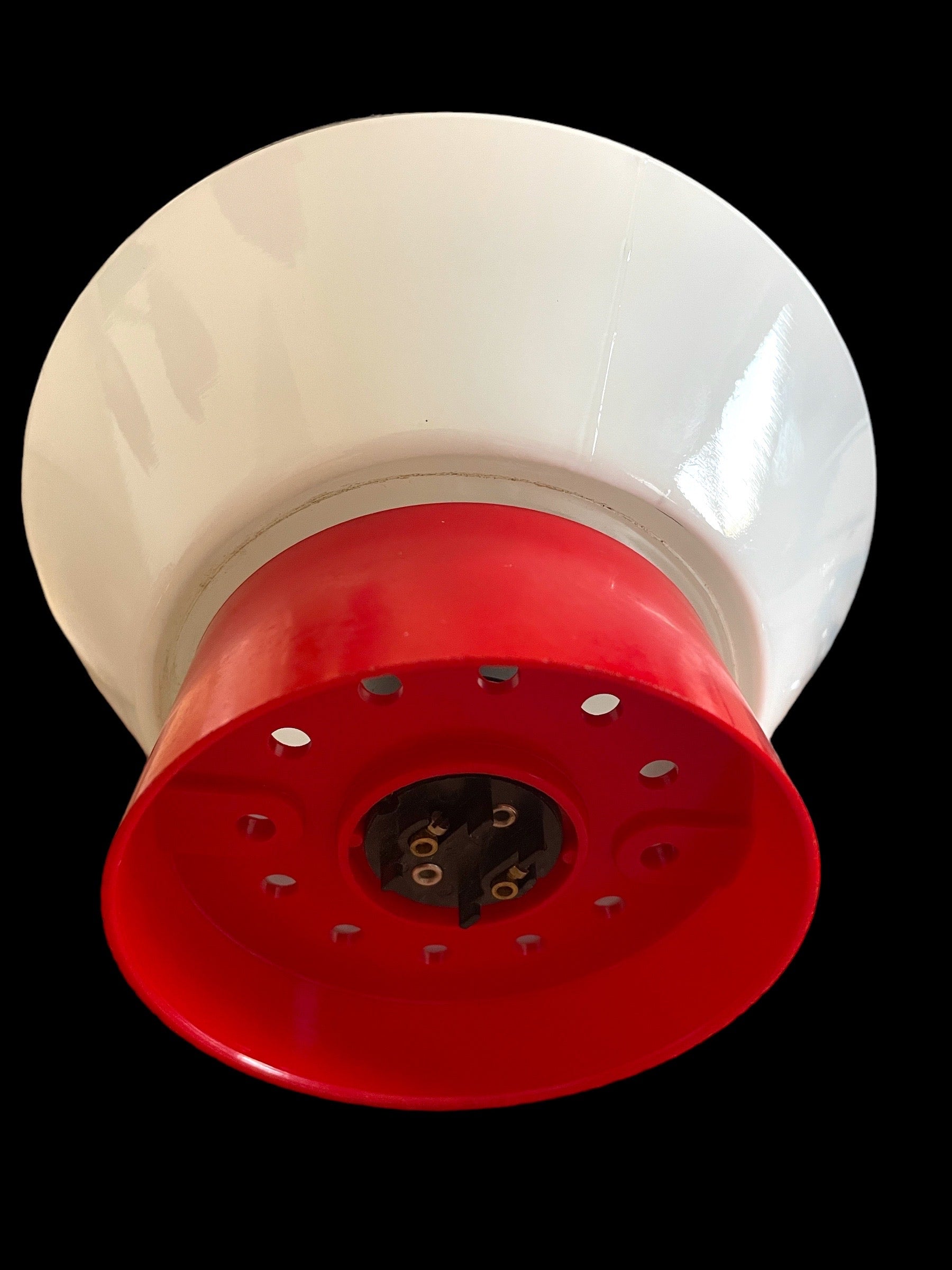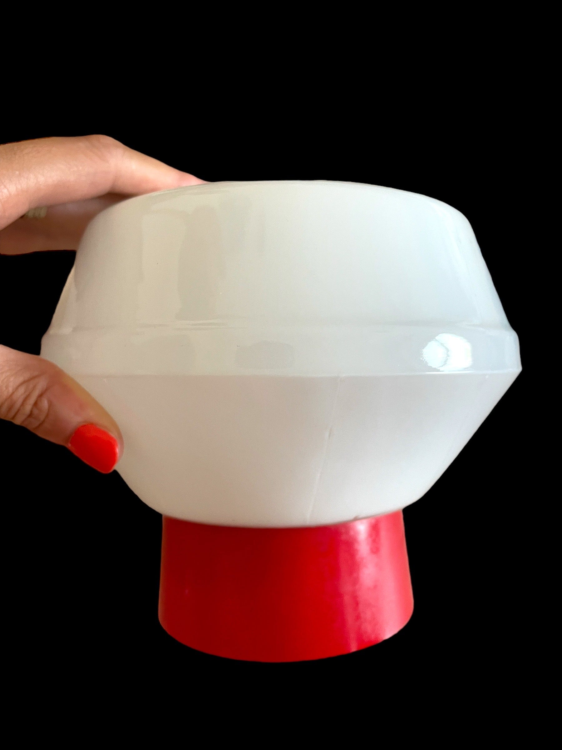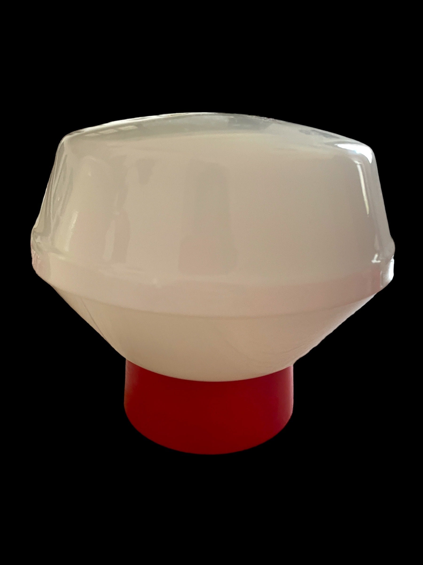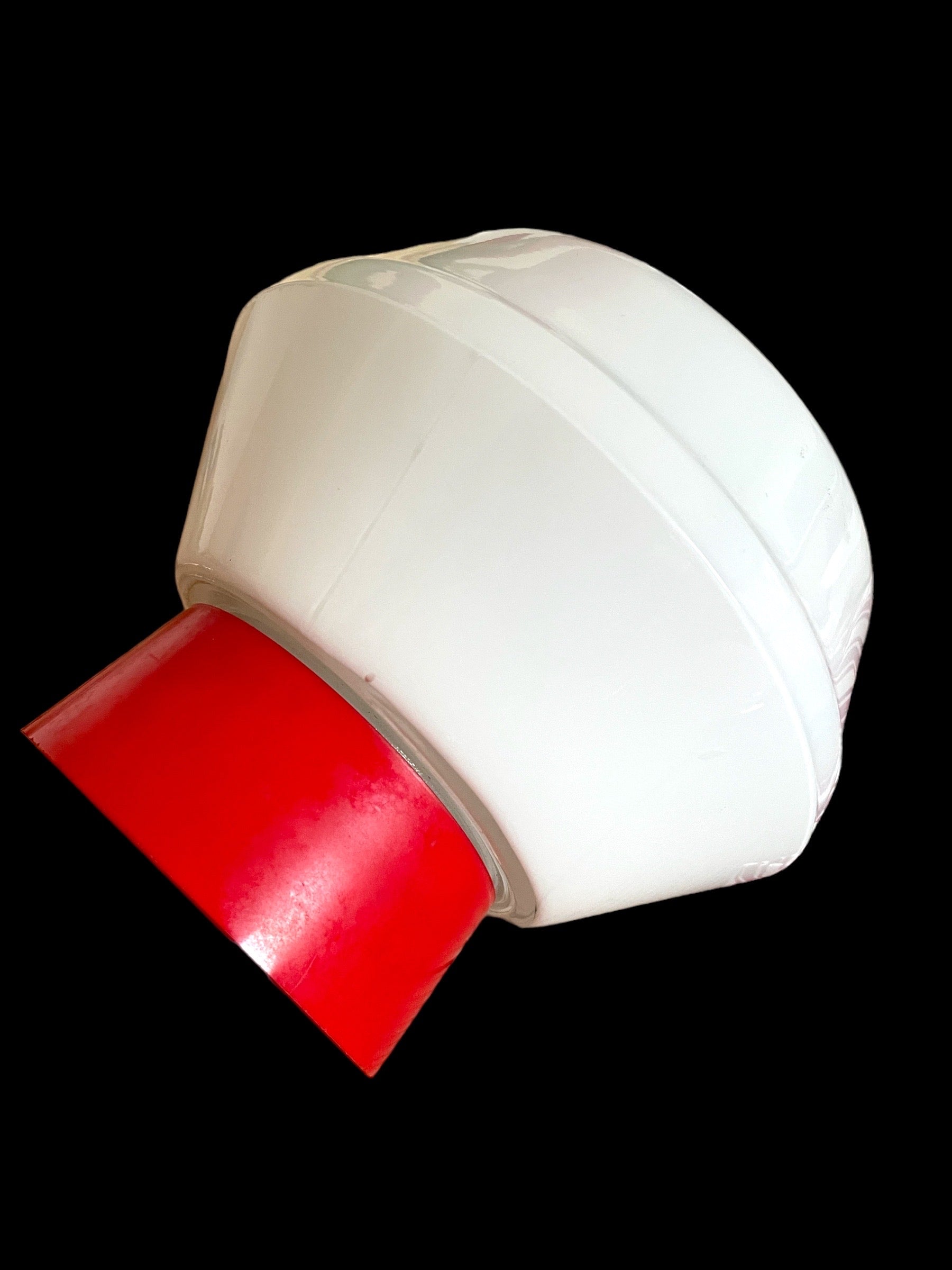 #wall lamp #spaceage #70s with red base and white glass; height 15 cm diameter 19 cm, small halo on the glass. Can also be used as a table lamp.