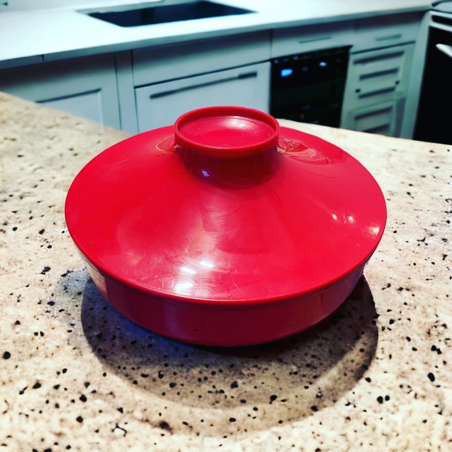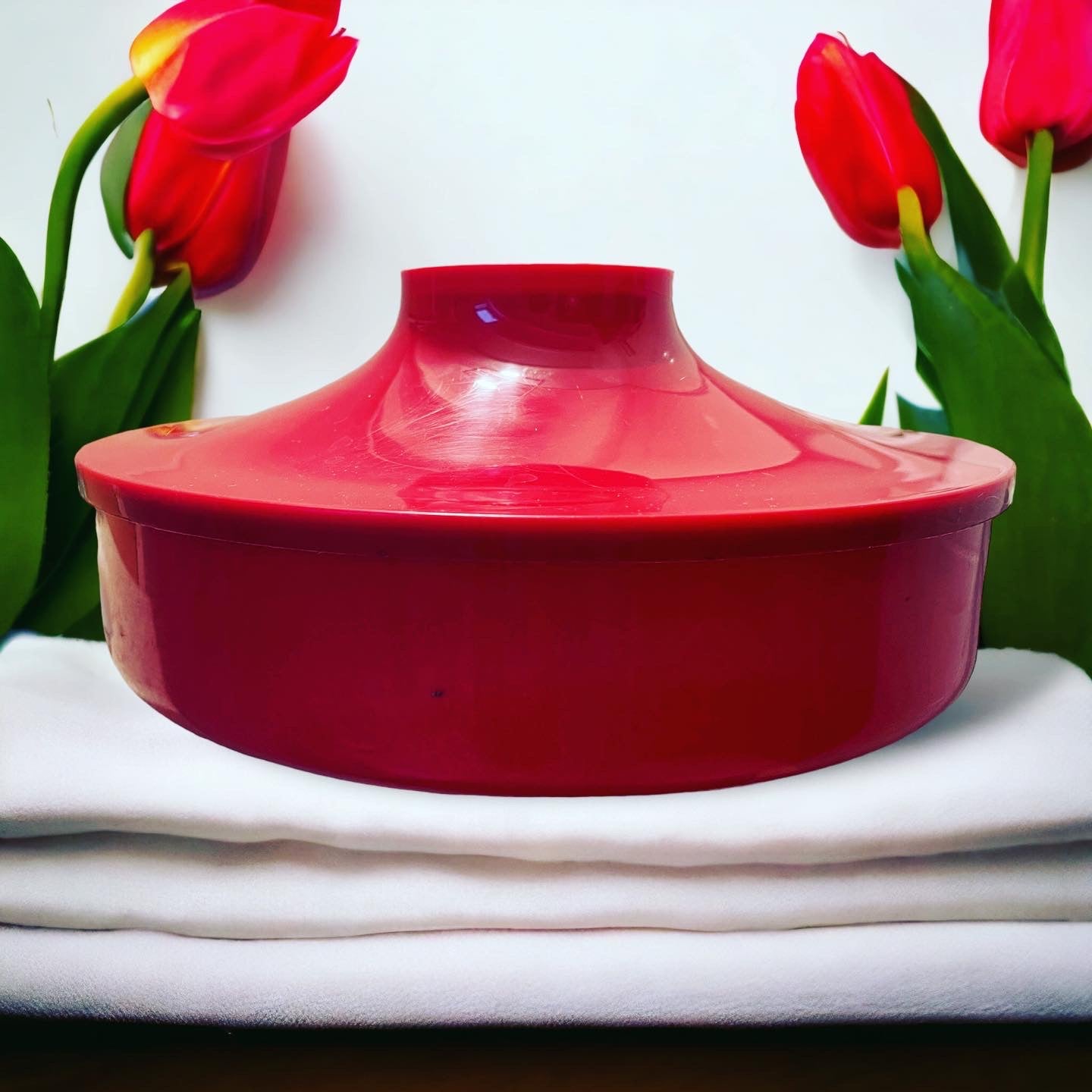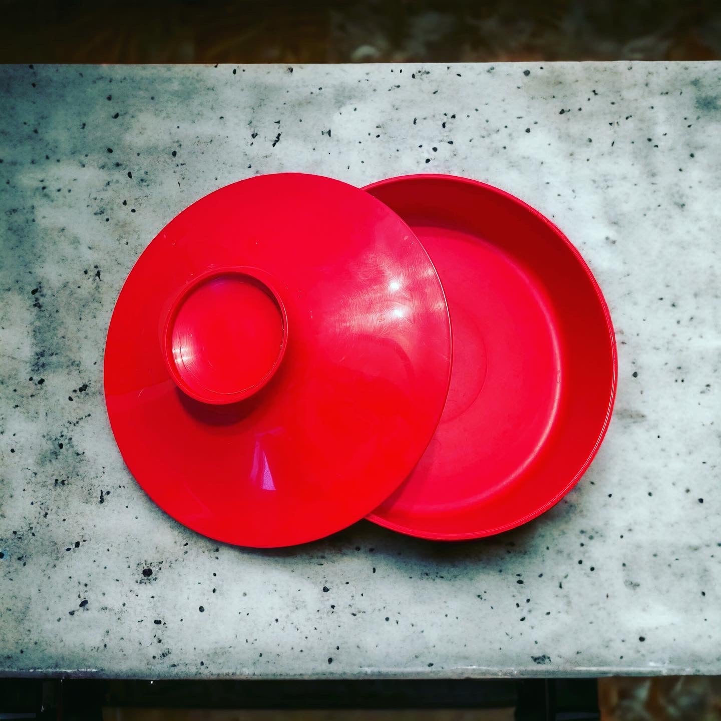 Red like red love… the #biscuit maker in #plexi #design by #luigimassoni for #guzzini ; pure #70s. It was called the #biscuitmakerufo ! Not by chance given the head-spinning #spaceage 😁 a #musthave in the kitchen if the #seventies are your years and your colors. A piece of #italiandesign with great character. Diameter: 26 cm.