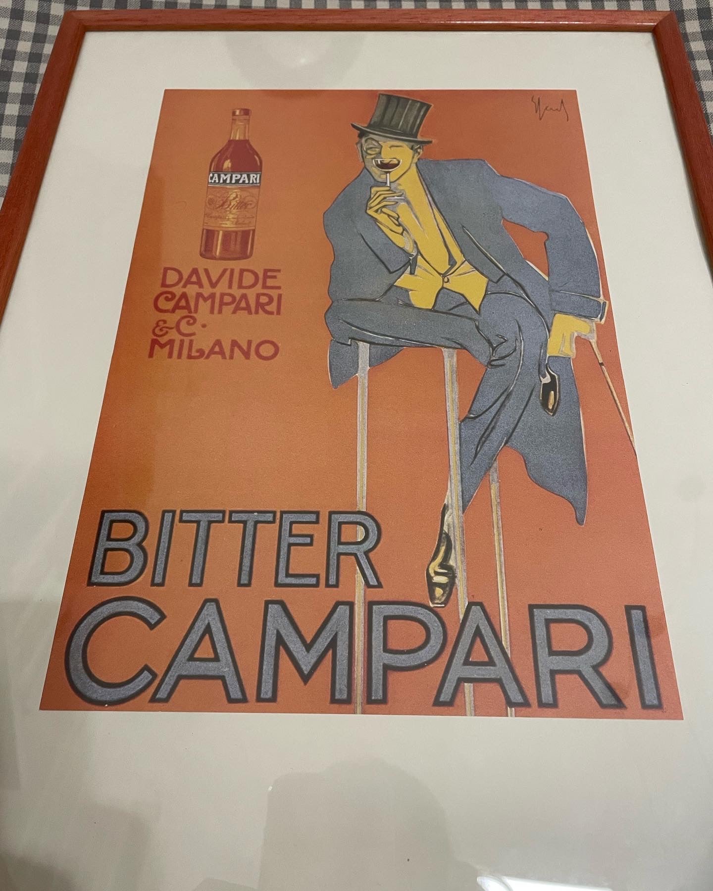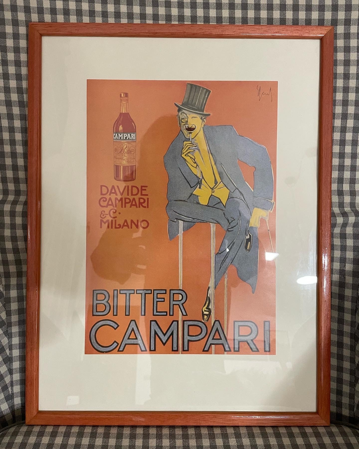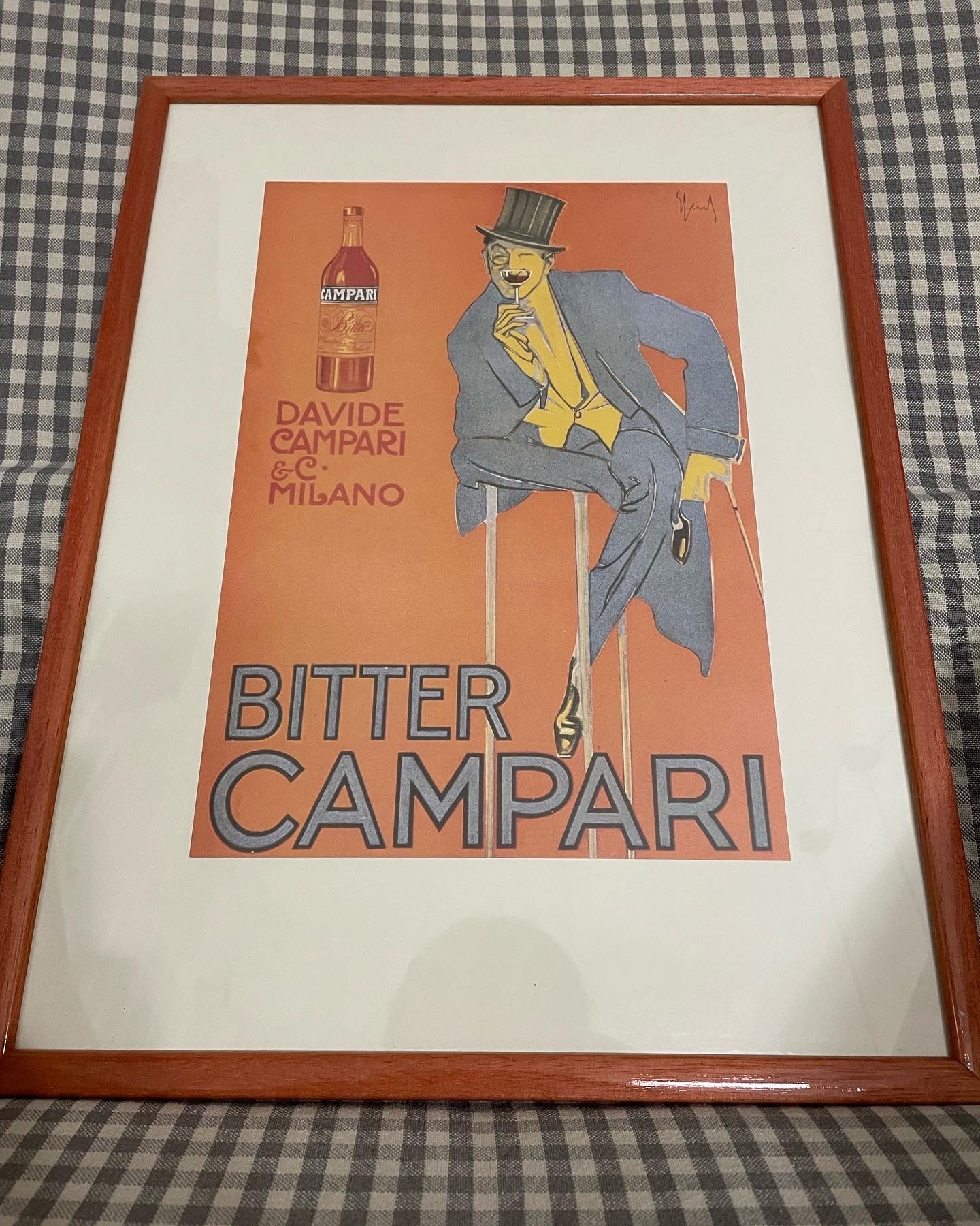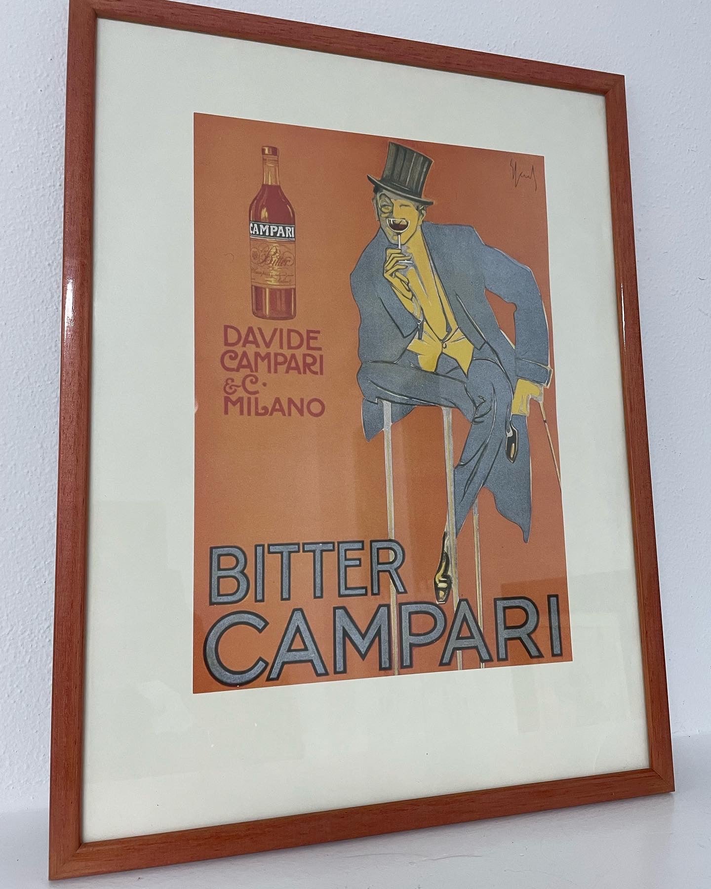 In the name of #bitter #campari with this #advertisingpicture with the famous #vintageadvertisement #davidecampari with tone-on-tone frame and glass. Dimensions 42 x 32 cm