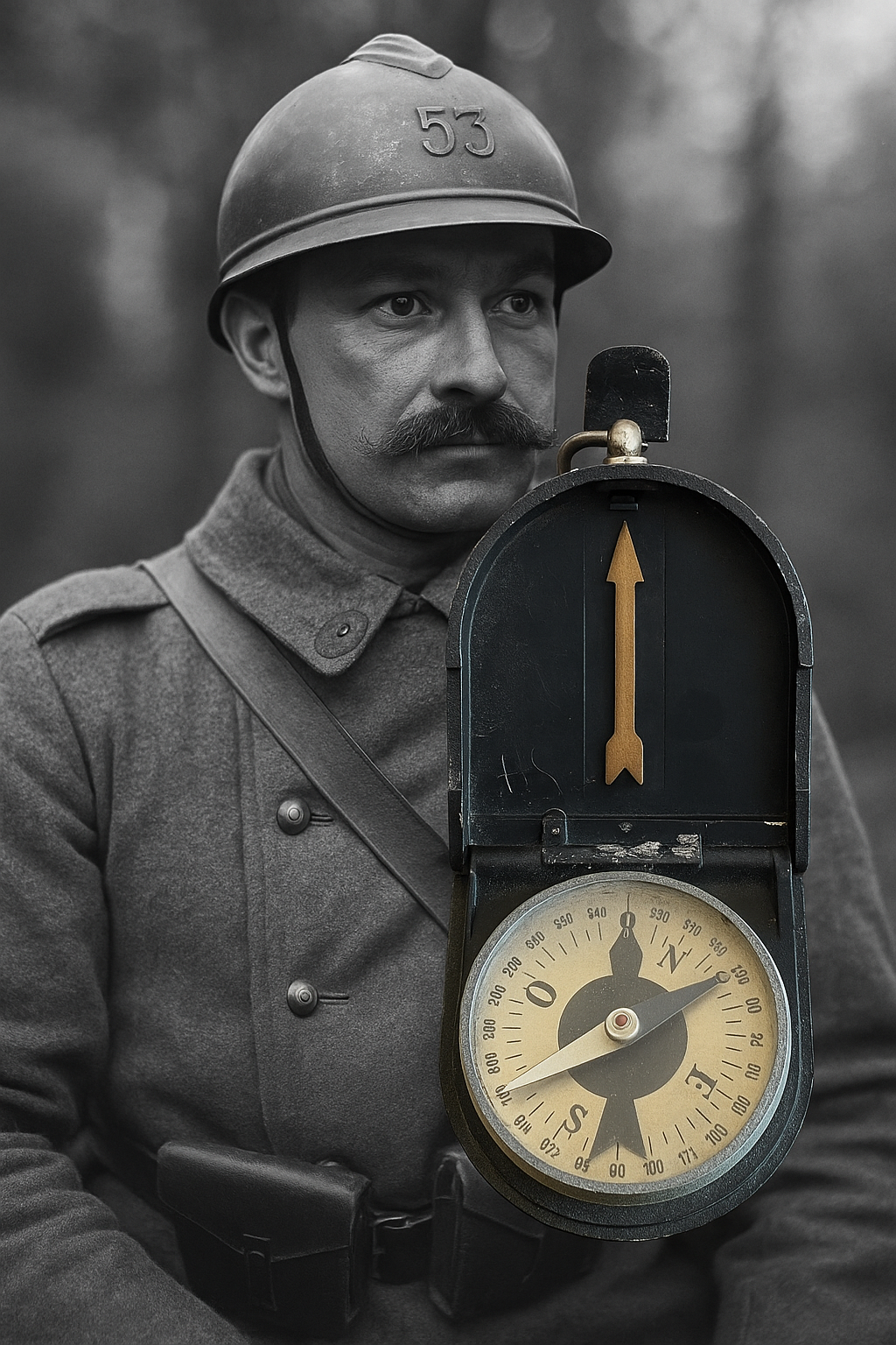 Parigi, 1922. Era la bussola affidata al giovane soldato francese Marcel Giraud, che l’aveva sempre appesa alla giubba durante le marce di addestramento e le lunghe notti di pattuglia. Aprendola, il quadrante rivelava la via, ma soprattutto gli ricordava che la direzione non era solo un fatto geografico: era un “non perdersi” anche a livello del cuore. Questa bussola Lemaire Paris Modèle 1922, con il suo metallo segnato dal tempo e dal servizio, è un frammento autentico di vita militare francese tra le due guerre. Un oggetto che porta con sé il respiro della Storia e la memoria silenziosa di chi vi affidava i propri passi.