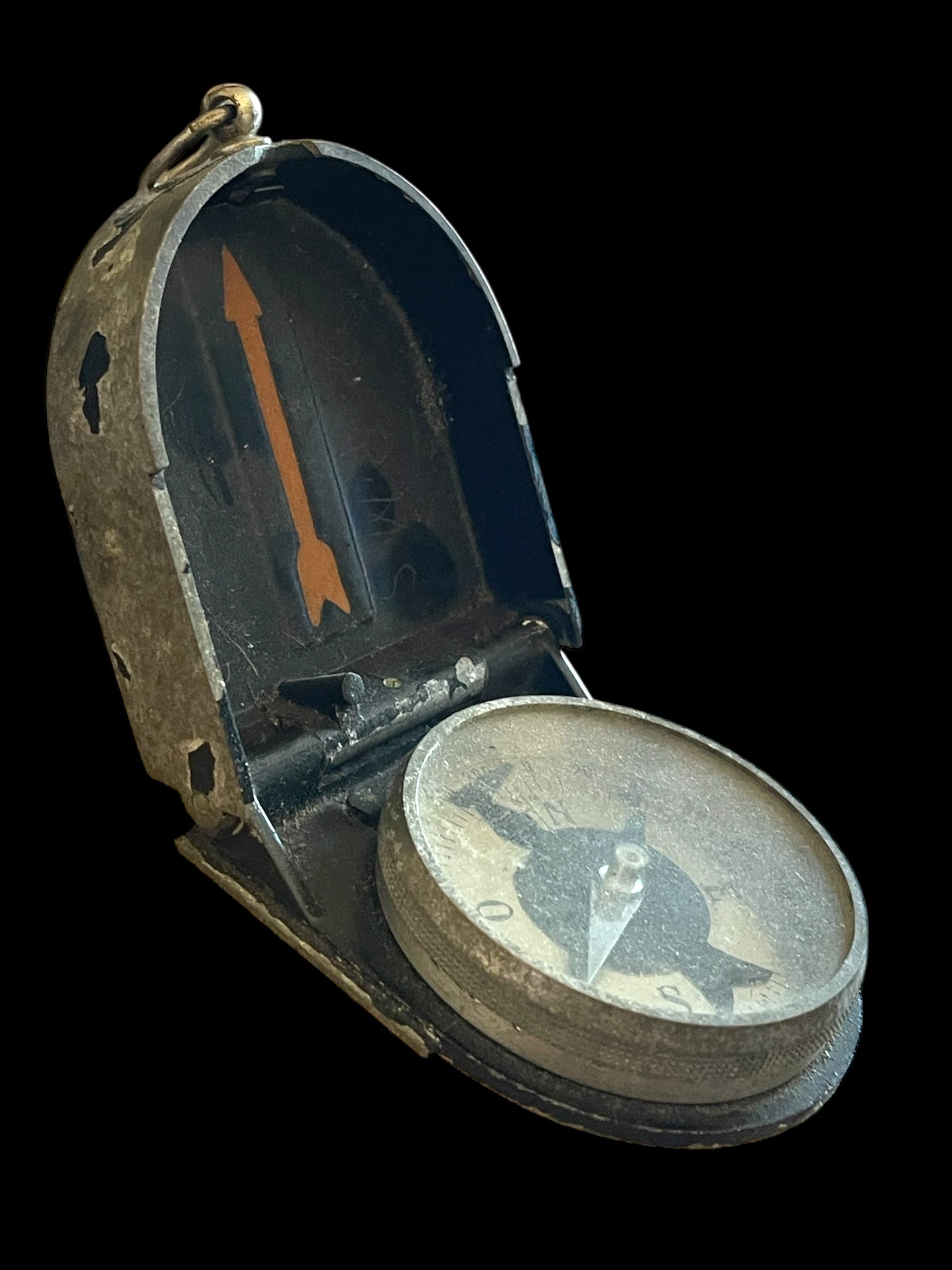 Bussola militare francese pieghevole. Produttore: Lemaire, Paris: Modello: Modèle 1922 (Pattern 1922). Epoca: tra gli anni 1920 e 1940 (dotazione post Prima Guerra Mondiale, in uso fino alla Seconda).