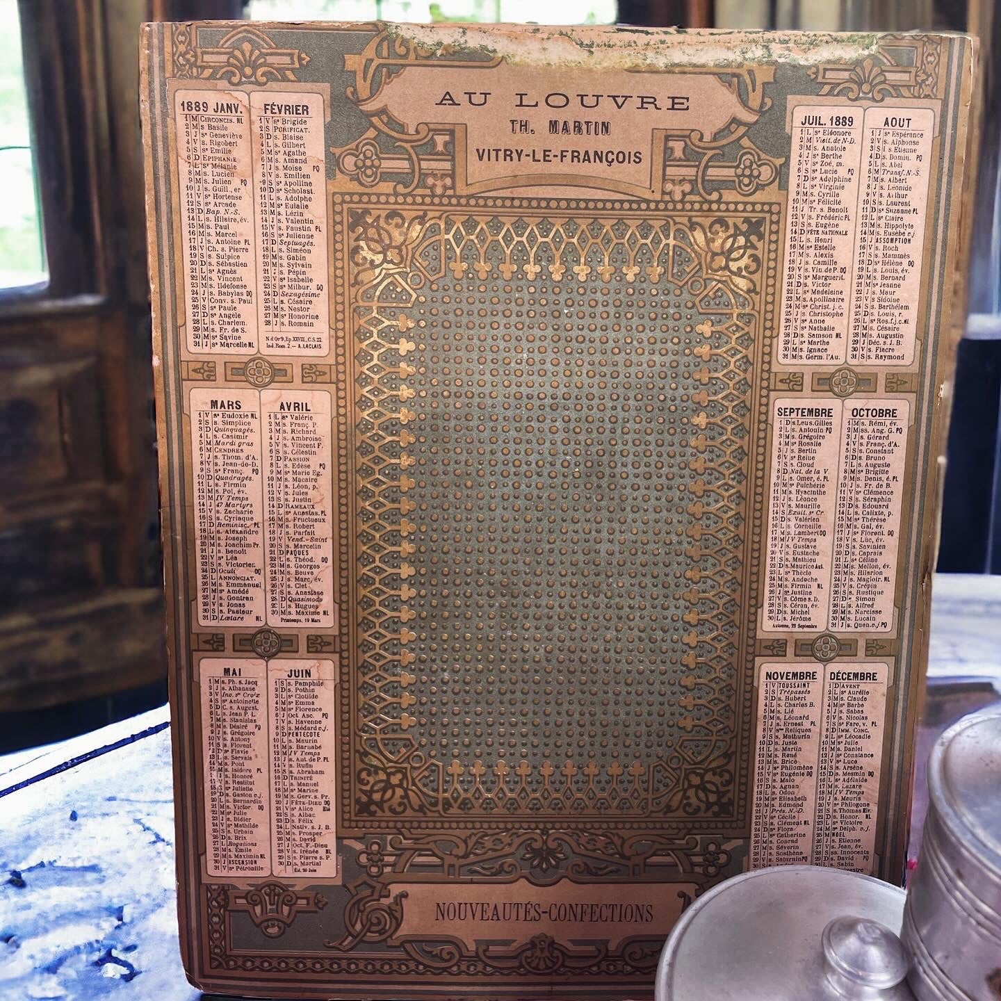 Old cardboard calendar year 1889 printed by a French textile factory with art nouveau decorations