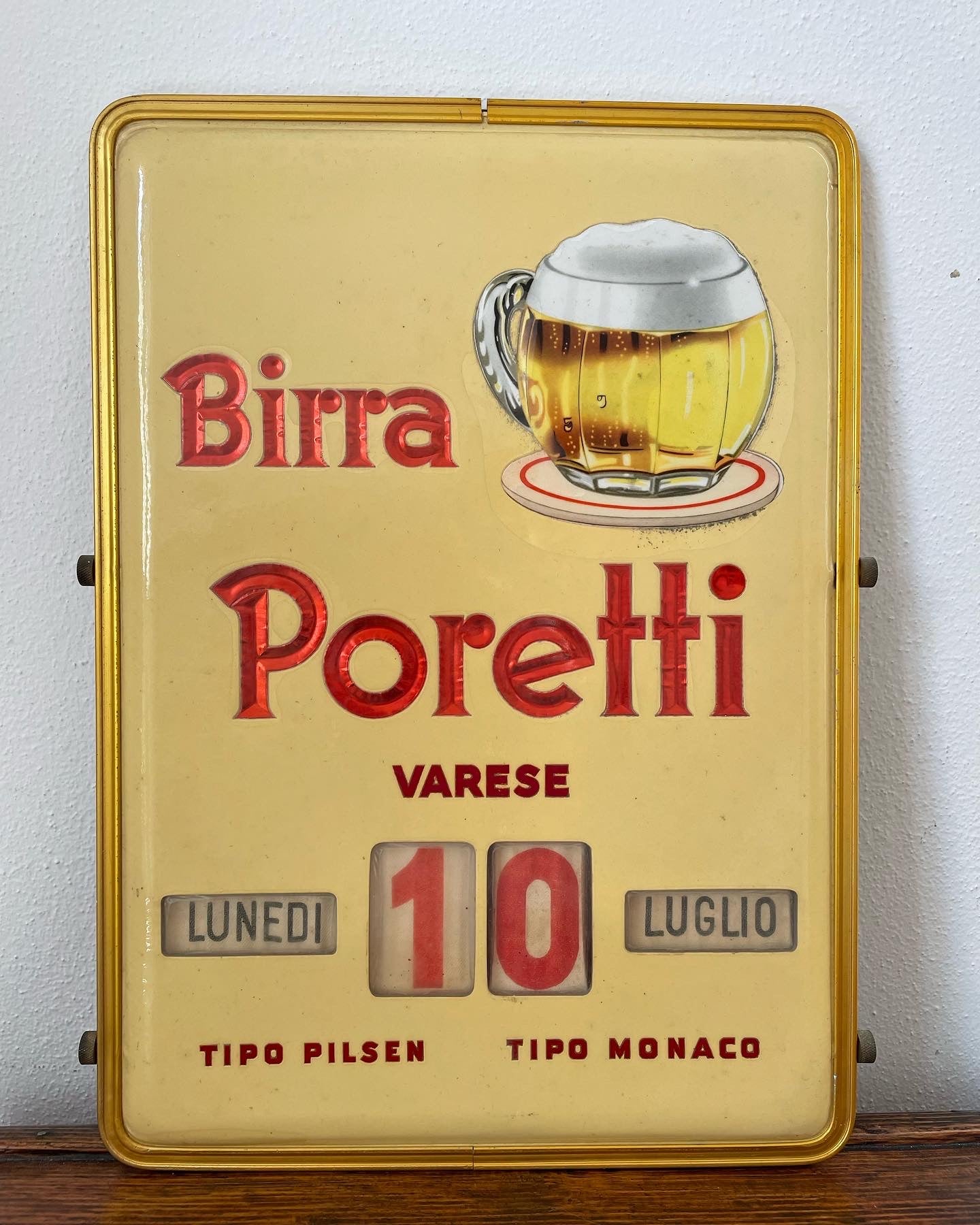 Sunday challenge: does anyone have the same one? Because this adjustable metal and plastic calendar from #birraporetti is #extremely rare… a piece of history still with the #stampmarks from #1955. An absolutely unobtainable piece of #advertisingcollecting… day, date and month are adjustable using the iron wheels on the sides. Measurements 34.5 x 25.5