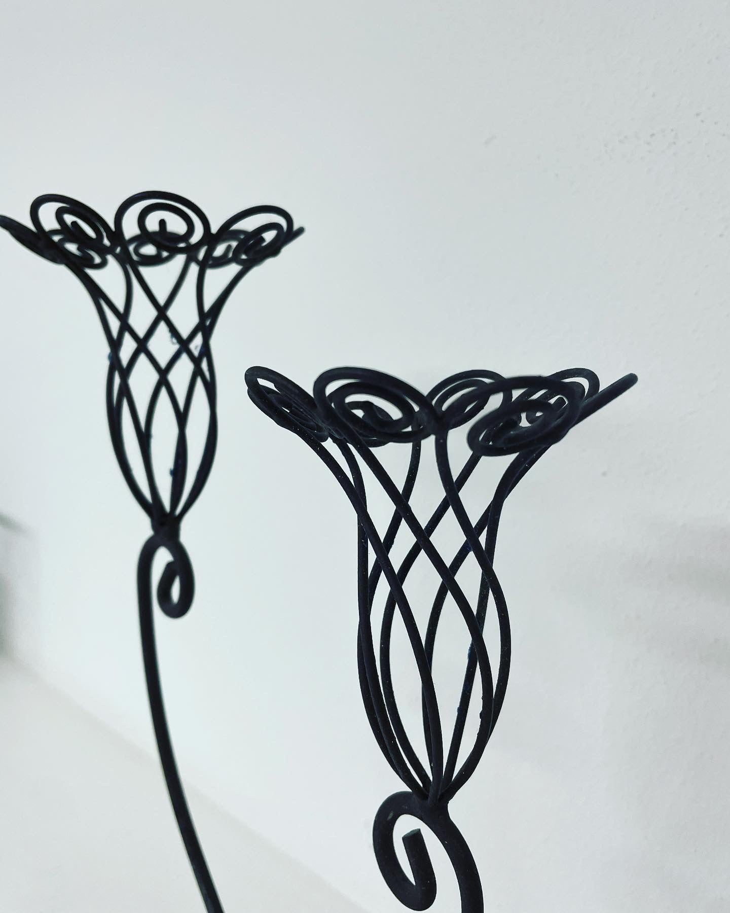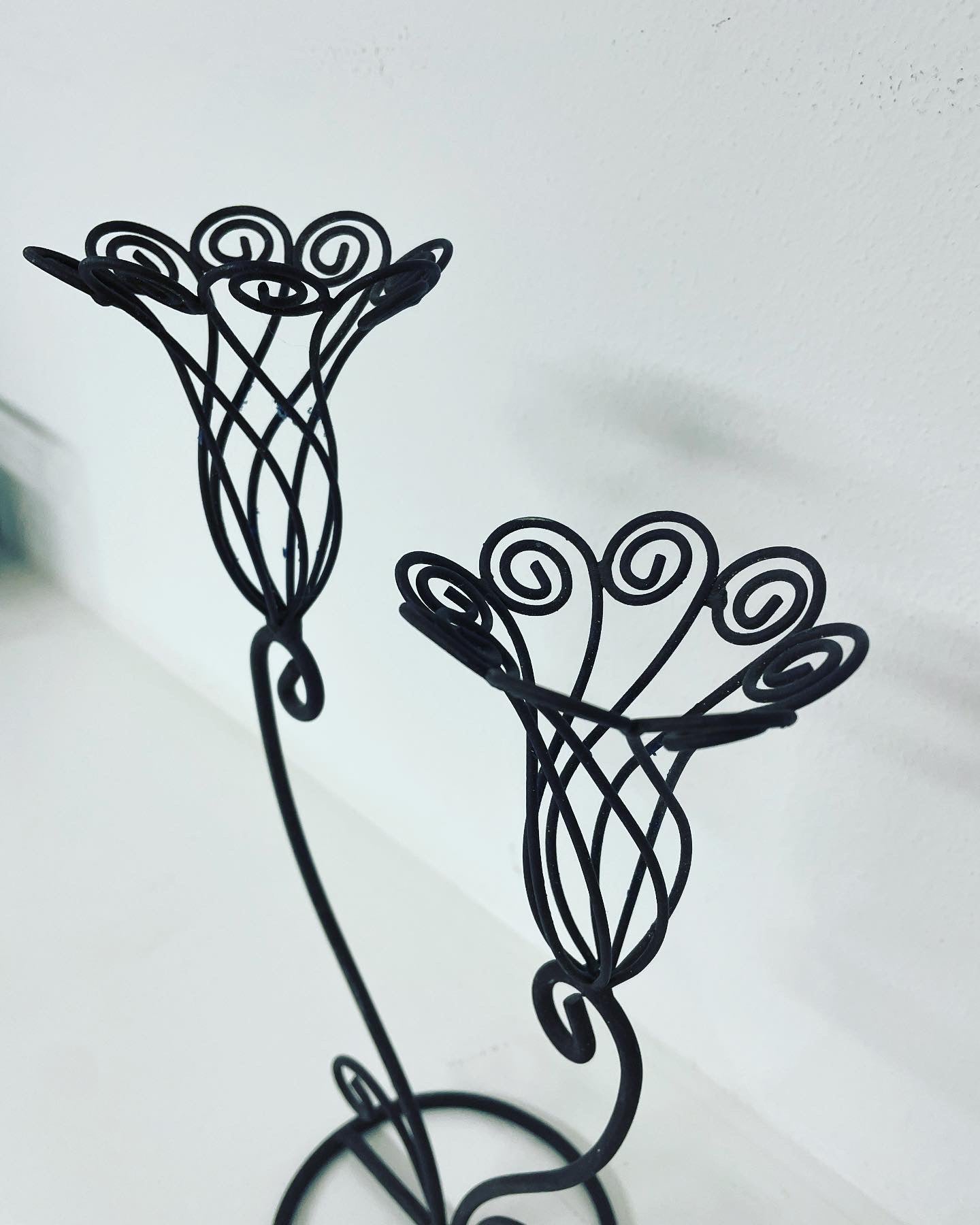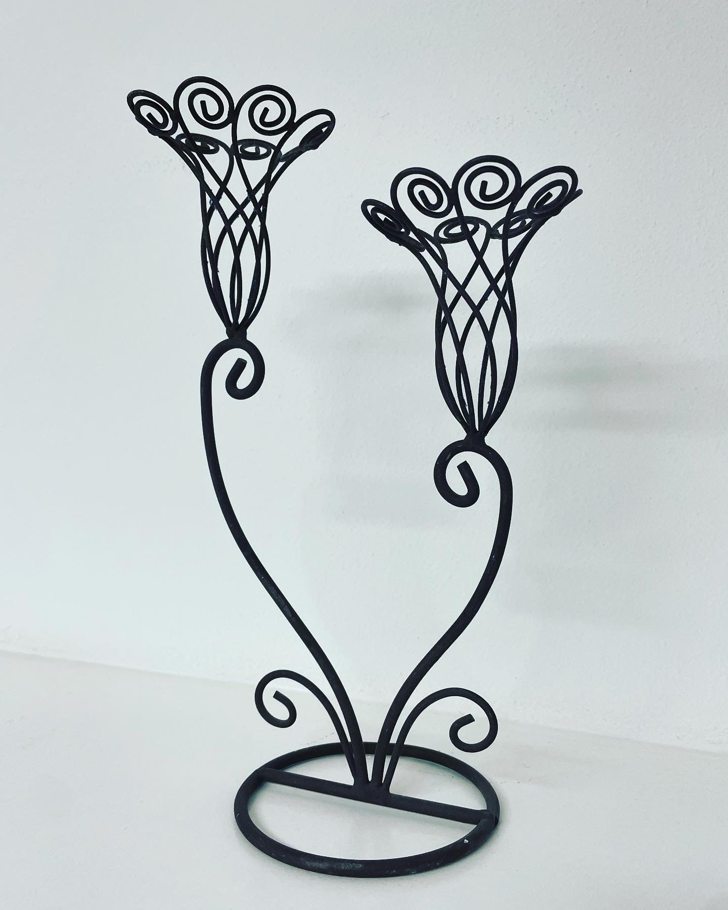 Elegant and refined this #antique #candelabra with floral motif in #wrought iron, two arms, height 32 cm.