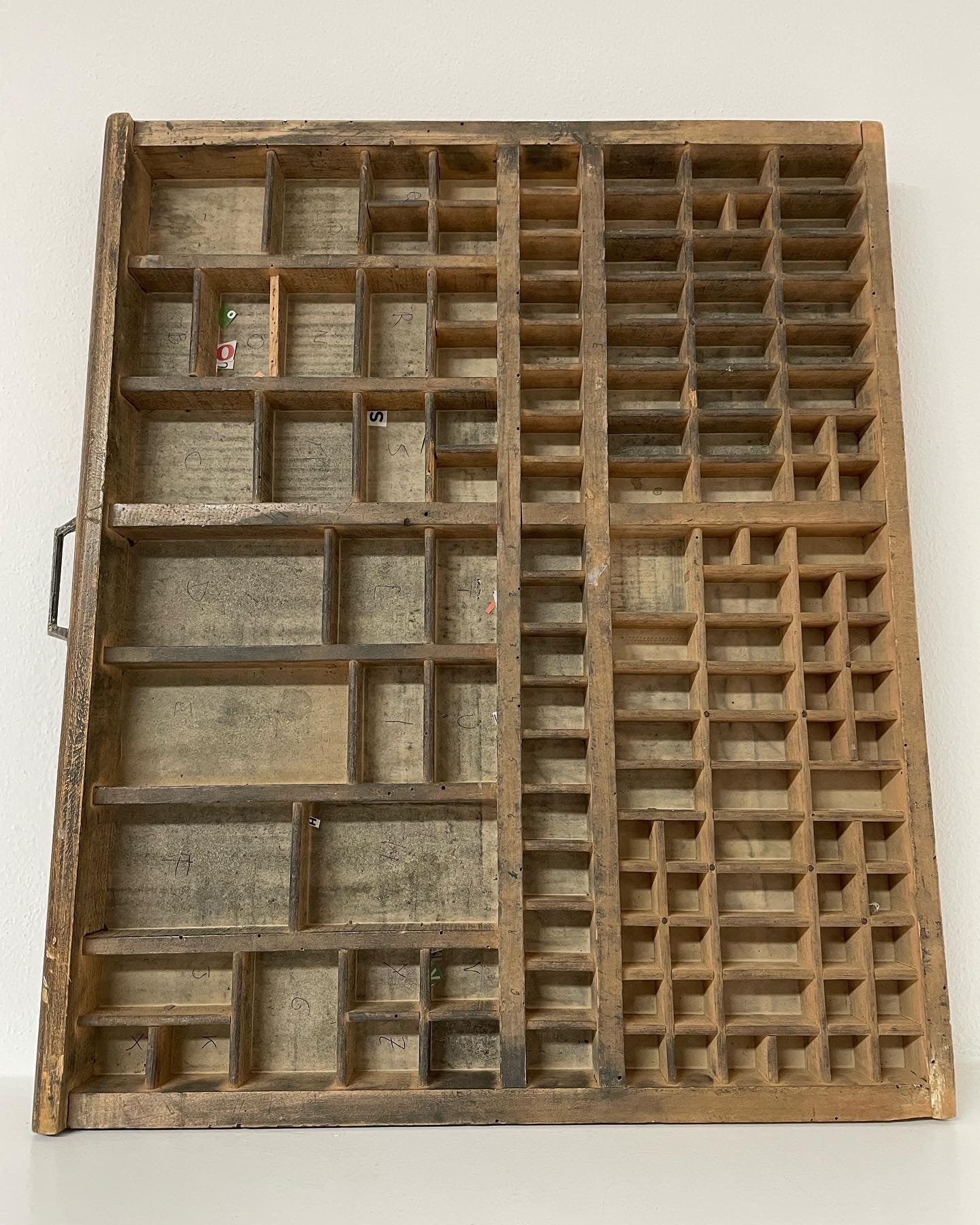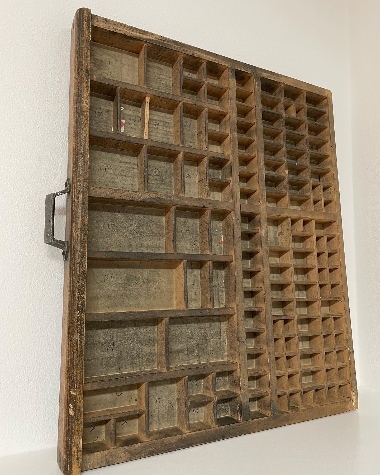 This evening we are going to #recyclecreative with this large and #ancient #printmaker's #drawer that can be hung on the wall and used as a notice board... inside the various spaces that were used to store the #typographicalcharacters there are small curiosities, candles, dried flowers, small collections in pure #cabinetdescuriosites style. There is also the splendid handle!! Dimensions 60 x 30 cm