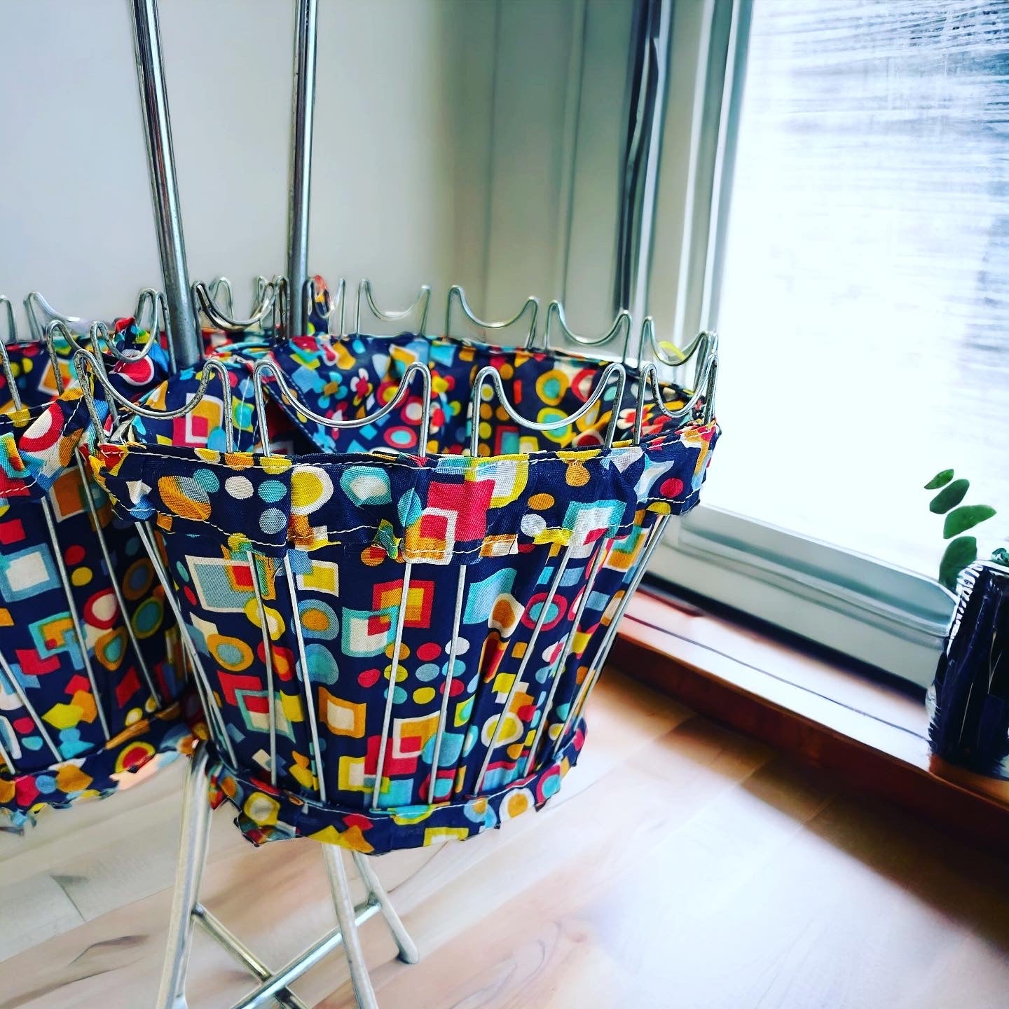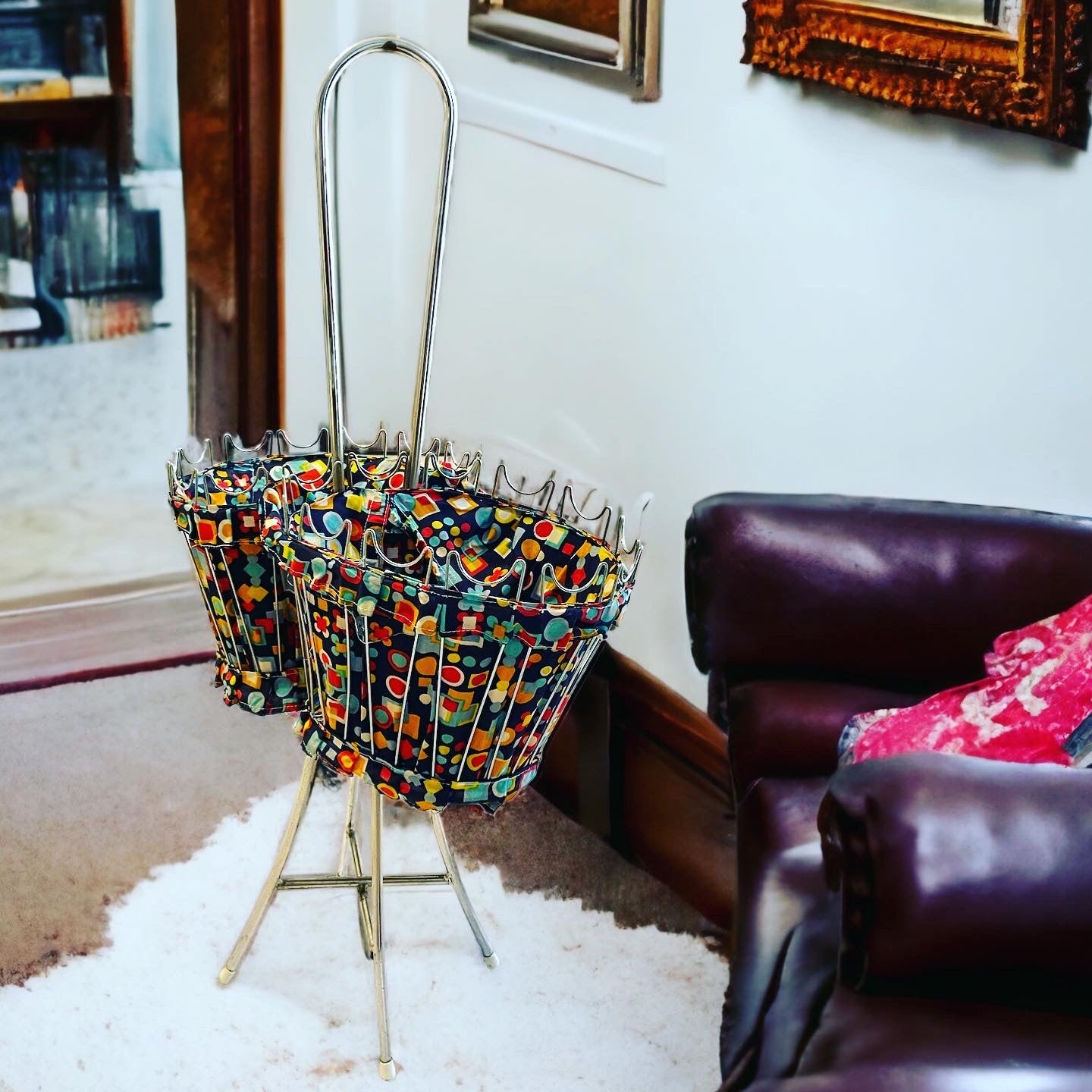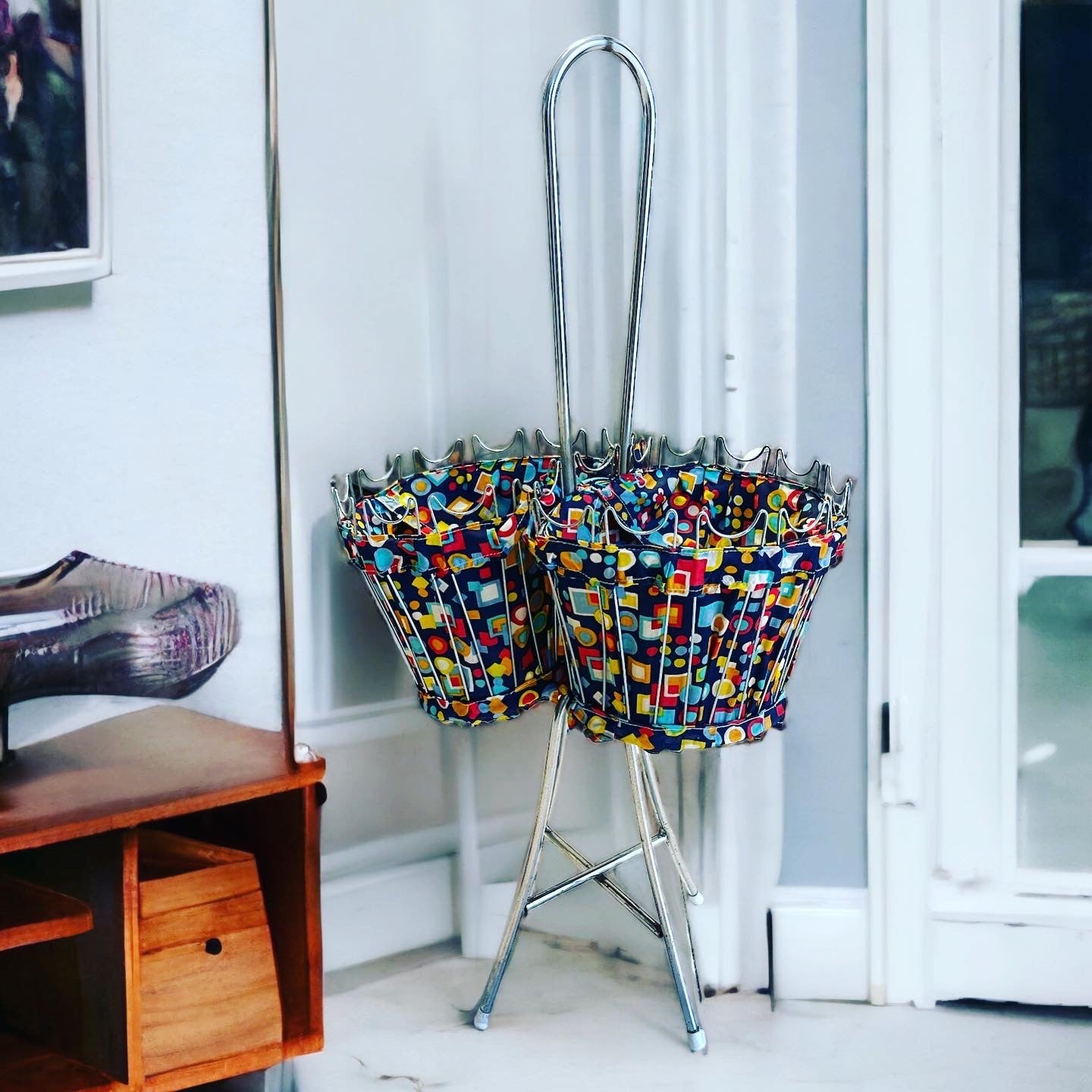So… this for me is unmissable: the super #60s #evening gem… the #sewingbasket in steel and fabric, 75 cm high, an element of #vintagefurniture super #psychedelic in its pattern and colors, Woodstock move over 😘