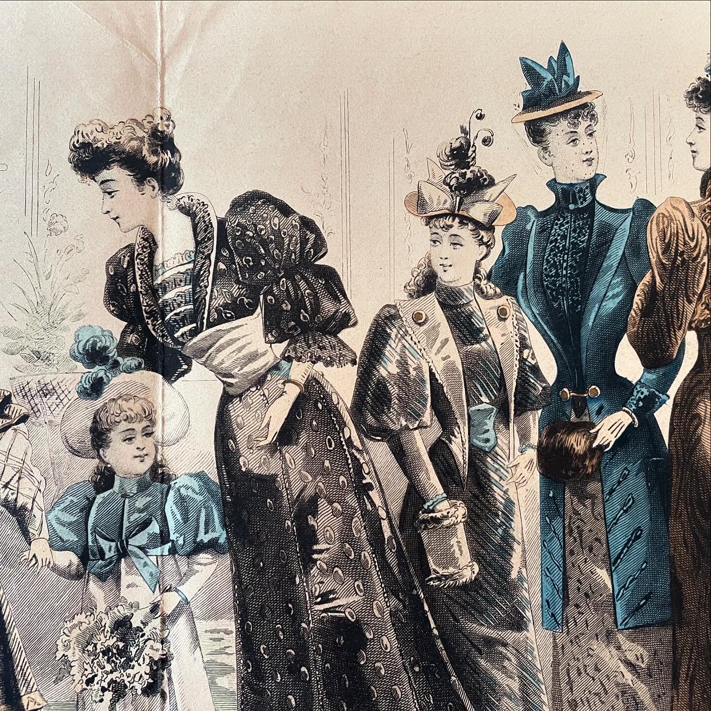 Large antique millinery print 1800