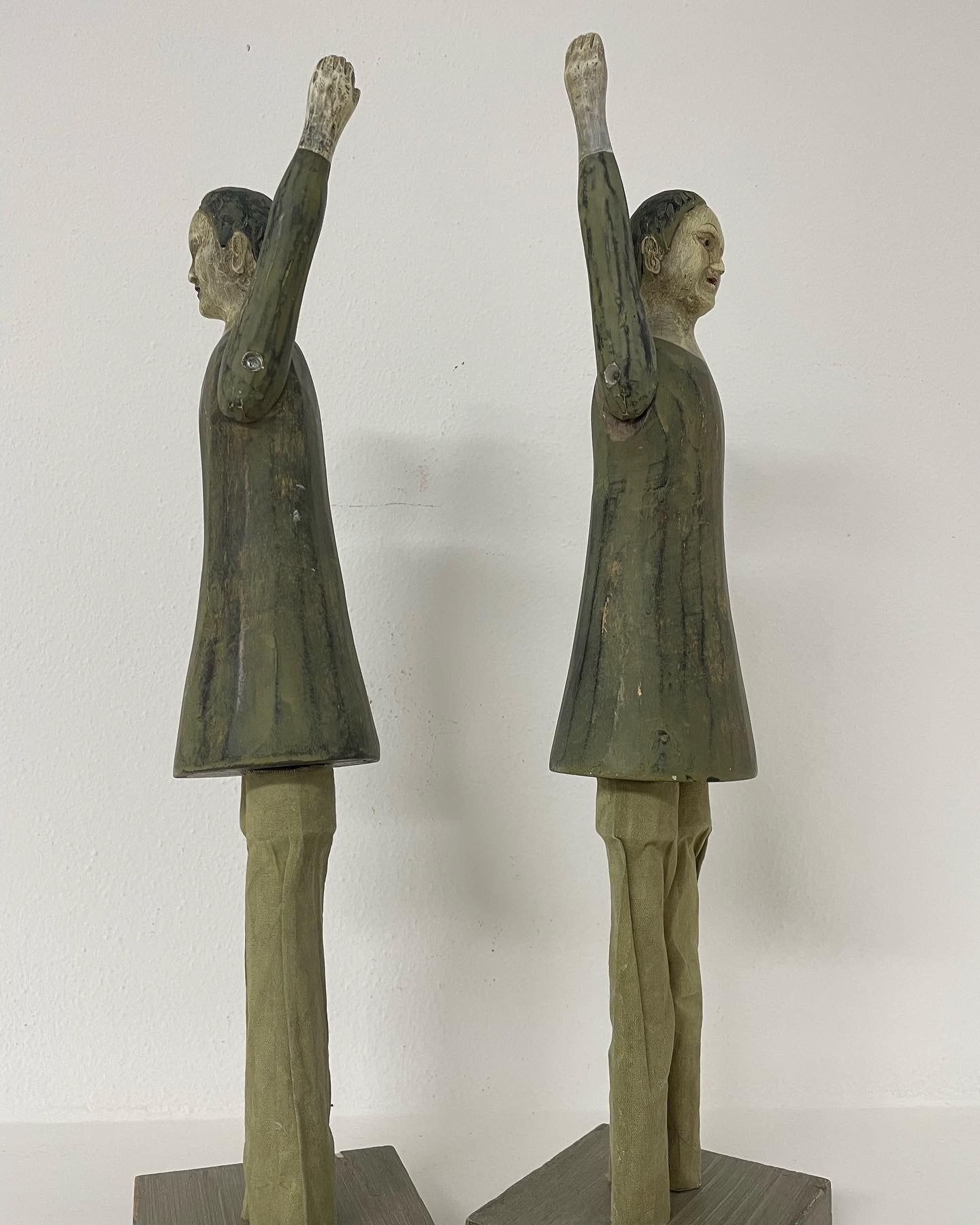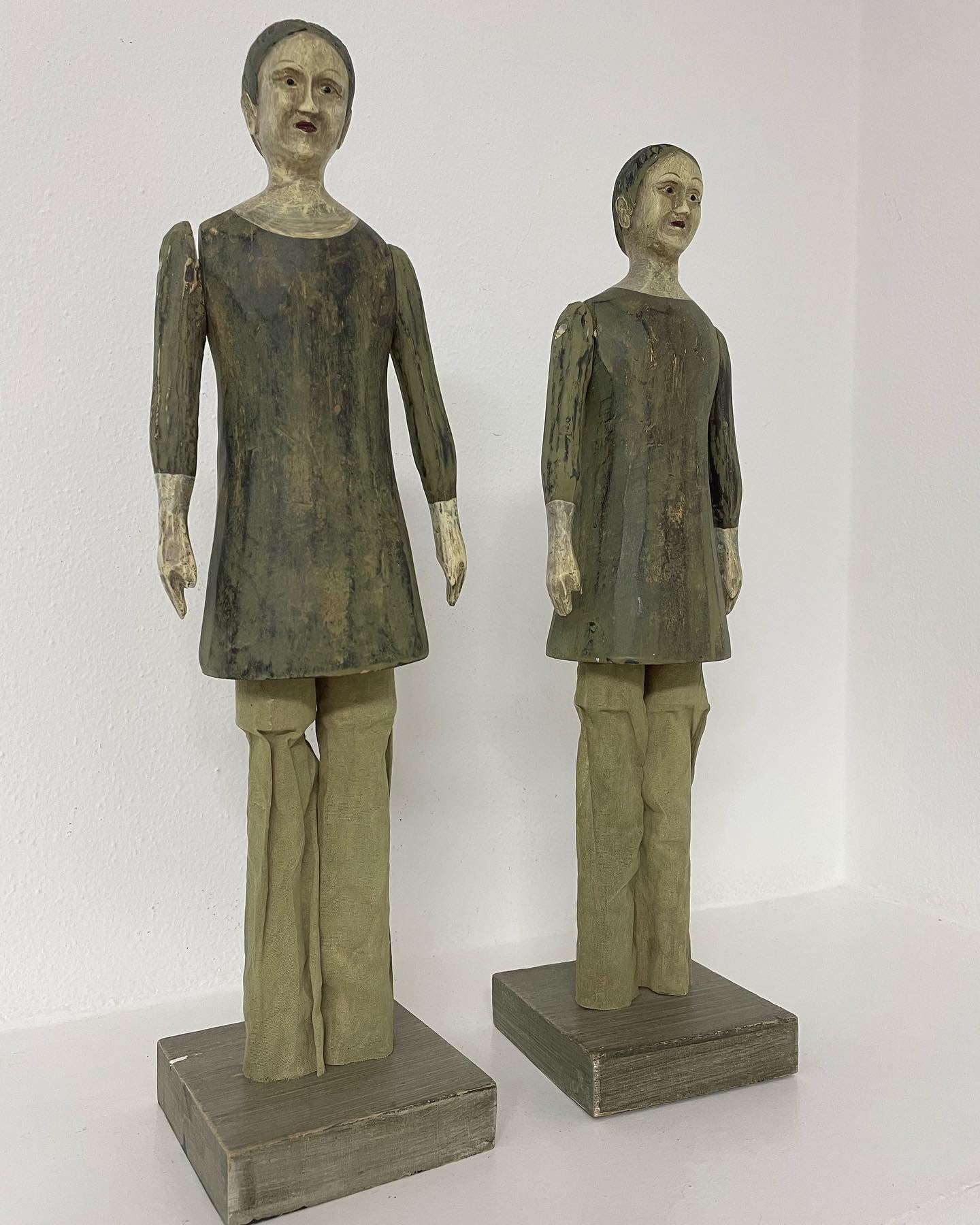 These are very curious and I found them in Sweden. Pair of #old #wooden #dolls 40 cm high with movable arms, the legs are covered in fabric. They are not ancient but #vintage, they are truly #curious objects super #brocante that I personally see very well in a #dimoradicharme of #armosferaromantica.