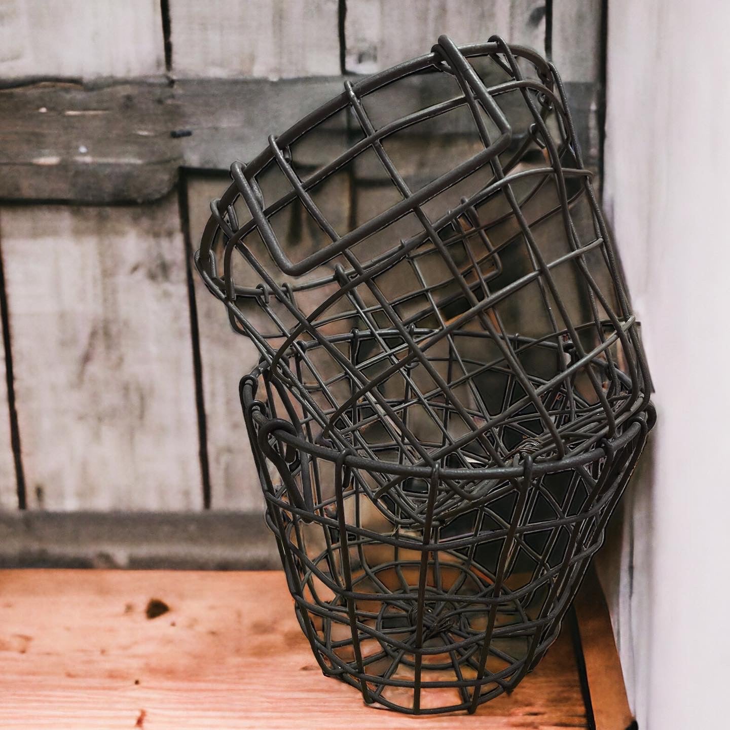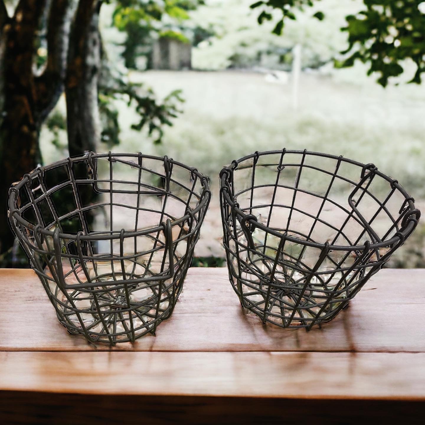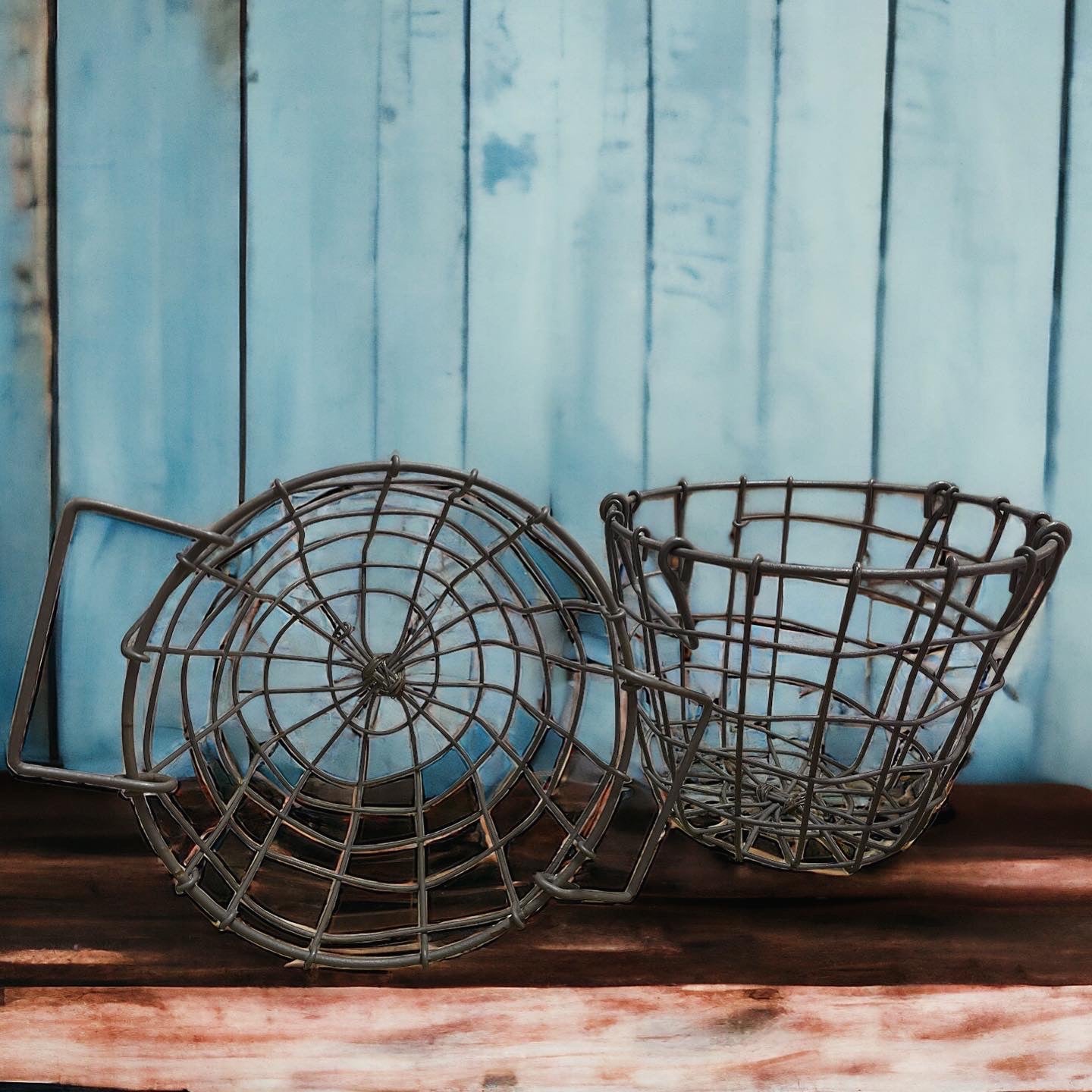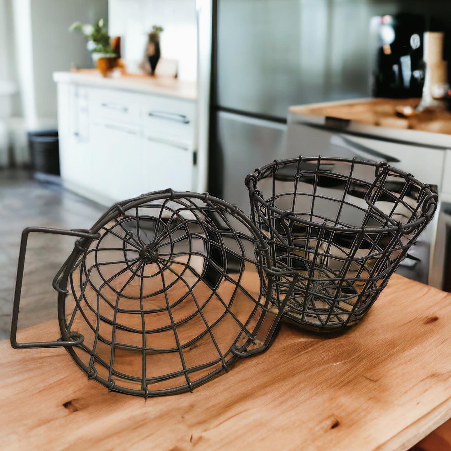 Set of 2 antique iron baskets for eggs or vegetables, the handles can be raised or lowered. They are of French origin, when people actually went to the farms early in the morning to collect eggs in the henhouse ... The price is for the pair. Beautiful country spirit for your table, versatile objects to interpret 🌺