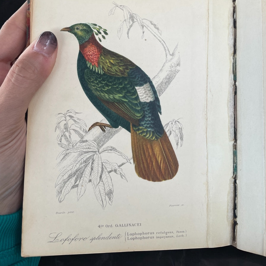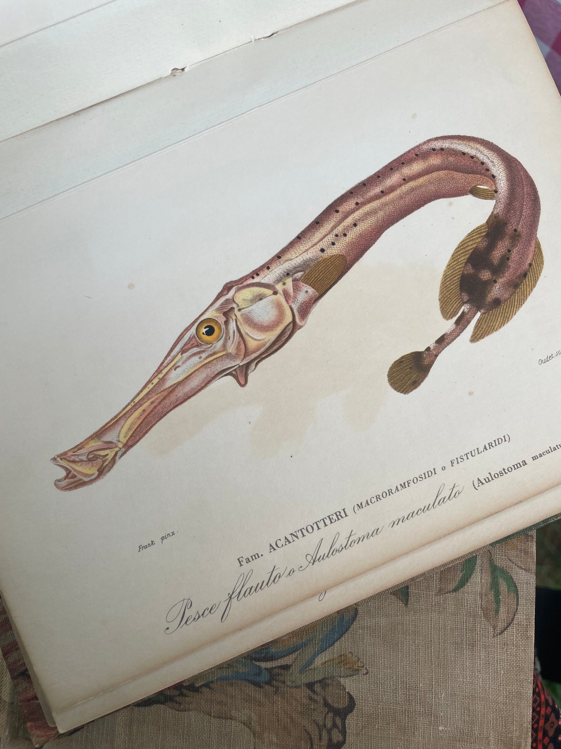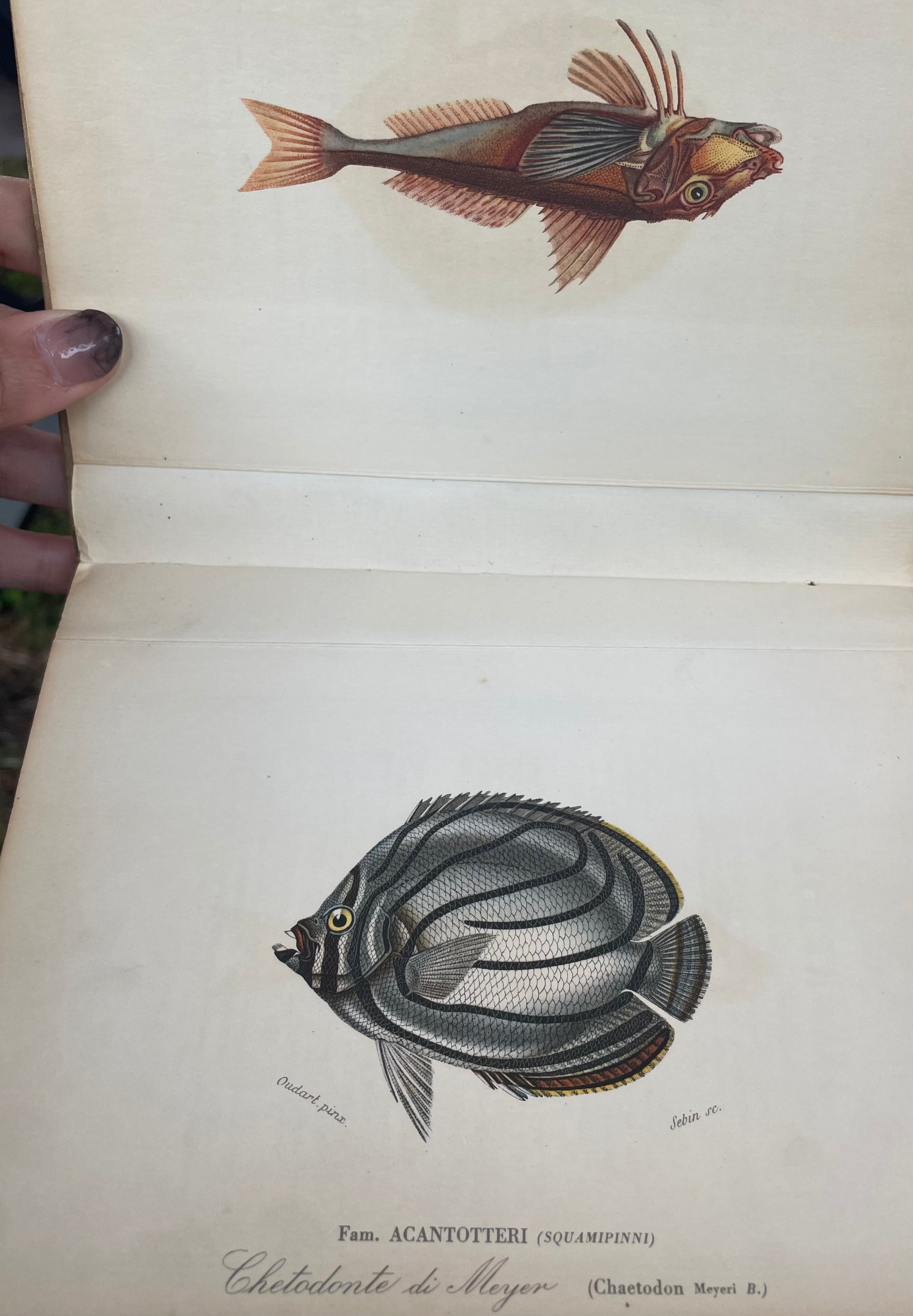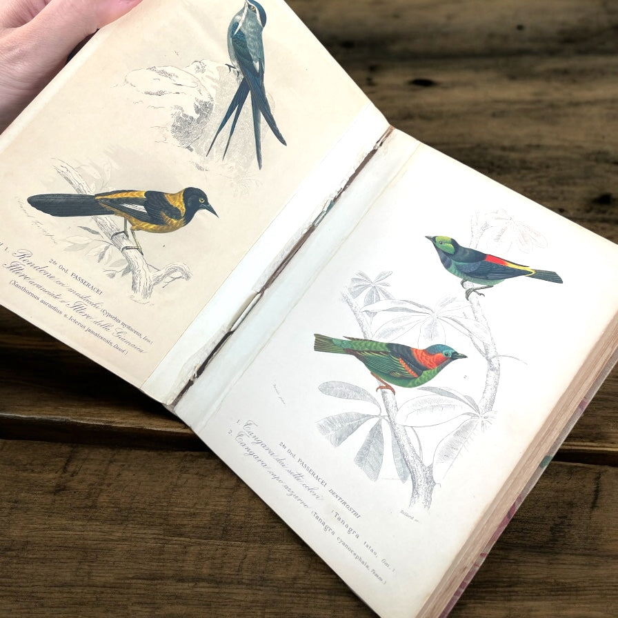 Coppia libri con antiche stampe uccelli e pesci 85 pz