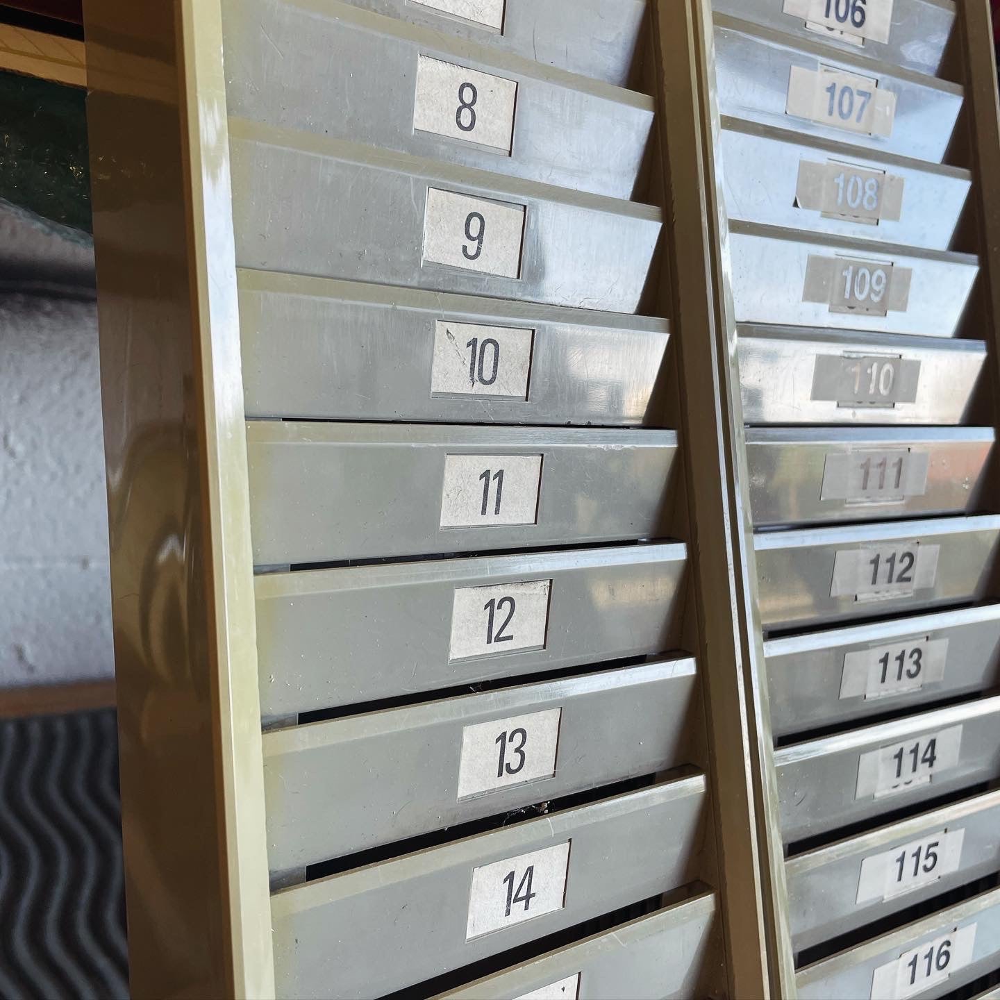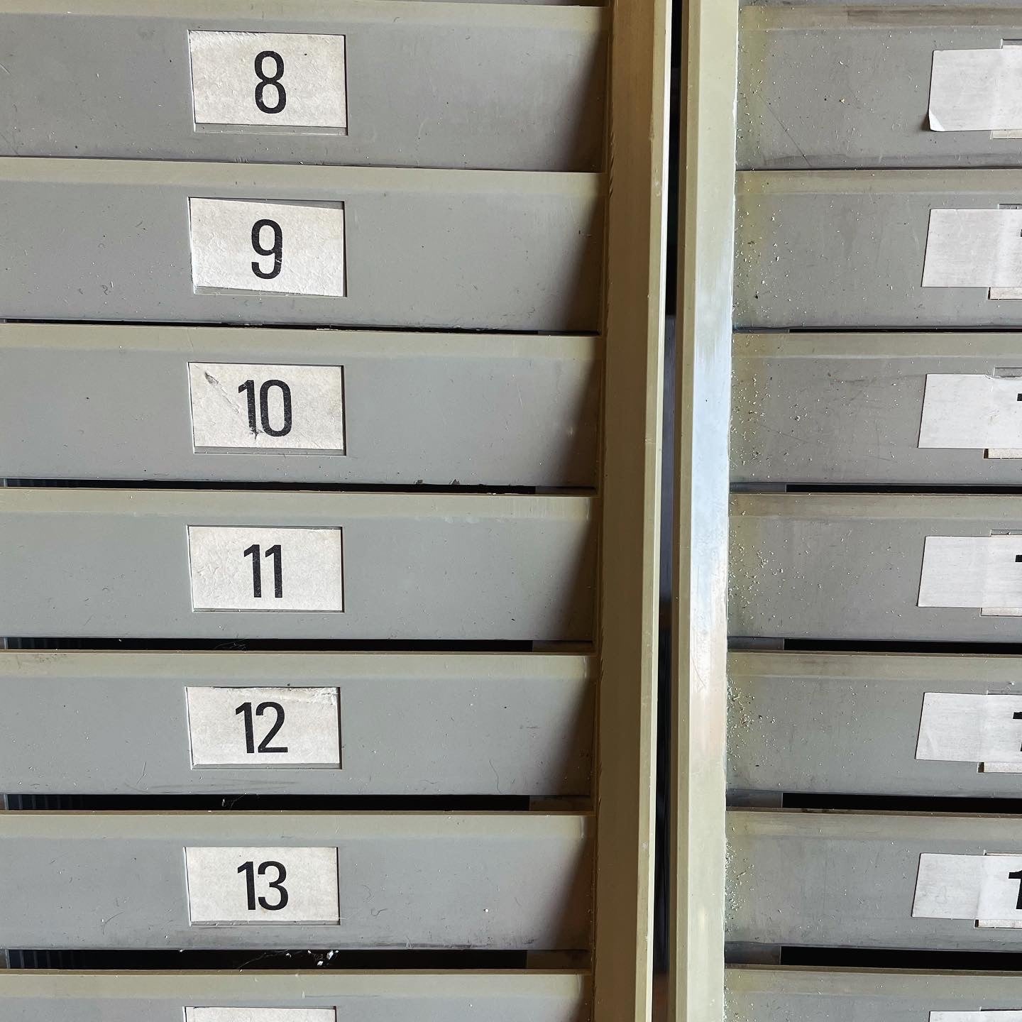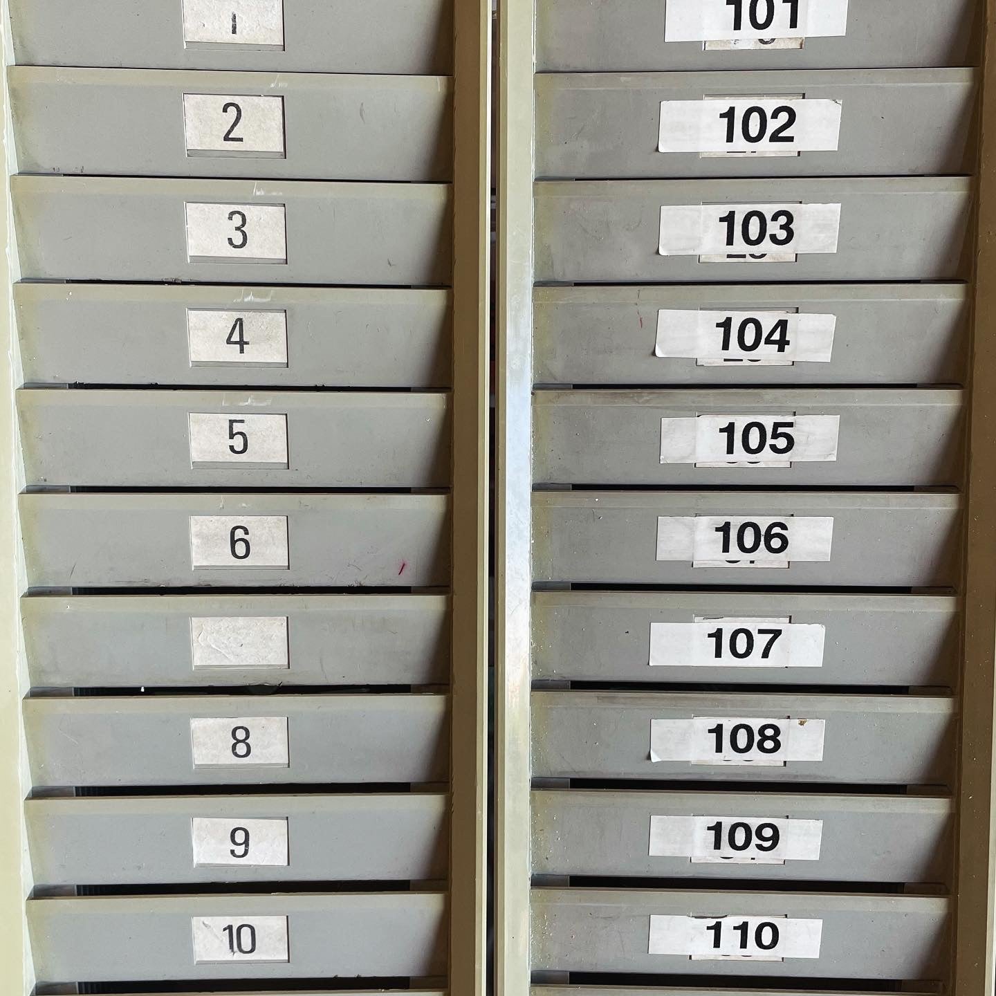 pair of old industrial card holders; where workers stored their cards after having stamped them. They were in fact placed near the wall stamping machine of an old metalworking company. Each is 96 centimeters high and 15 centimeters wide, they are made of plastic, complete with numbered labels. Excellent hung on the wall as furnishing elements but also visited as business card holders and photo displays. Price for the pair.