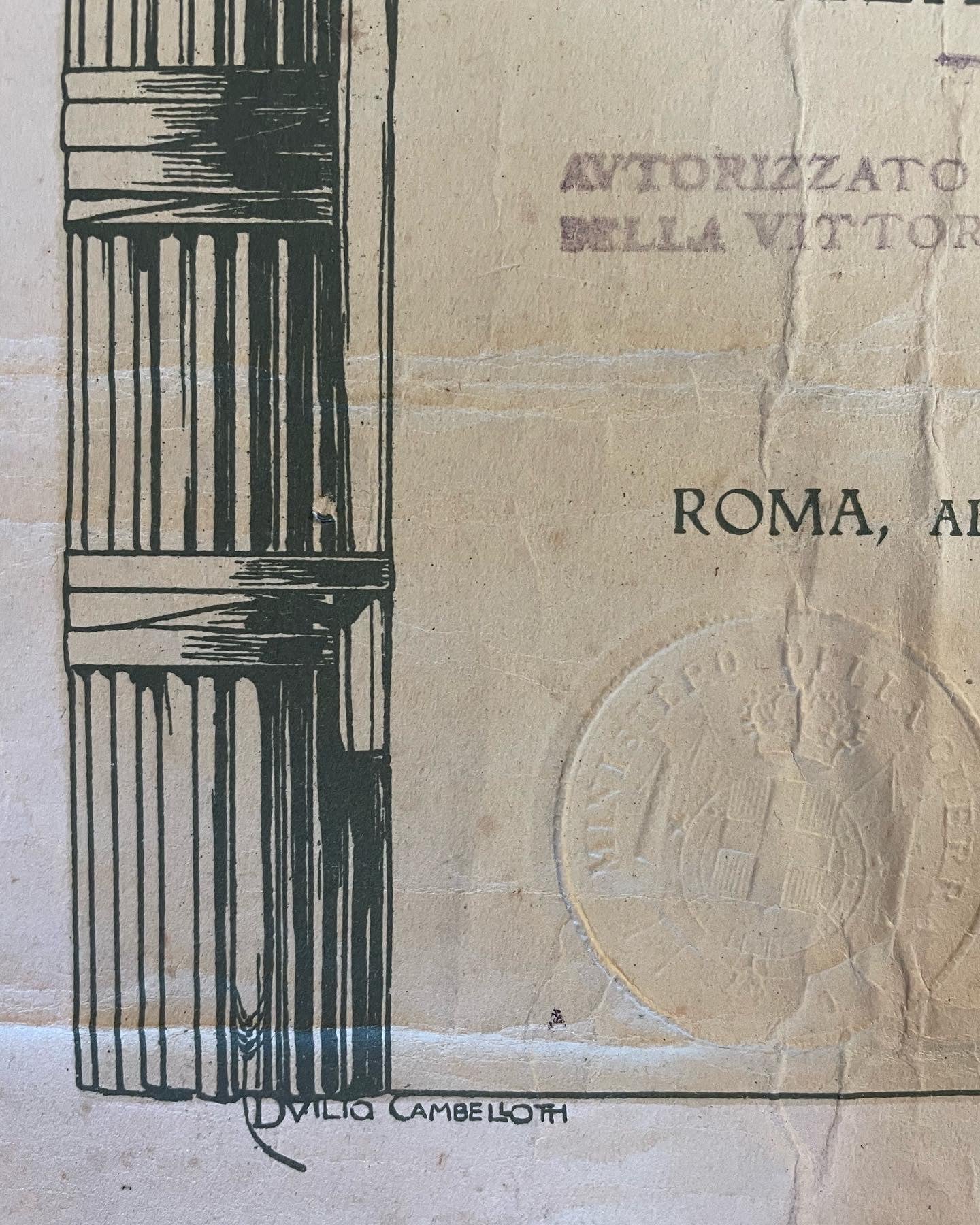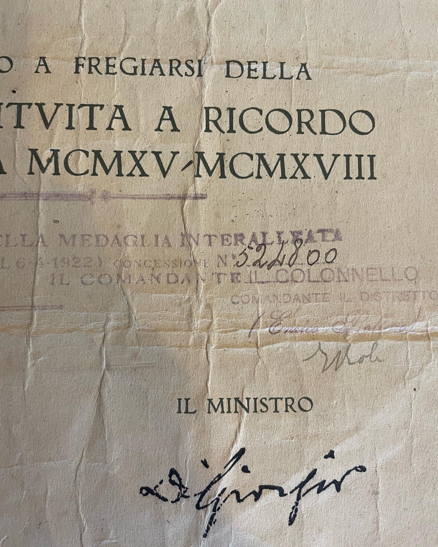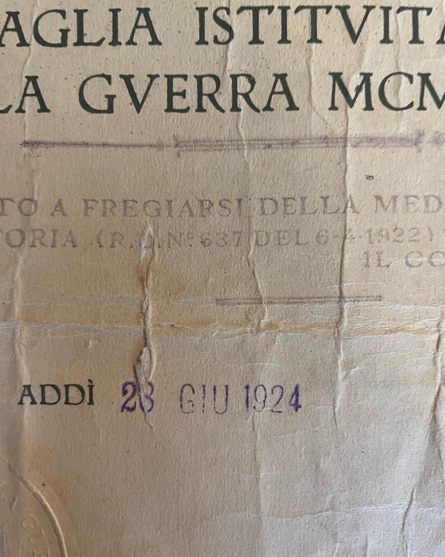 Large #ancient #decree of #awarding of the #medal of the #ministryofwar of the #twentyyear #fascist #period with the #fasciolittorio border dimensions 50 x 35 cm year #1924