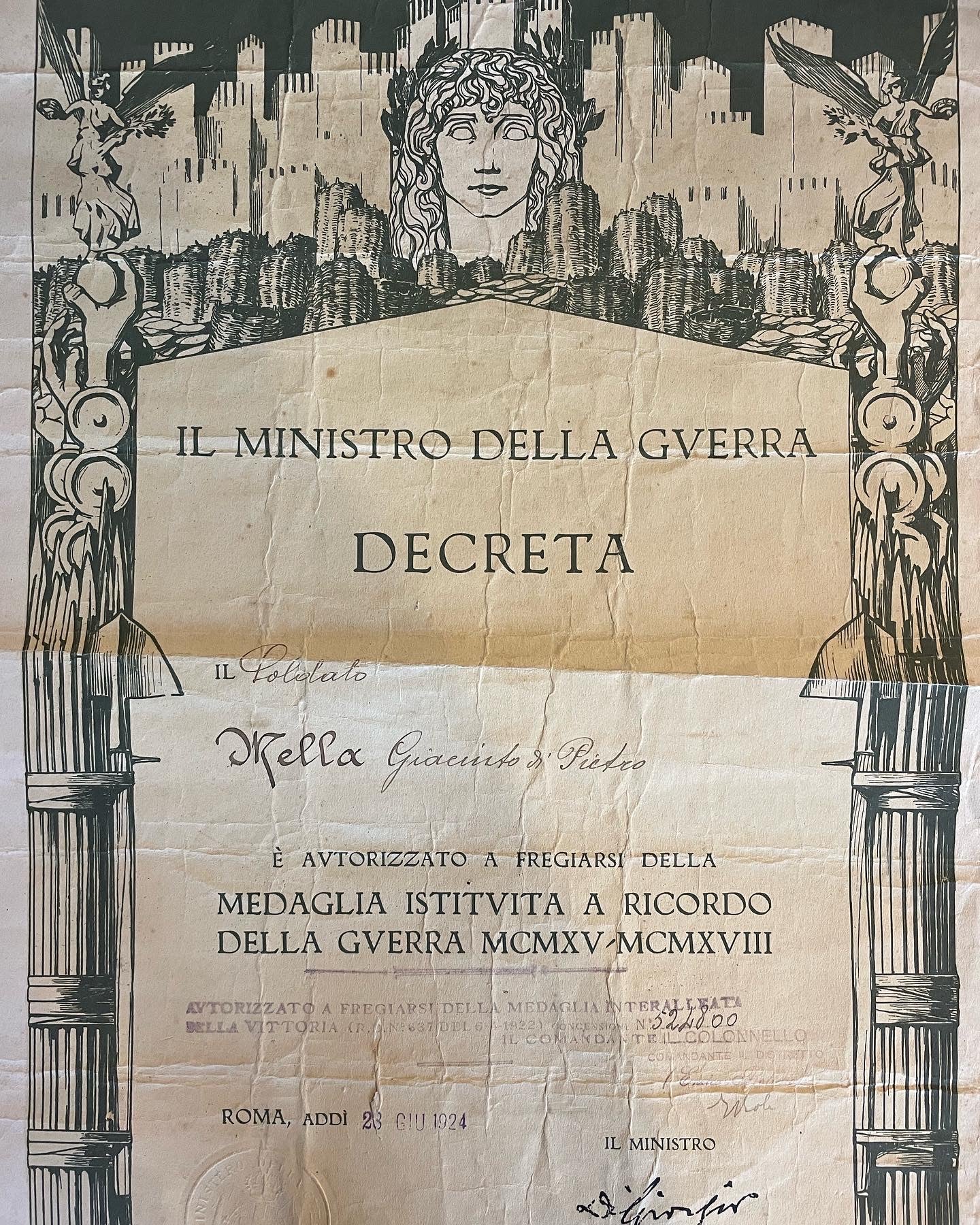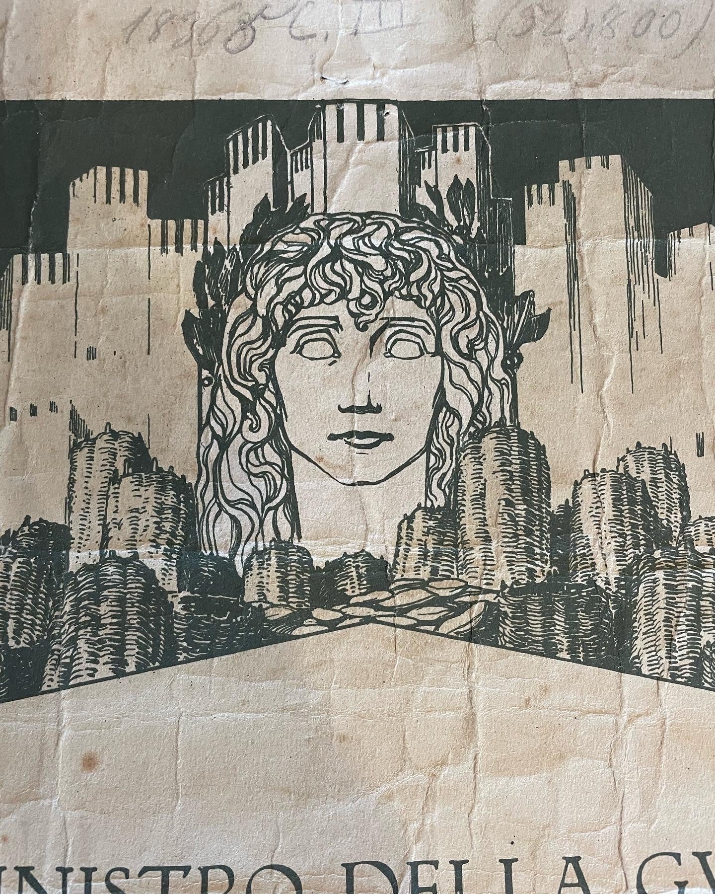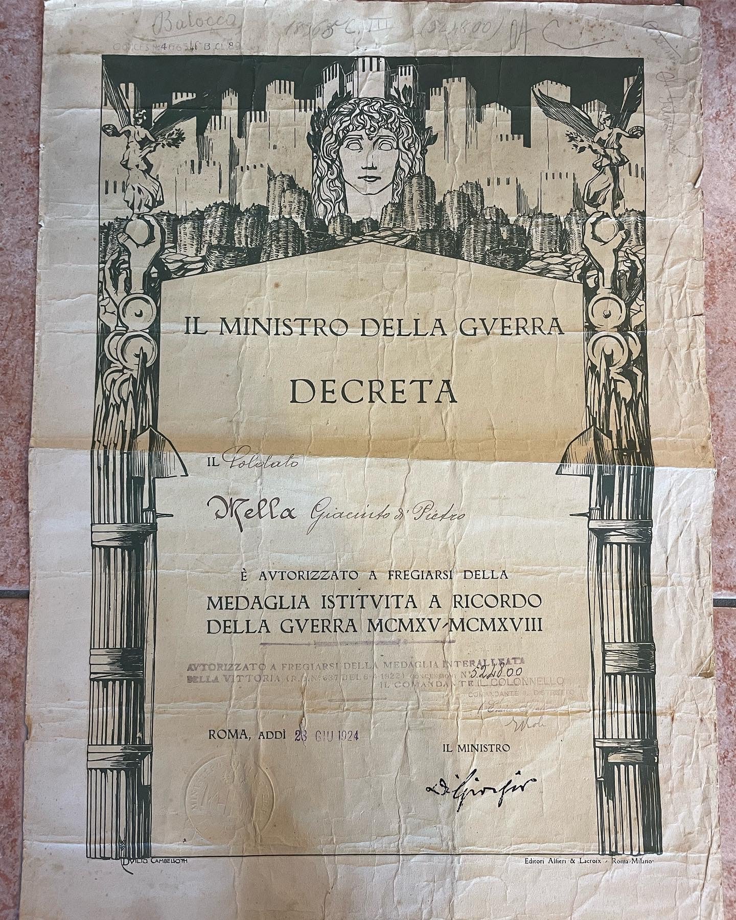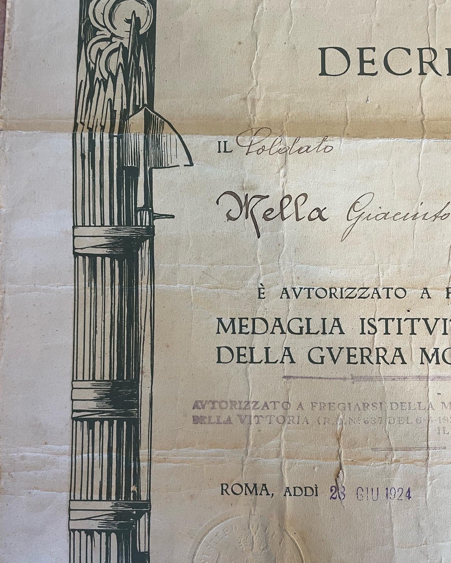 Large #ancient #decree of #awarding of the #medal of the #ministryofwar of the #twentyyear #fascist #period with the #fasciolittorio border dimensions 50 x 35 cm year #1924