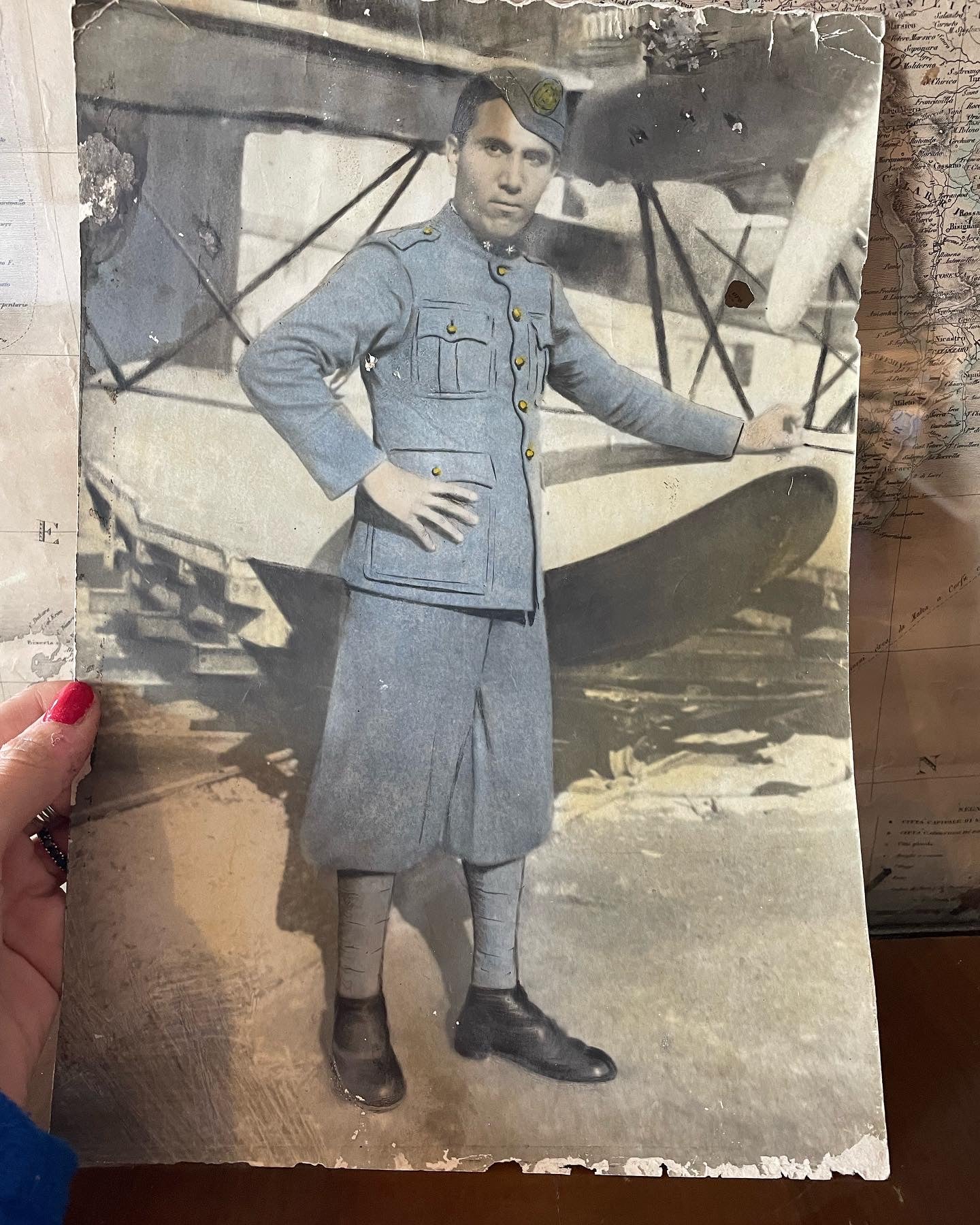 Large unique #photograph of #pilot during the #twenty #fascist #military #size cm 32 x 22 #ancient portrait with #signsofthetime but very interesting, you can also see part of the #ancientplane