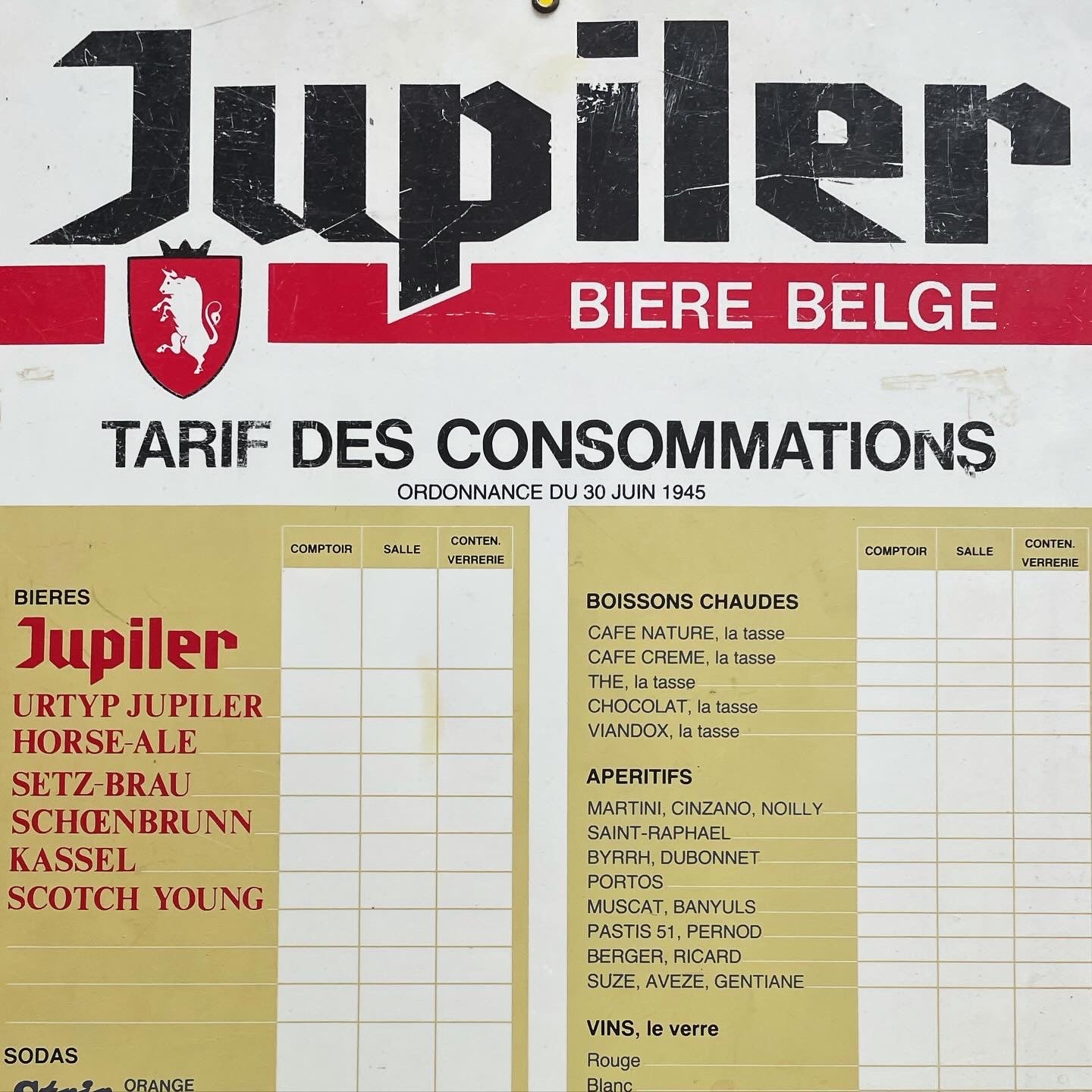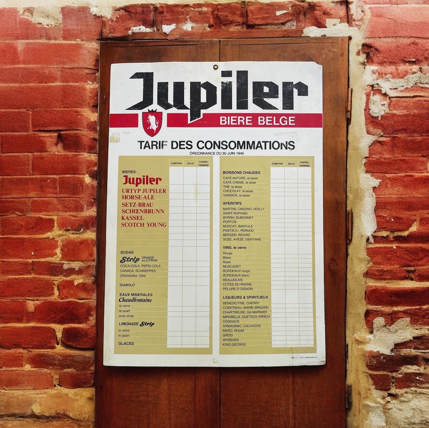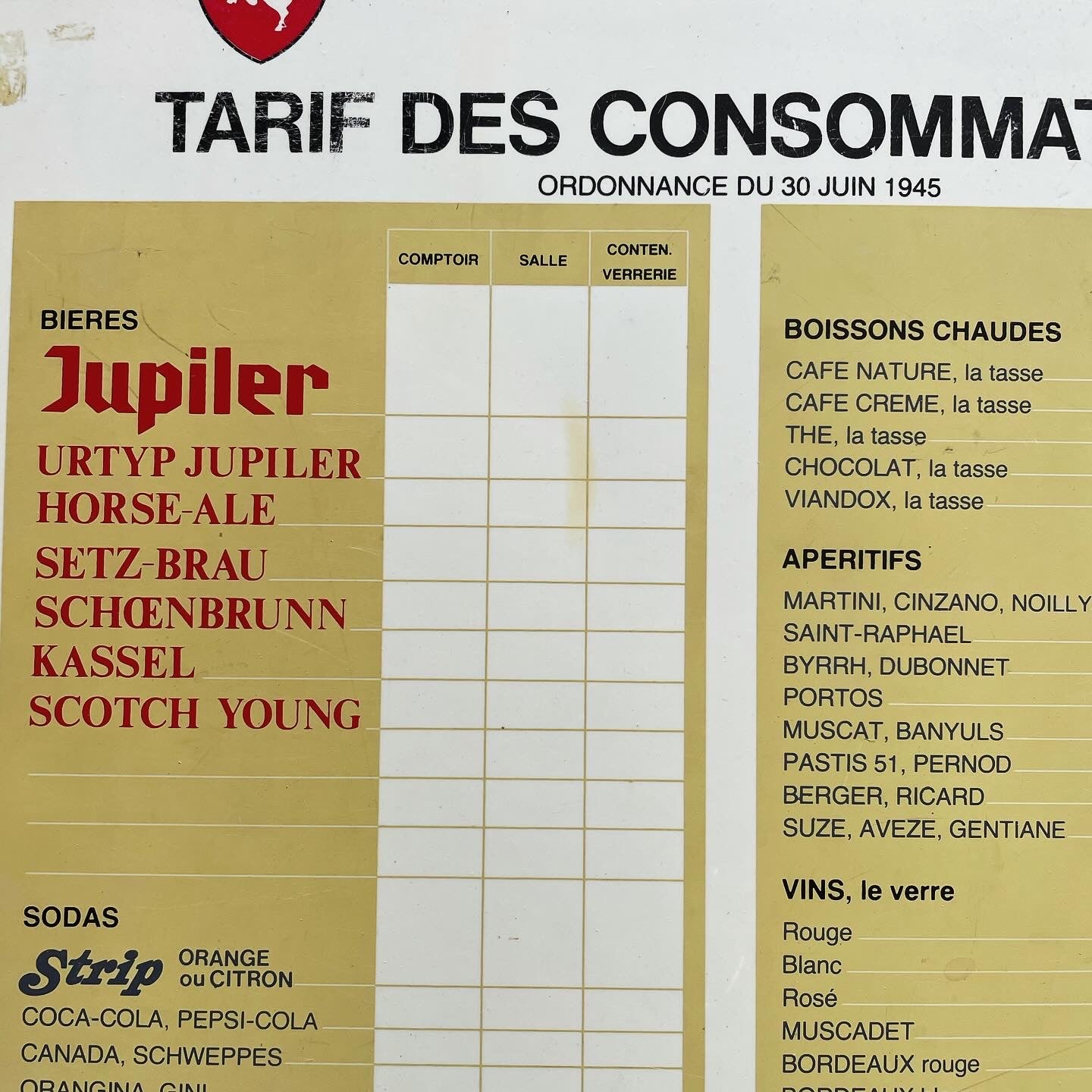 Great Jupilet bar list from the 60s