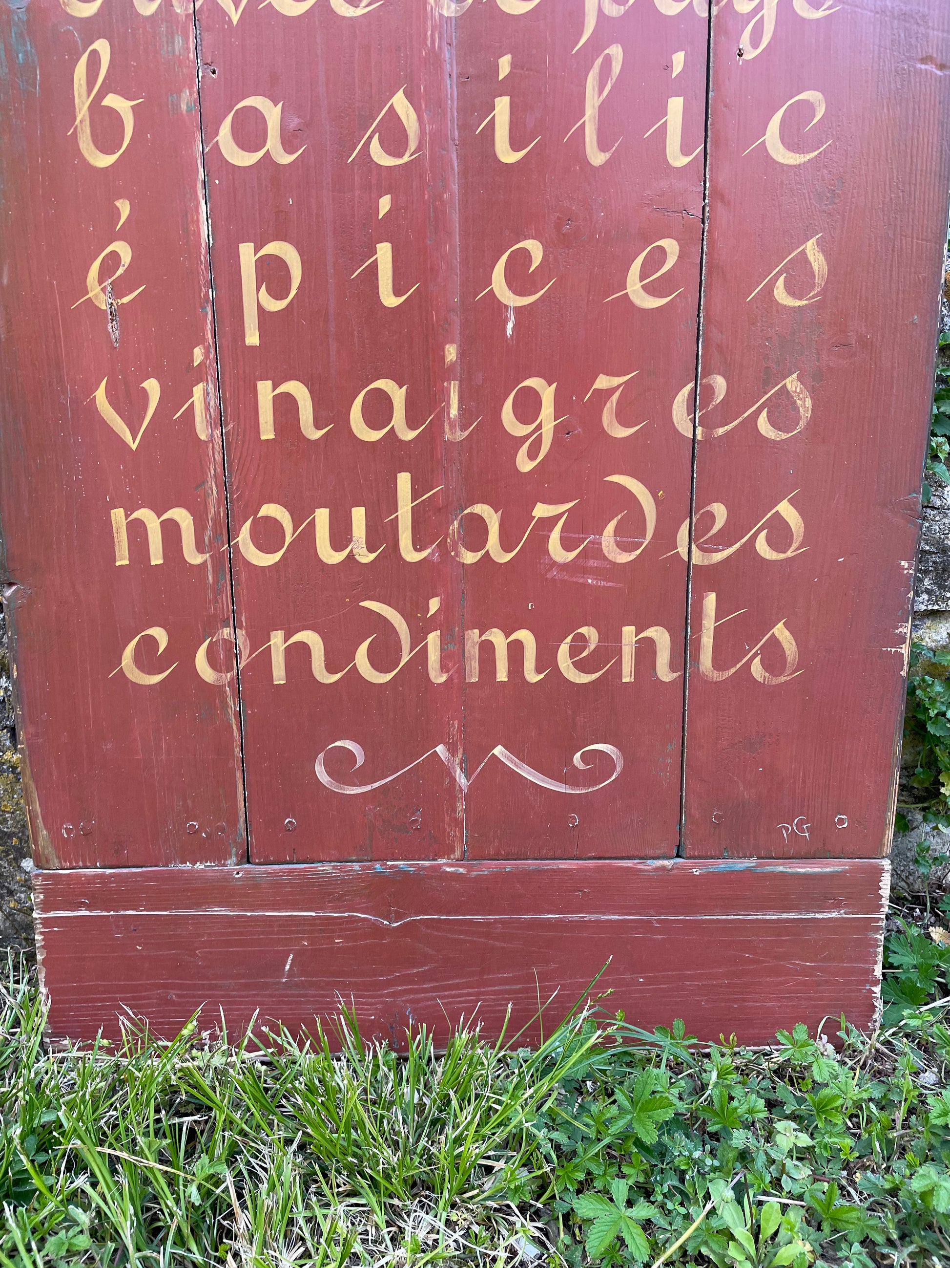 This is an #extraordinarypiece: #old #large #wooden #noticeboard #panel that served as a #sign at the #Provençal #shop that you can see in the last photo… already restored, beautiful, a #vintage perfect for #brocante #furnishings in a #b&b or as #bistro #furnishings. Important dimensions… 1.30 meters high.