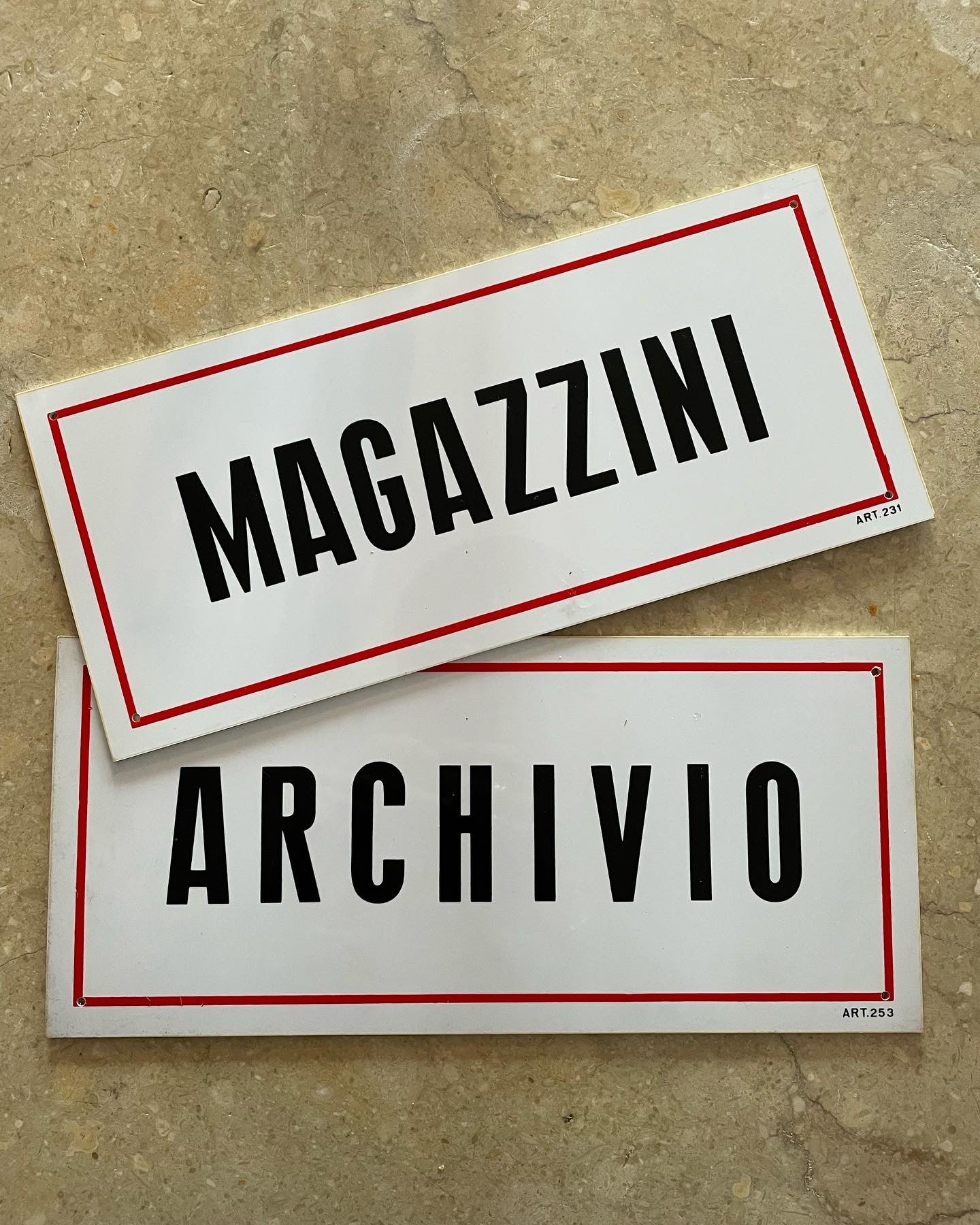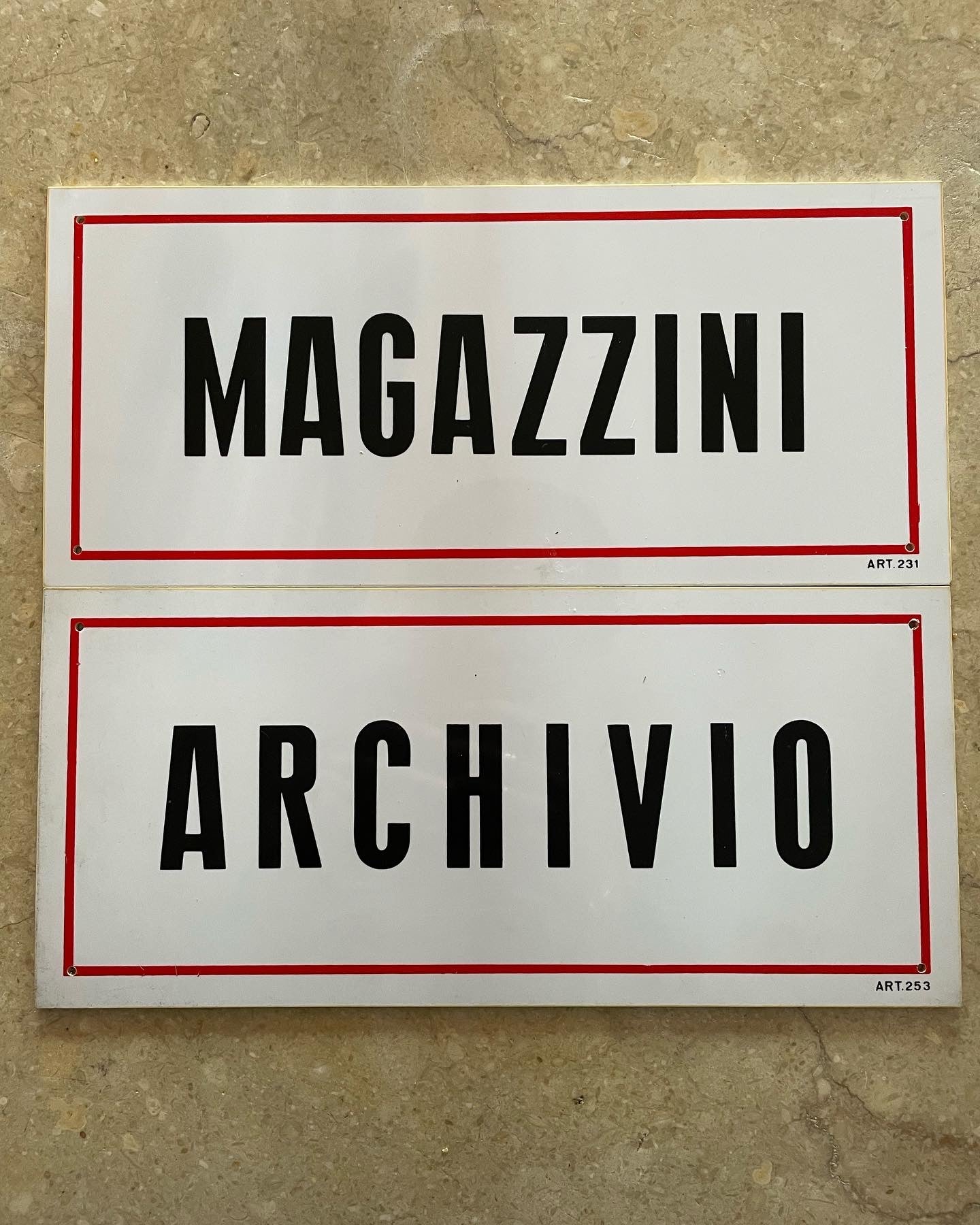Here too, a historical “find” from the #sixties … #old #signs that were used to identify the #archive and #warehouse of a small food industry. #plexi measuring 31 x 15 ideal for #industrialfurnishings … I can see one well above the pantry and the other on the bookcase.