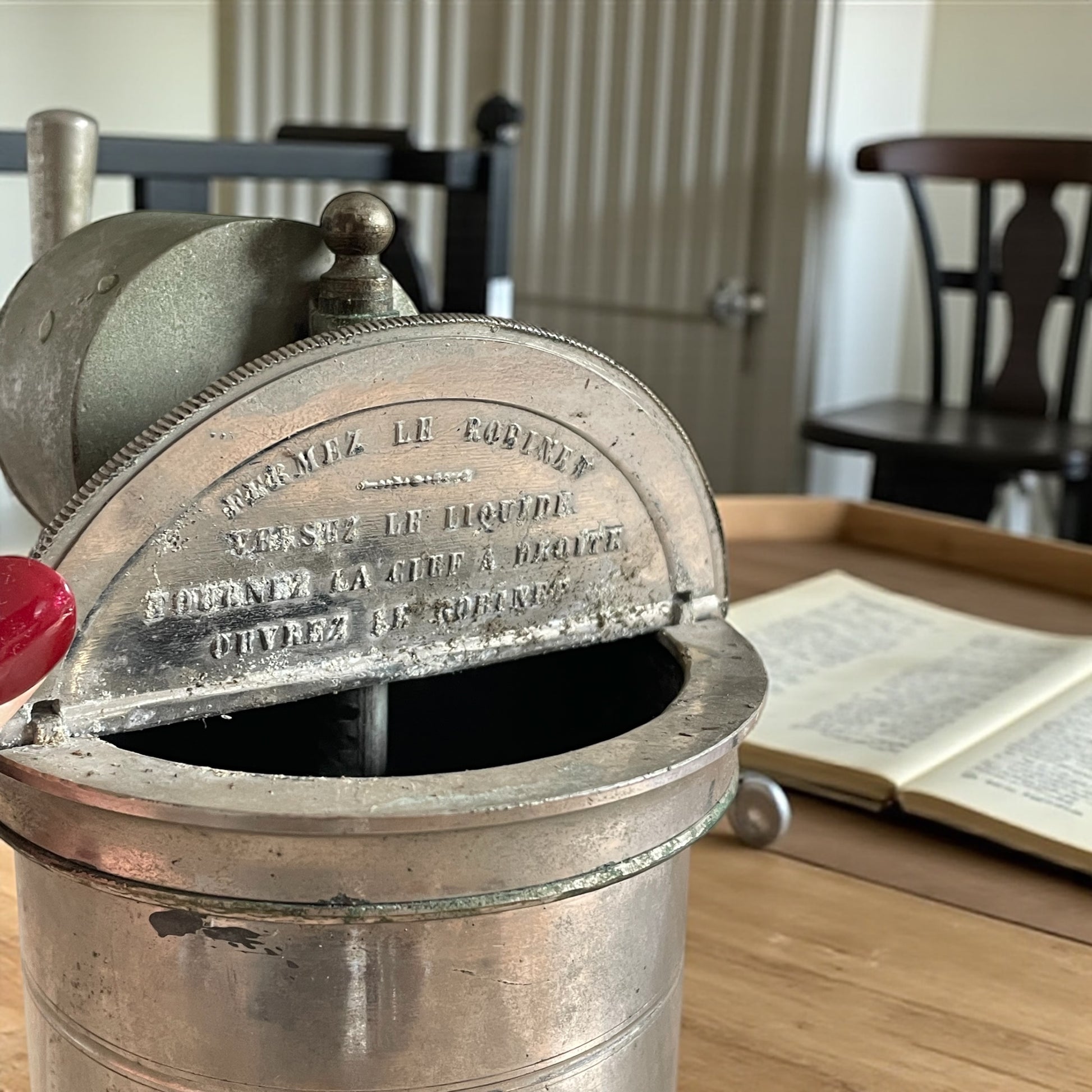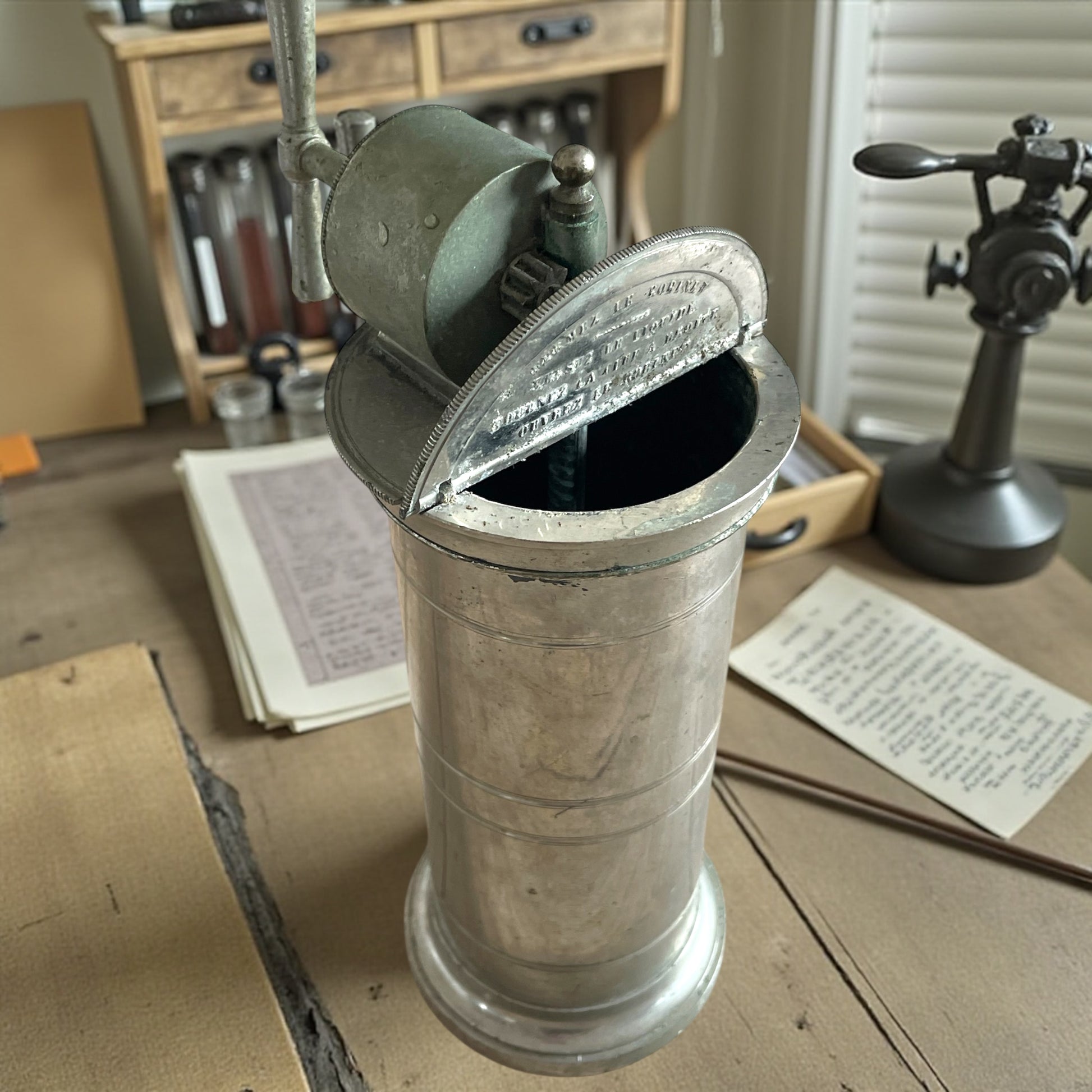 Ecco un raro “Véritable Irrigateur Système ÉGuisier – Modèle A3Z”, Francia, fine XIX – inizi XX secolo. Si tratta di un dispositivo medico destinato all’igiene intima femminile e talvolta all’uso come clistere, prodotto in metallo argentato/nichelato, con rubinetto inferiore e manovella superiore per la messa in pressione del liquido. Gli irrigatori come questo si collocano nella cultura dell’“igiene domestica” che, tra Ottocento e Novecento, ebbe enorme diffusione in Europa: strumenti presentati come garanzia di salute, decoro e modernità, e spesso pubblicizzati come dispositivi per la prevenzione (pensate, spesso anche per la contraccezione) e per il benessere intimo. Questo modello, di grandi dimensioni e notevole peso, è più robusto e professionale rispetto a quelli di uso familiare: era destinato a studi ginecologici o medici. Sul corpo si leggono le medaglie delle esposizioni del 1872 e 1885, testimonianza del prestigio del marchio Éguisier. Un oggetto raro, ideale per collezionisti di strumenti medici, musei della storia della medicina o collezioni dedicate all’evoluzione della cultura igienica e sanitaria.