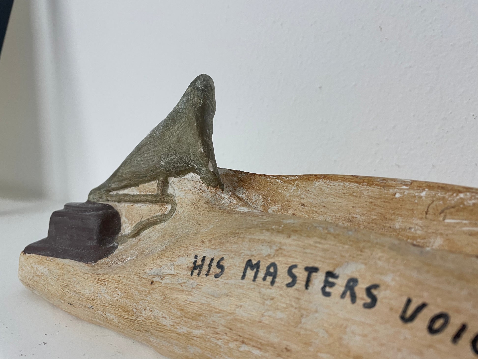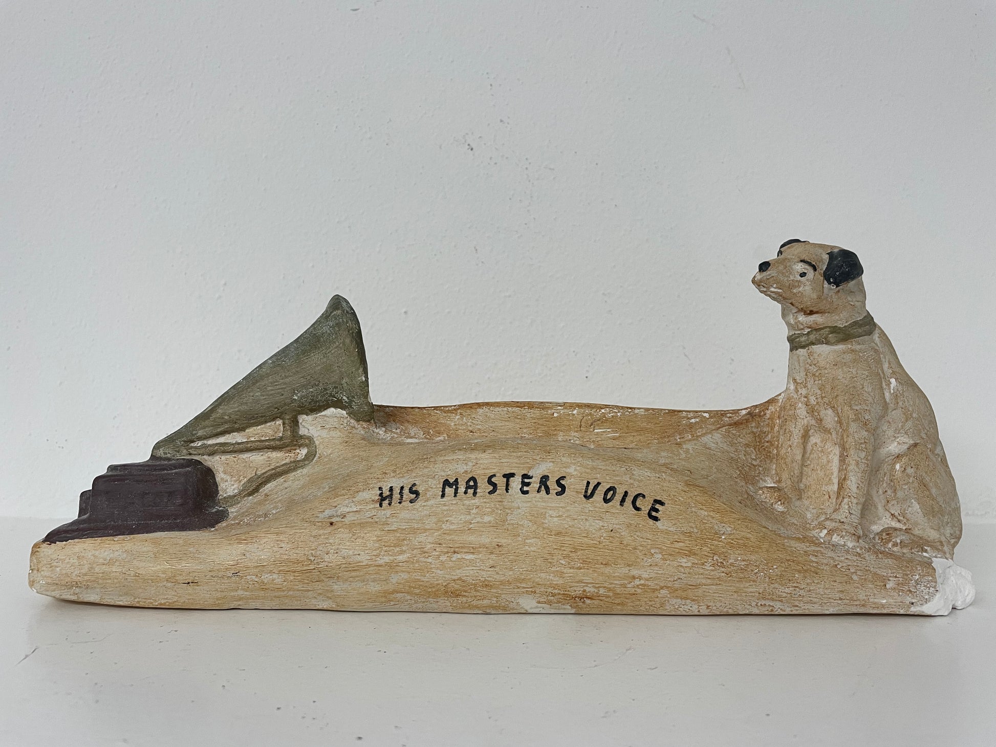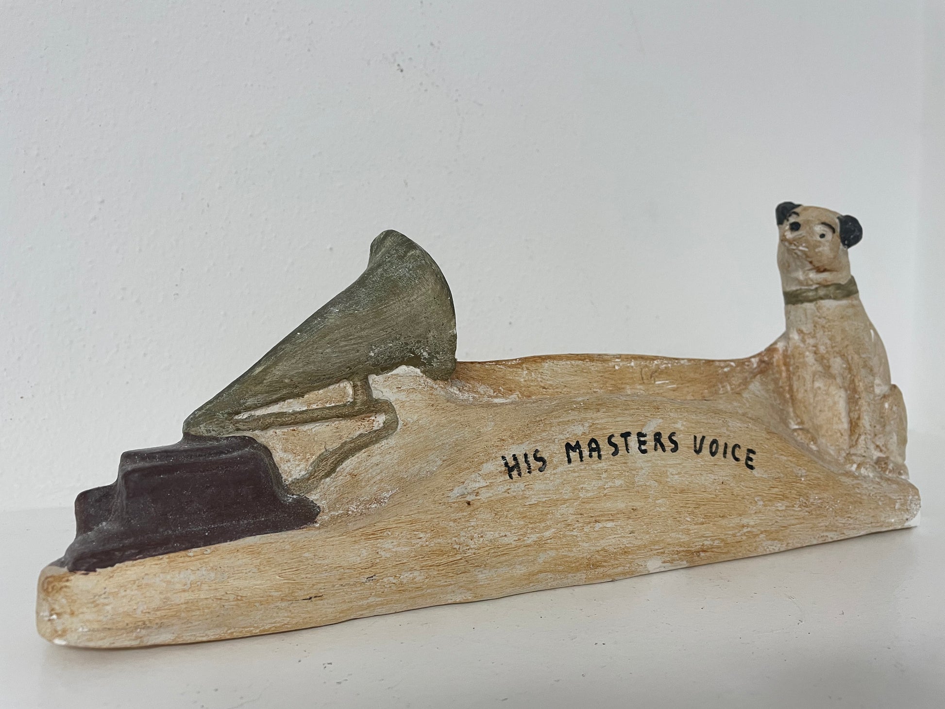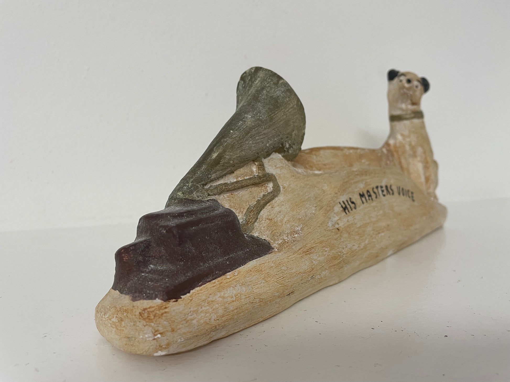 old #plaster #sculpture by the historic brand #lavocedelpadrone ... where the dog #nipper strains his ear towards the #gramophone! Length 33 cm and #signsoftime with chips on two corners, but a wonderful unobtainable #vintageobject for lovers of the irreplaceable rustling!