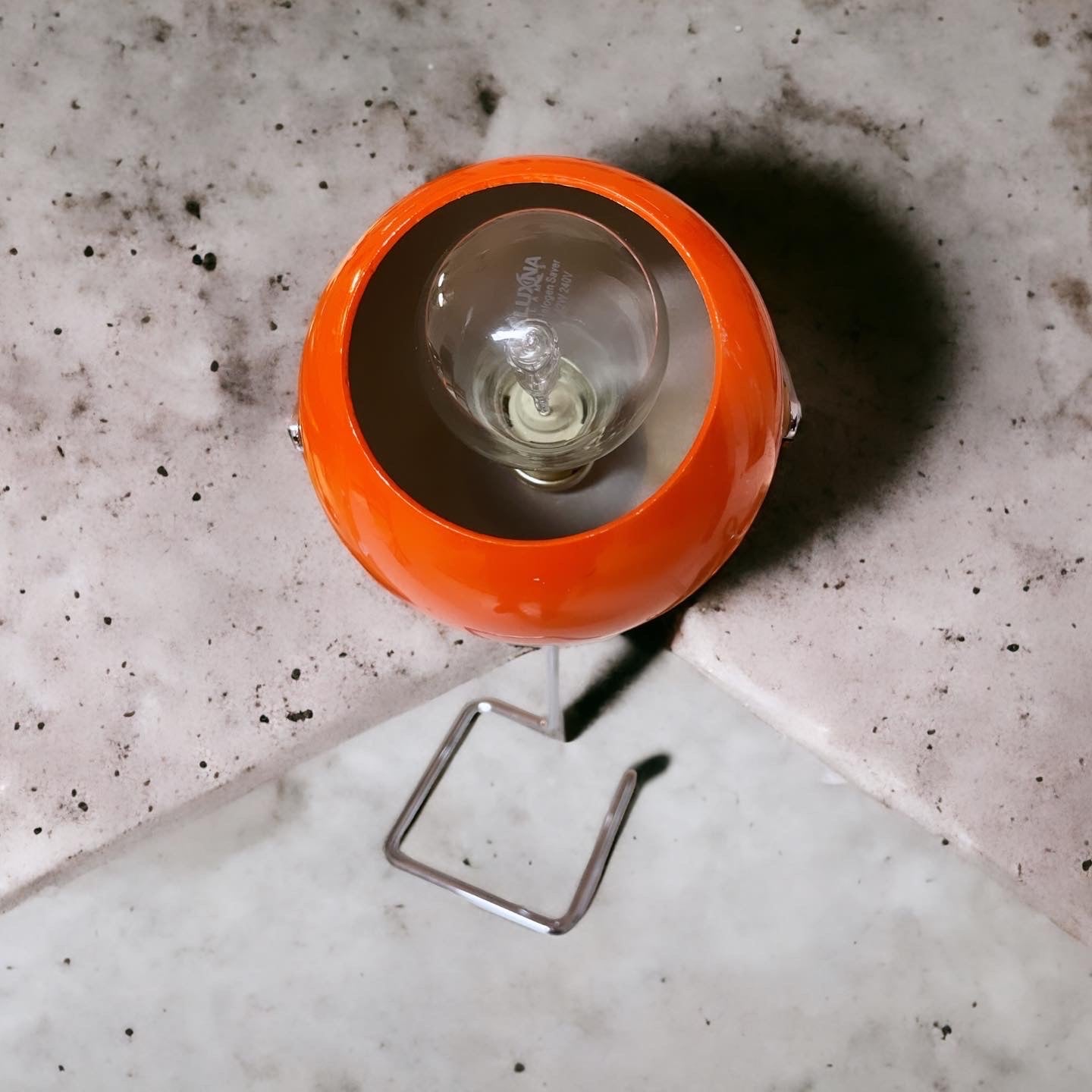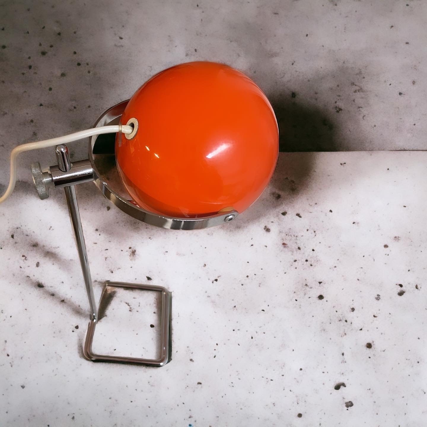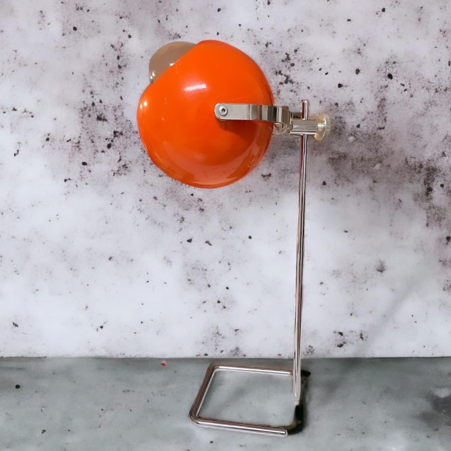 #design #lamp #original #spaceage #from #the #70s with stem, adjustable height max 30 cm, #eyeball #orange adjustable, perfectly working. The style is that of #josefhurka, who as a base preferred a chrome continuation of the stem. Presence of some signs on the hat, visible in the photo, not impactful. A nice #midcentury 👀